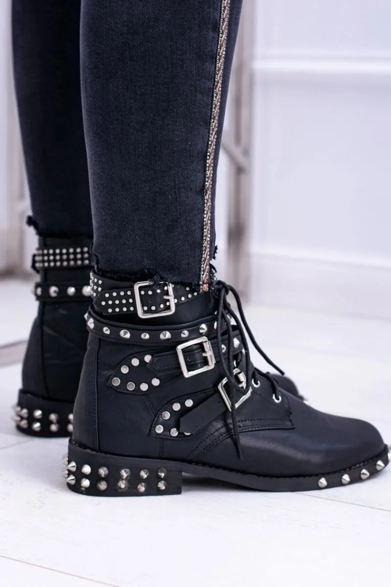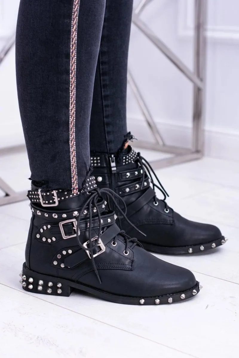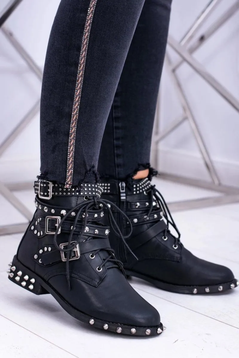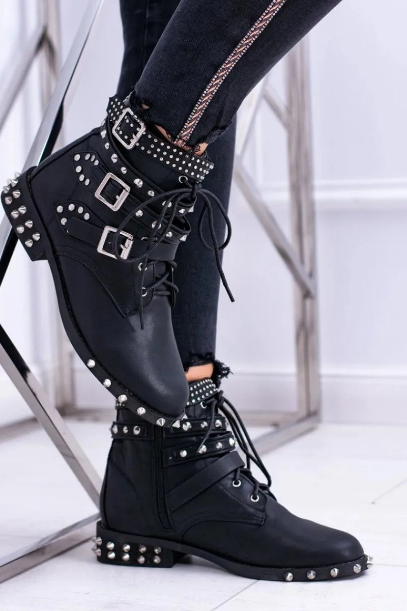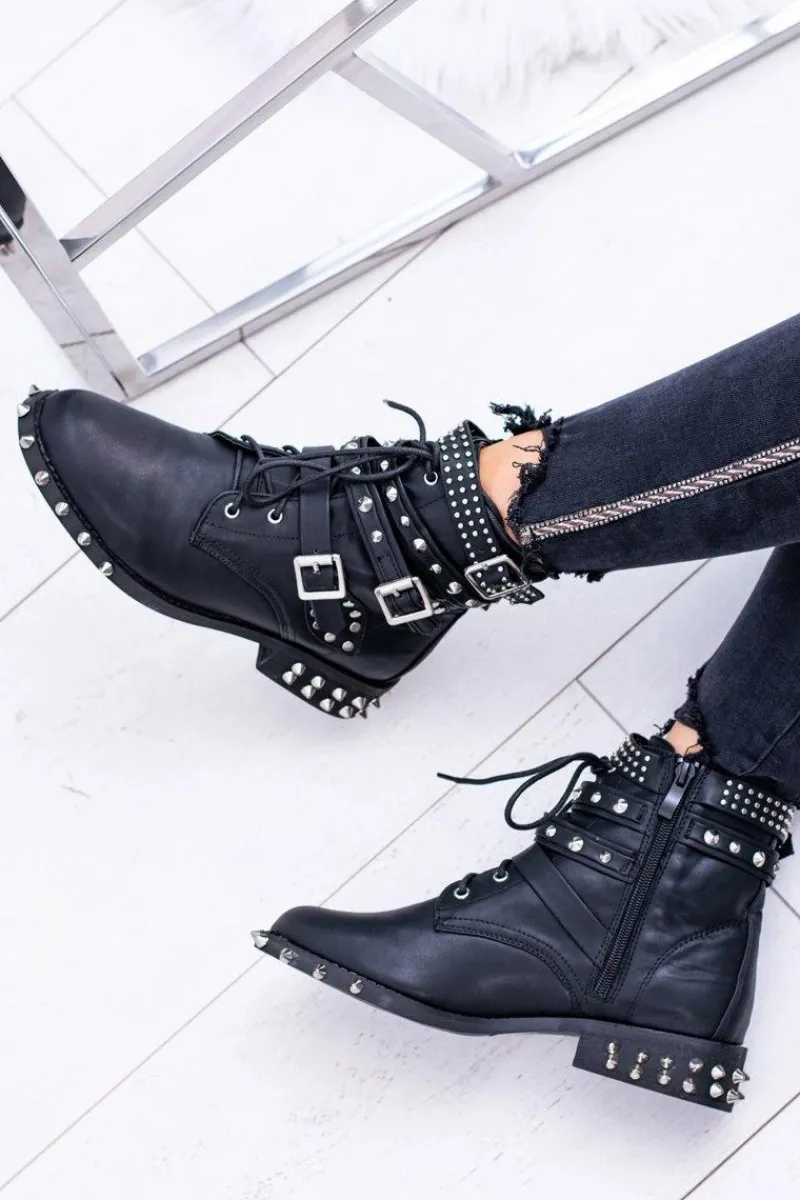 Clearance Lu Boo Damskie Botki Verona Z Ćwiekami Kolce Klamry Rock Damskie Botki Sznurowane|Botki Płaskie