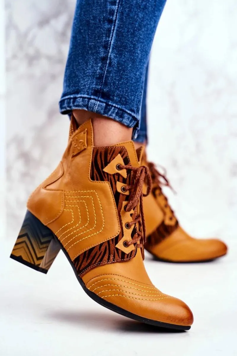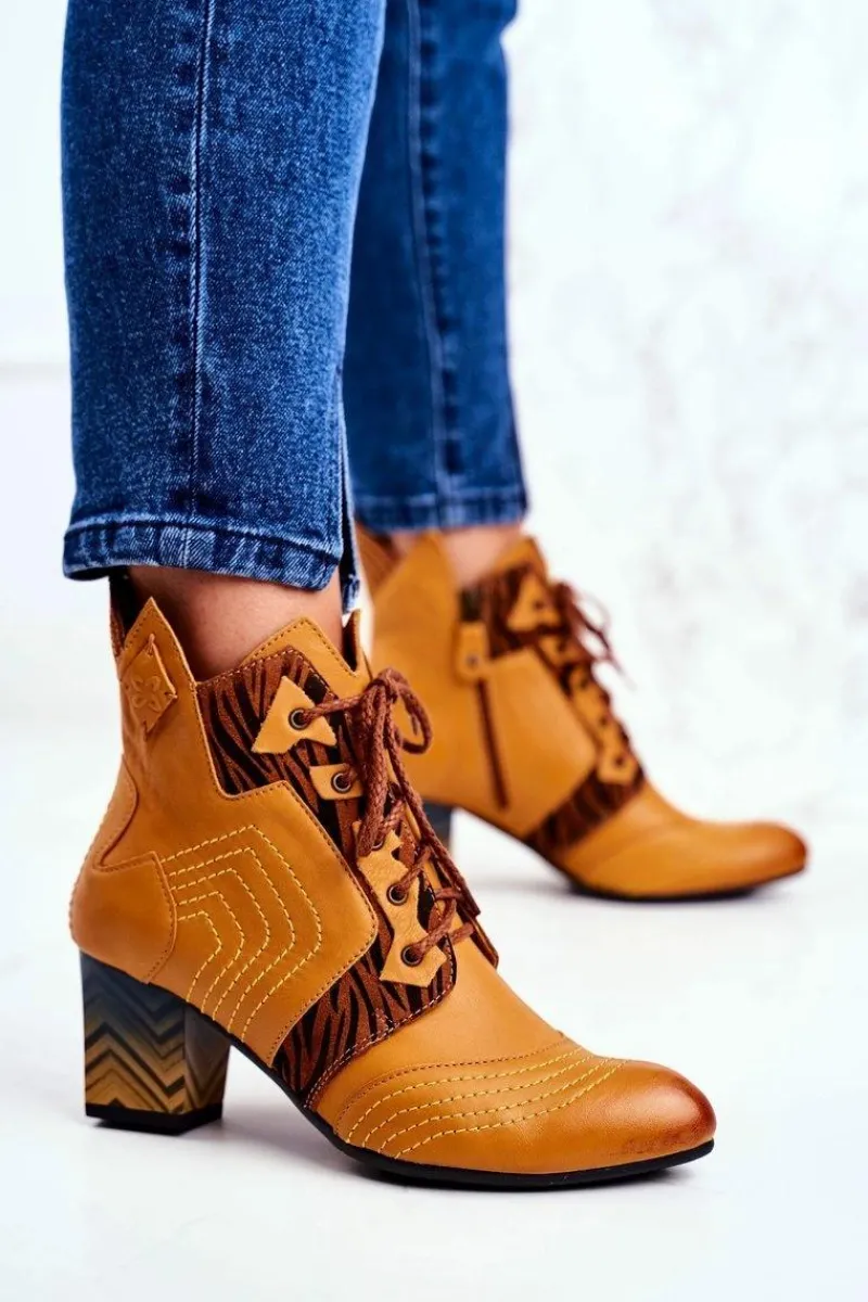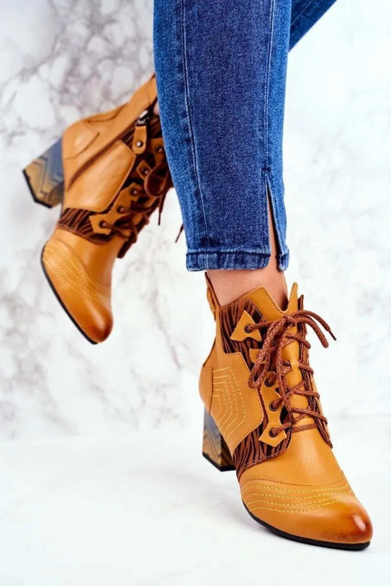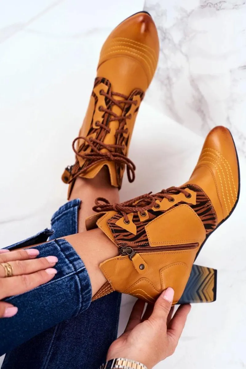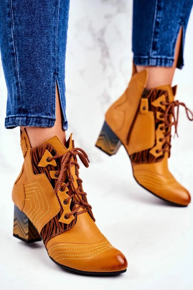 Clearance Maciejka Botki Damskie Skórzane Trzewiki Żółte 03194