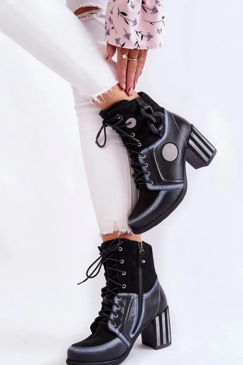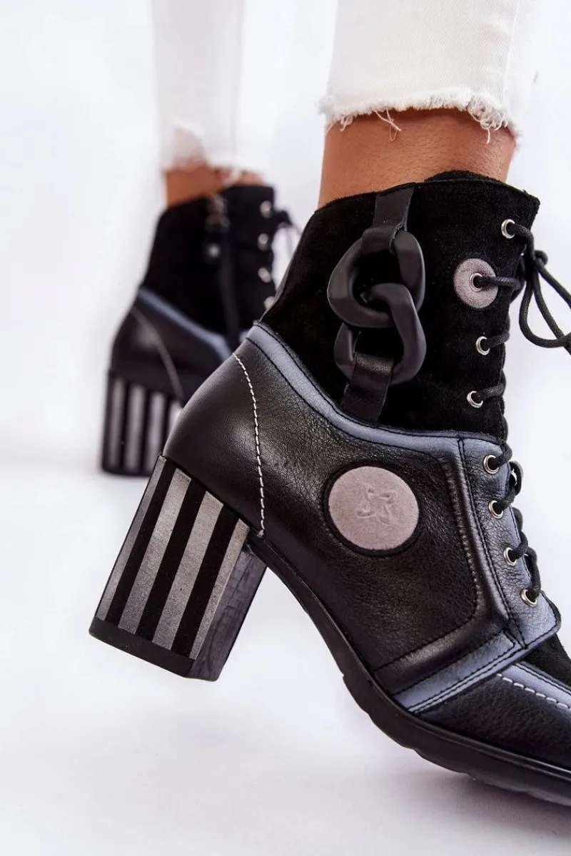 Wyjątkowe botki marki Maciejka zostały wykonane ze skór wysokiej jakości z dbałością o detale. Posiadają klasyczne sznurowanie oraz suwak. Zostały przyozdobione z boku łańcuchem oraz logo marki Maciejka. Osadzone na obcasie w postaci słupka. Ten model jest idealny dla osób kochających modowe nowości! Koniecznie sprawdź także pozostałe modele botków marki Maciejka! Przy wyborze rozmiaru prosimy sugerować się tabelą rozmiarów.