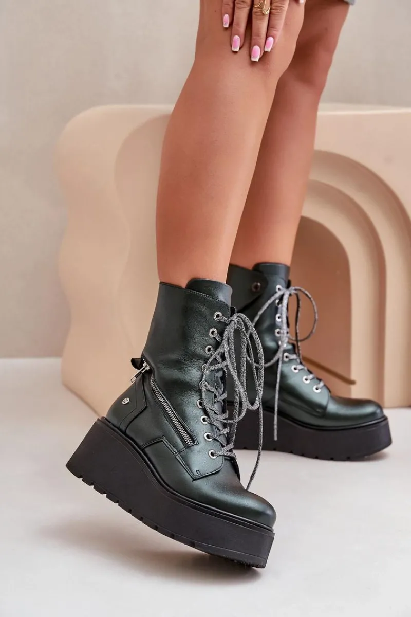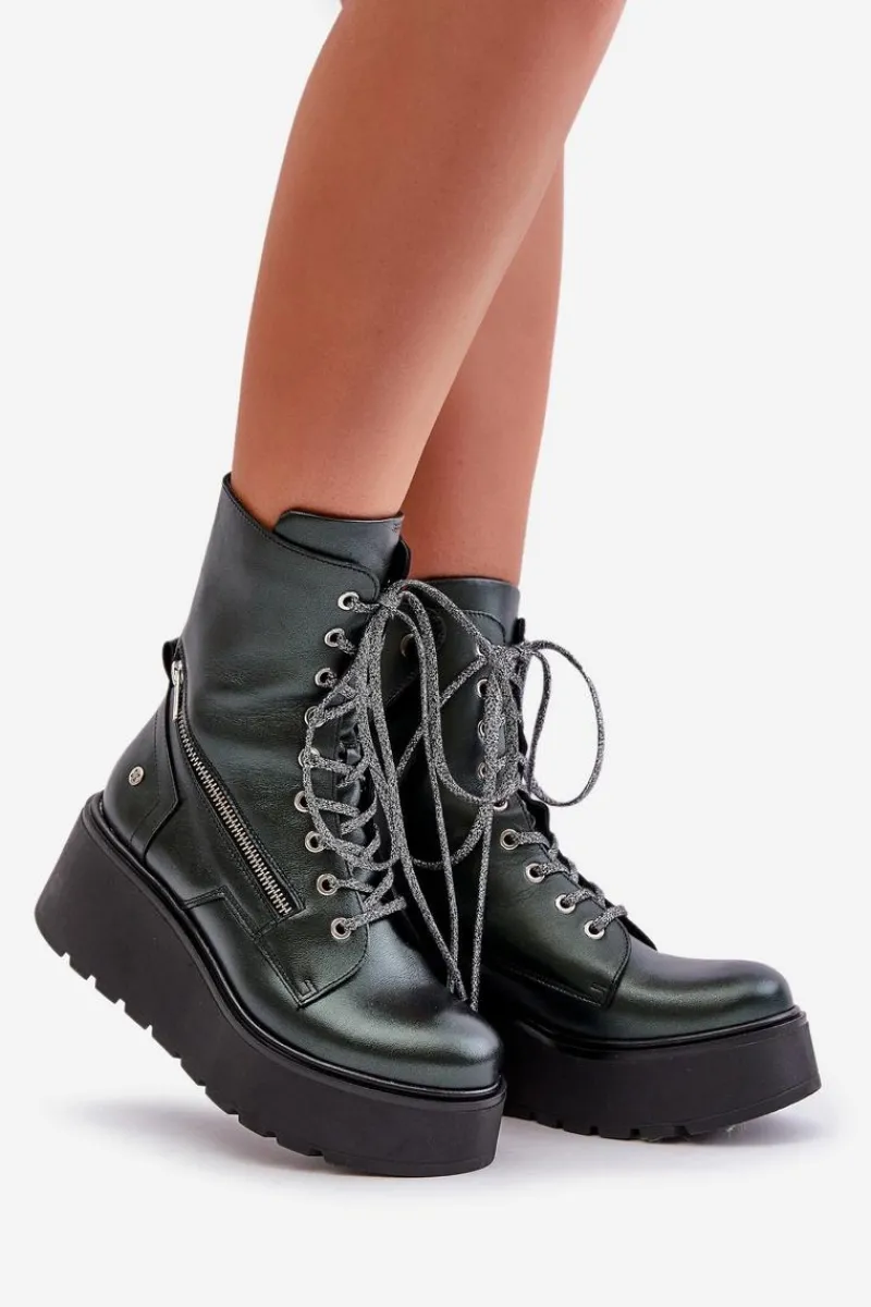 Botki workery marki Maciejka to wyjątkowy model, który łączy styl i funkcjonalność. Osadzone na koturnie i platformie, zapewniają wygodę i stabilność. Cholewka zapinana na zamek i zatrzask dodaje oryginalnego charakteru, a zaokrąglone noski zwiększają komfort noszenia. Wnętrze lekko ocieplane kocem obuwniczym, dzięki czemu sprawdzą się doskonale w chłodniejsze dni. Idealne do codziennych, casualowych stylizacji. Przy wyborze rozmiaru prosimy sugerować się tabelą rozmiarów.