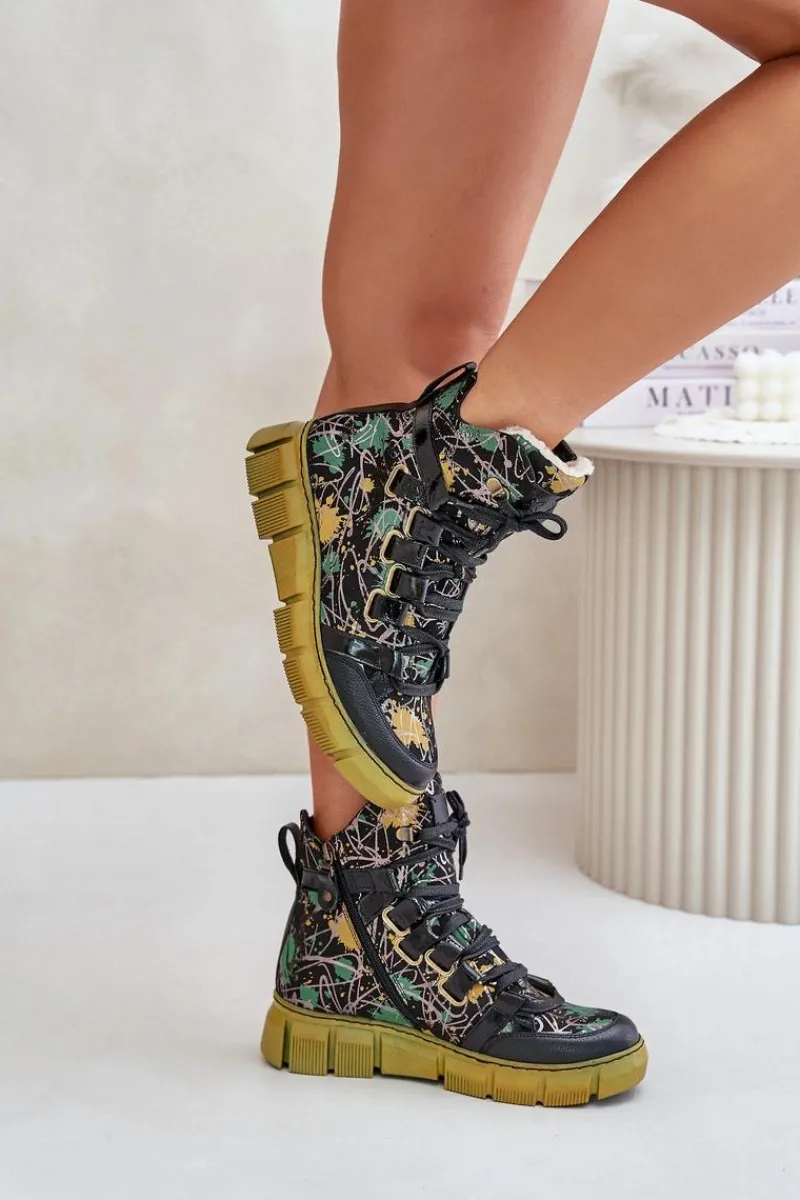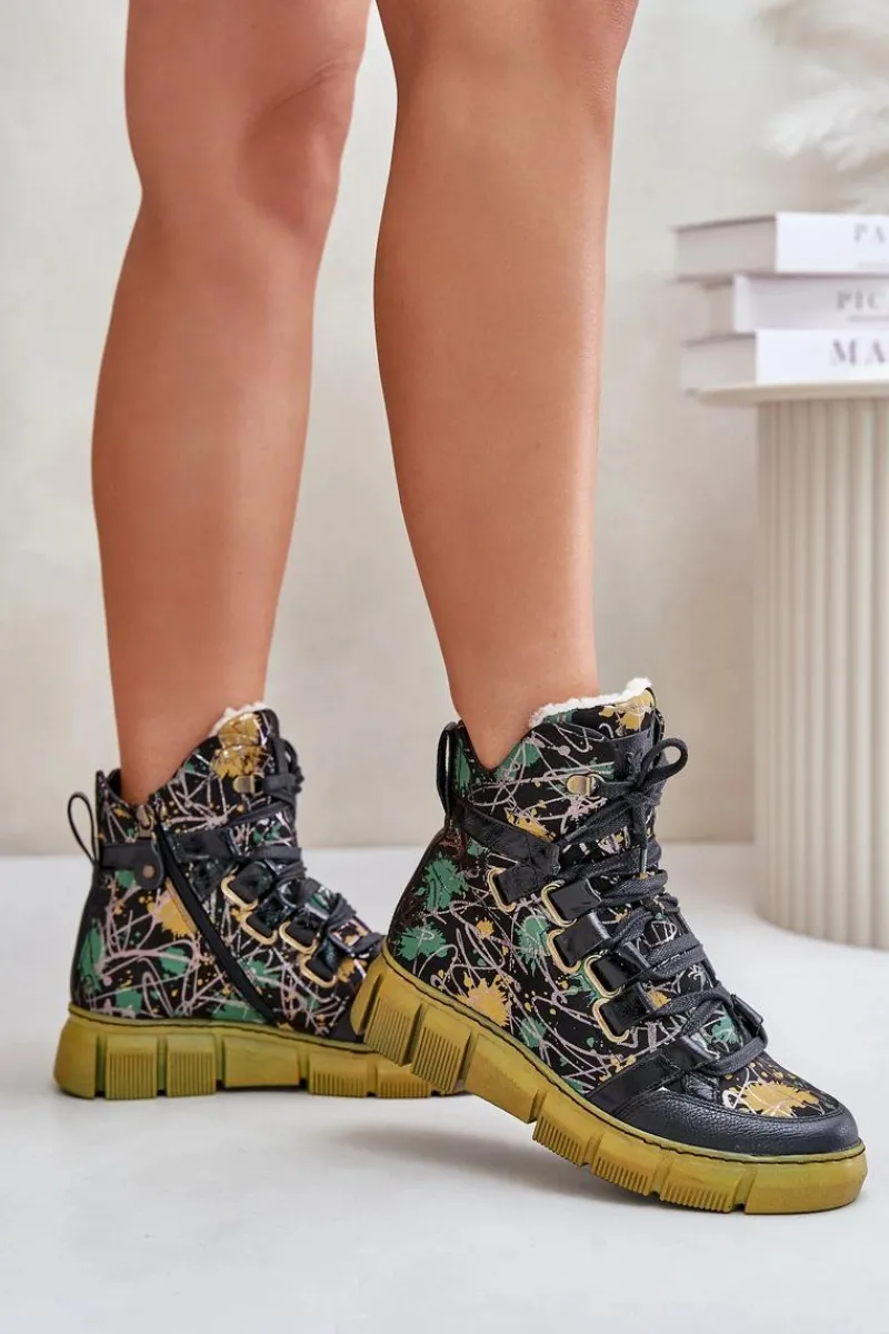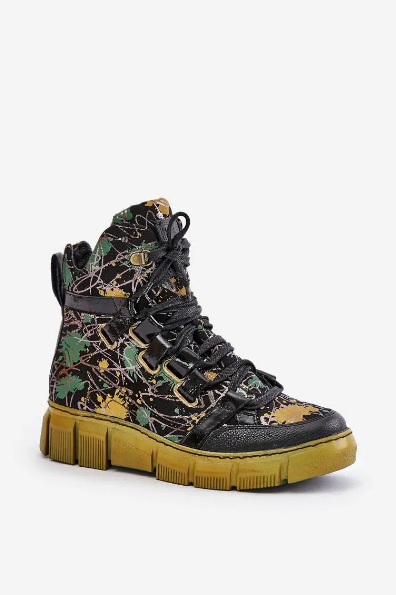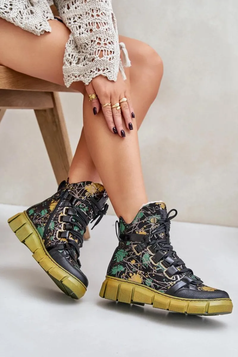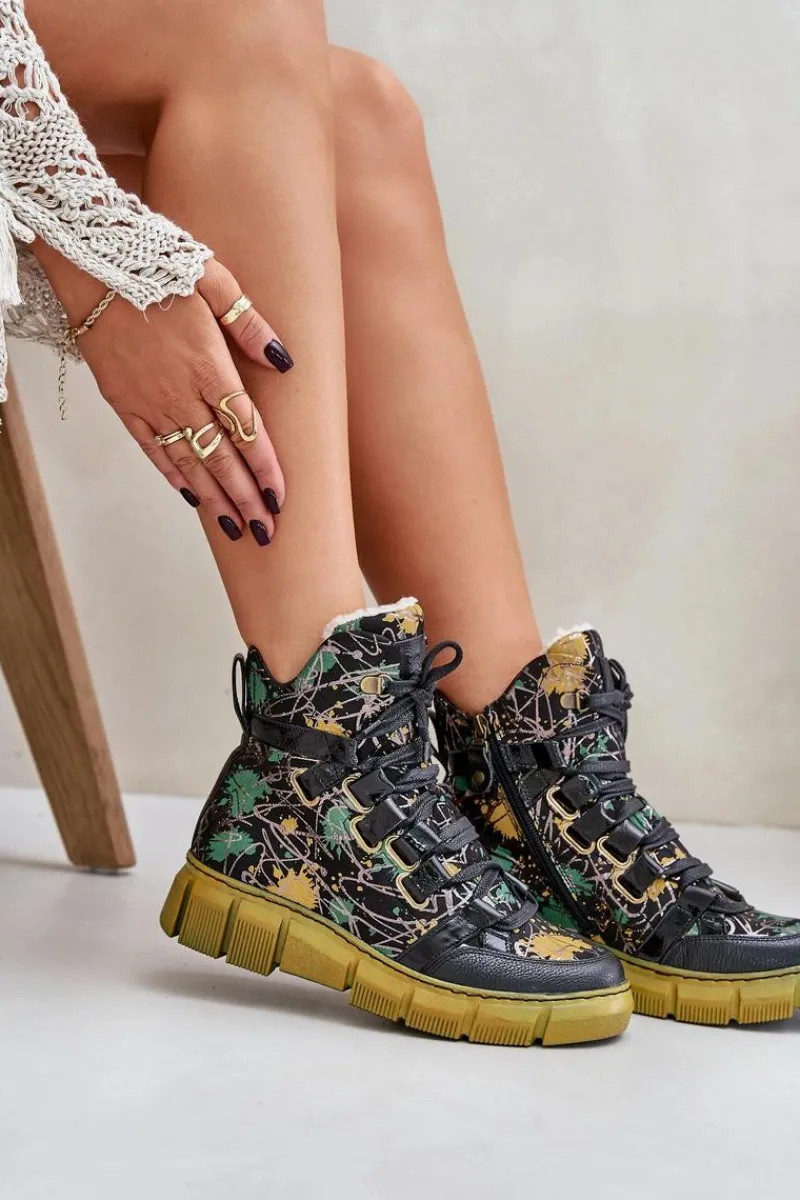 Botki damskie marki Maciejka wykonane są z najwyższej jakości skóry naturalnej. Model ten osadzony jest na płaskim obcasie i platformie. Buty zapinane są na suwak po wewnętrznej stronie cholewki i dodatkowo sznurowane. Miękka wkładka zapewni komfortowe użytkowanie obuwia. Zapiętek jest usztywniany. Przy wyborze rozmiaru prosimy sugerować się tabelą rozmiarów.