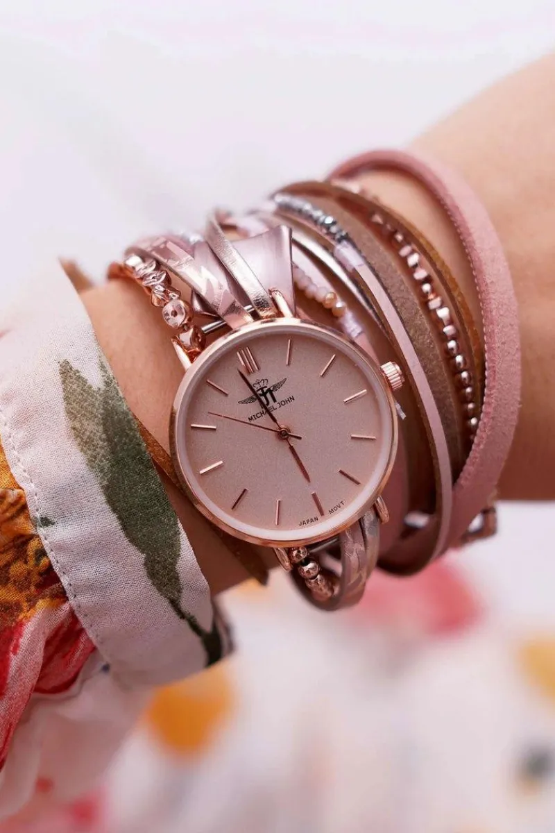 Clearance Michael John Damski Zegarek Owijany Na Magnes Różowy Lanell