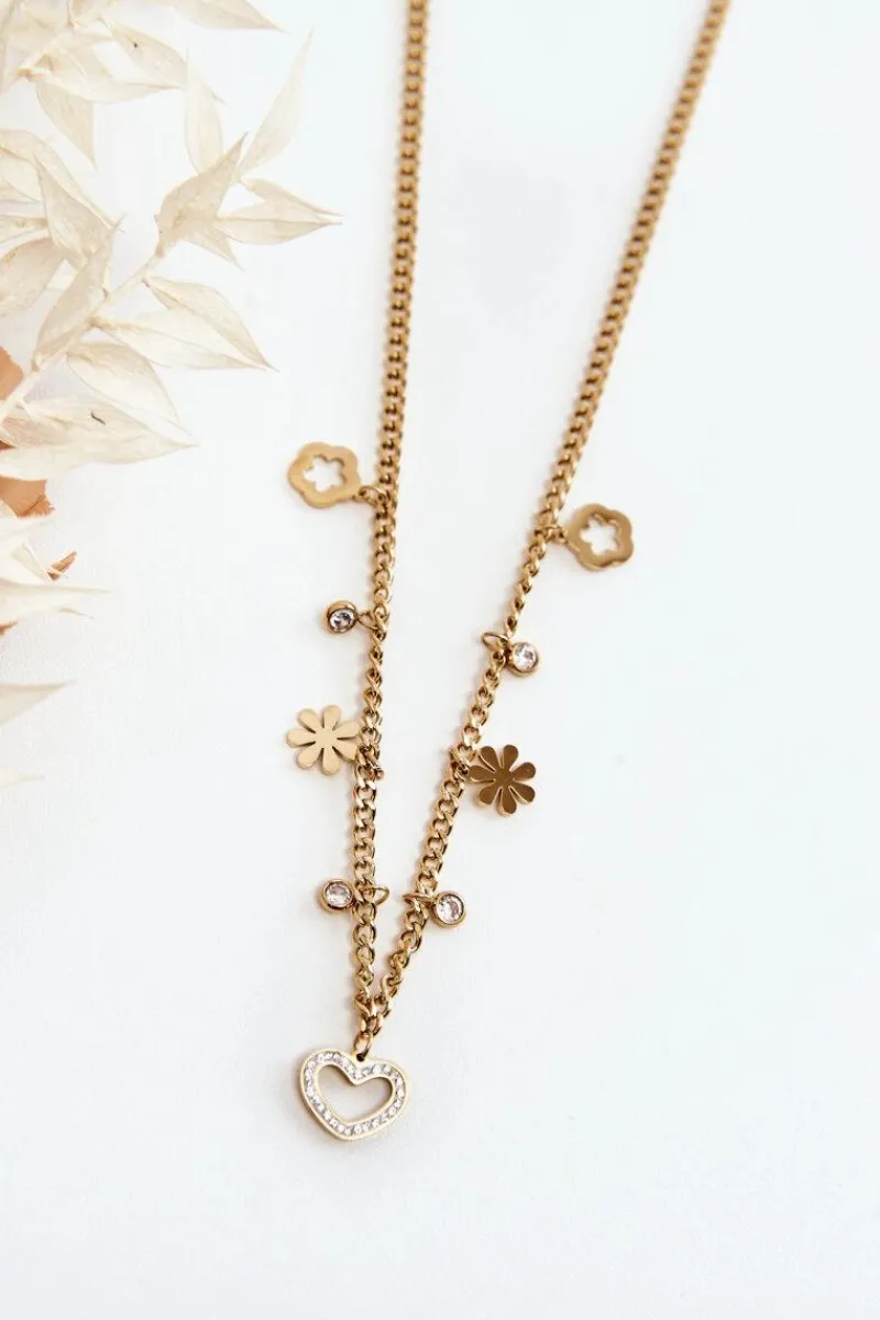 Clearance Modny Łańcuszek Z Kwiatami I Sercem Złoty Naszyjniki