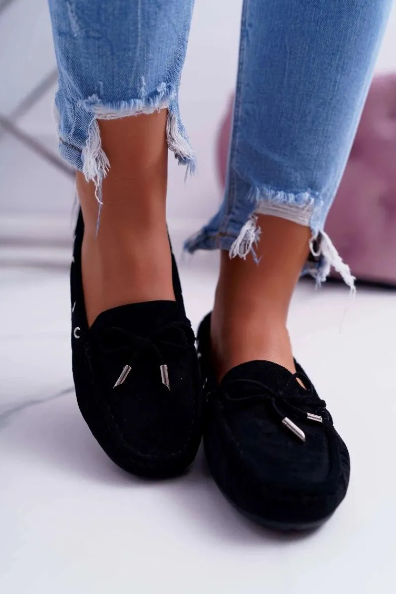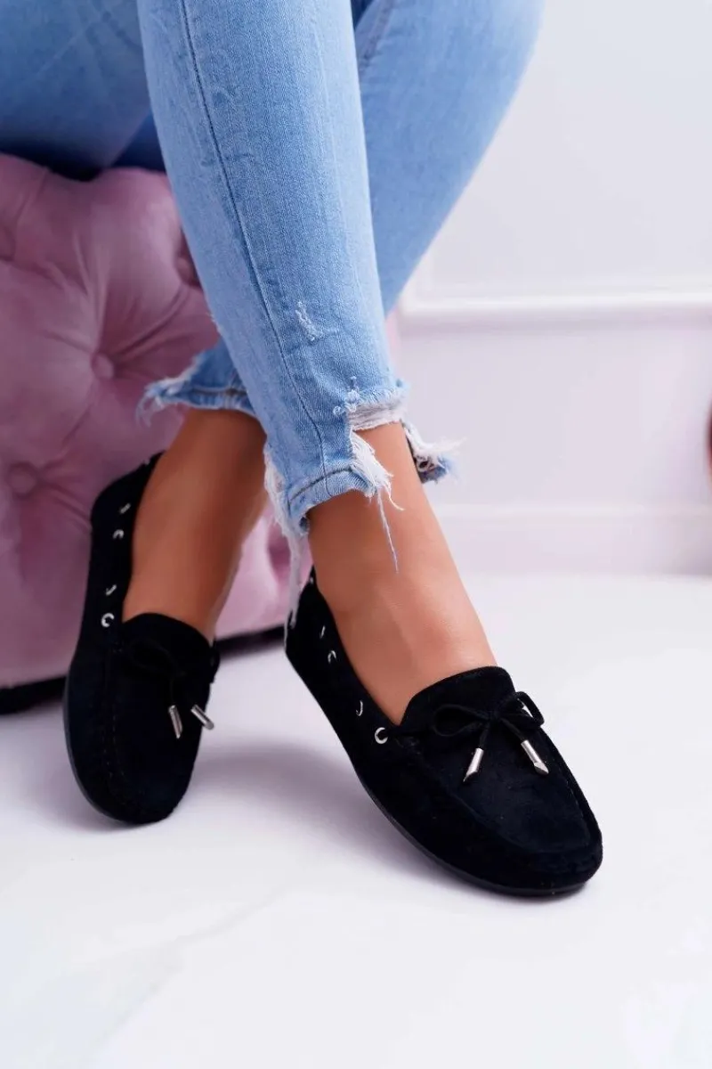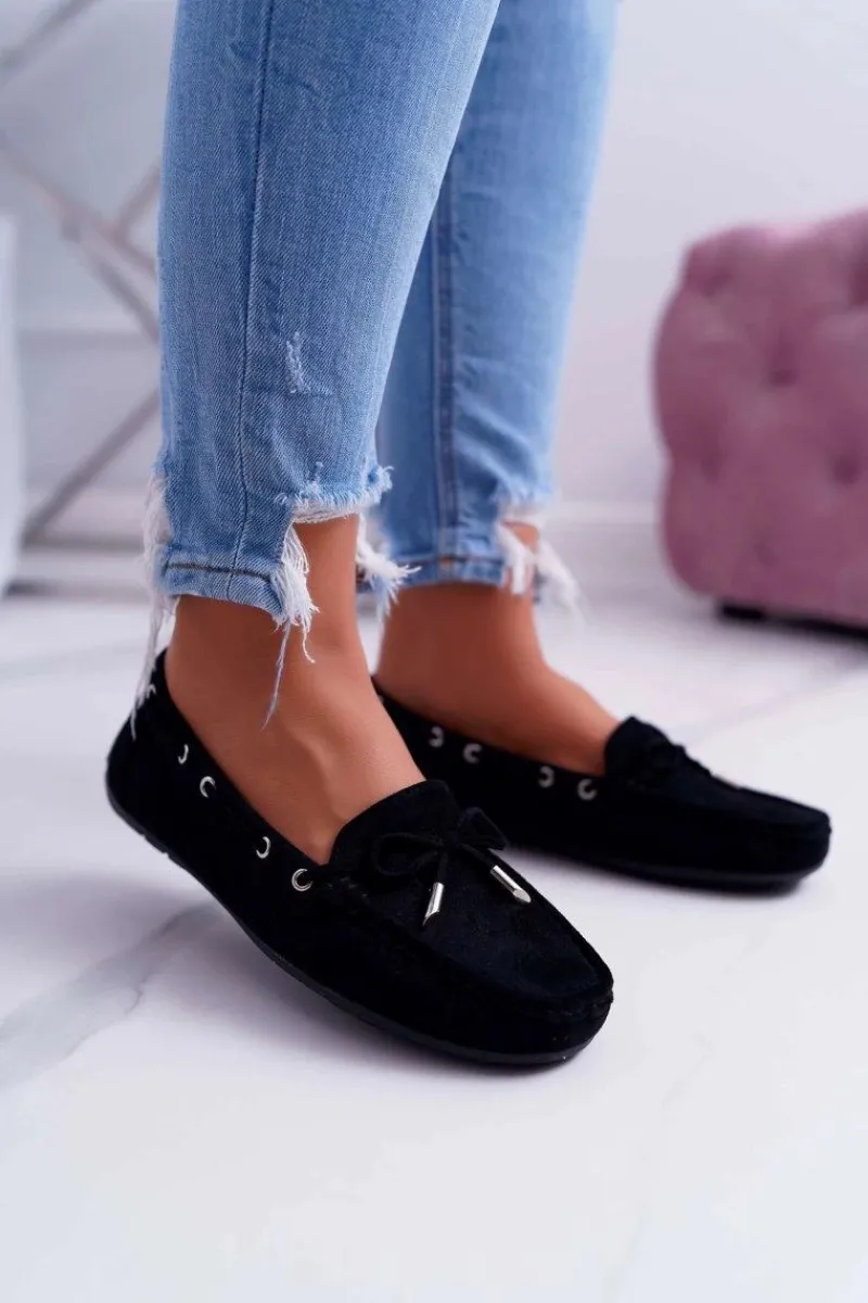 Clearance Mokasyny Damskie Wygodne Eko-zamsz Czarne Memfi Damskie Mokasyny Damskie Zamszowe