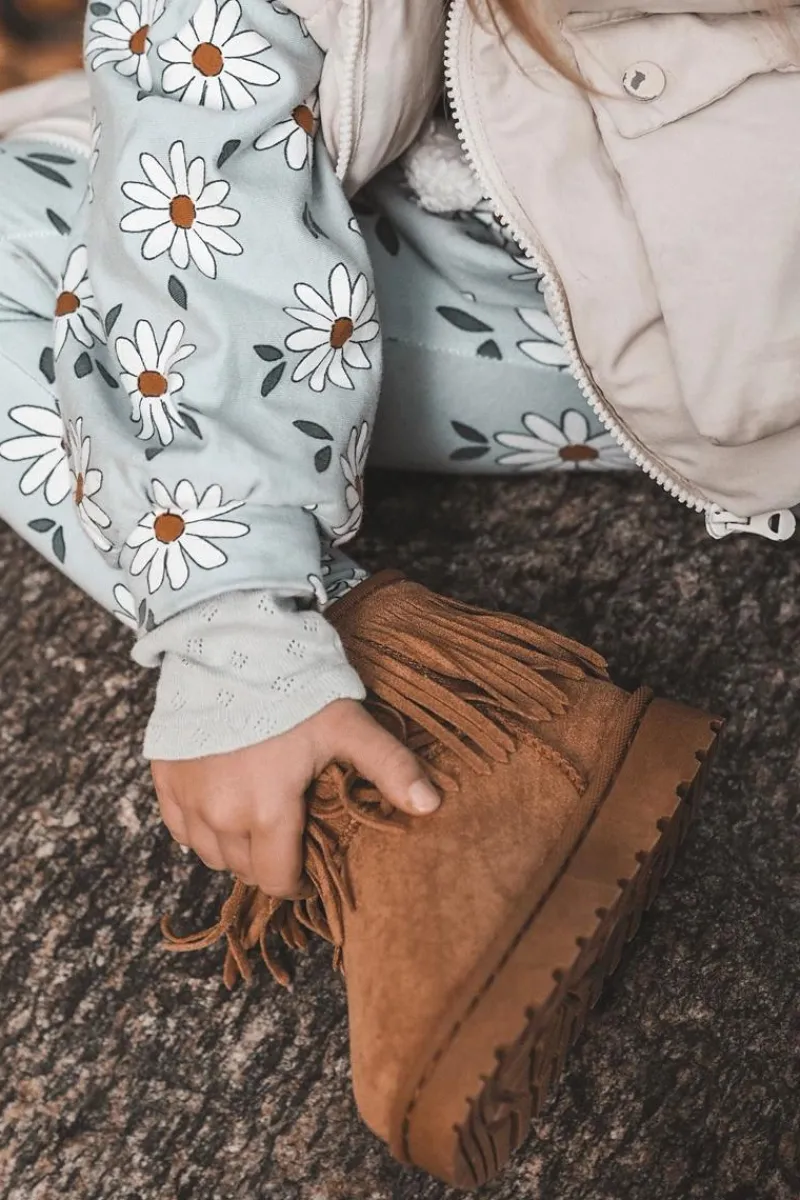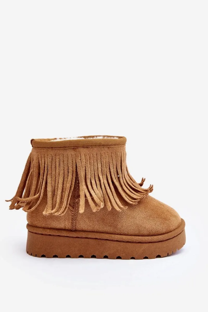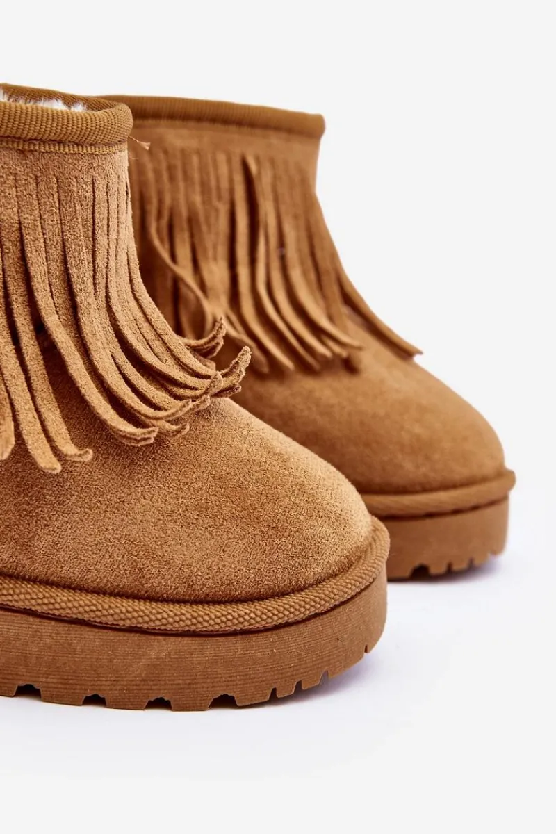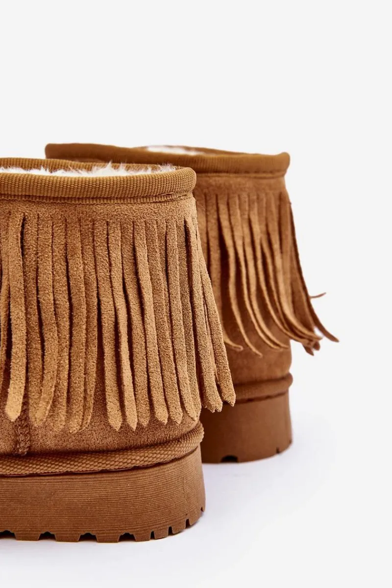 Podczas chłodnych dni warto zadbać o wygodne obuwie. Jedną z naszych propozycją są te modne botki, śniegowce dostępne w kilku wersjach i kolorach. Wykonane z eko zamszu. Osadzone na podeszwie z gumowego tworzywa. Środek ocieplony grubym futerkiem. Cholewka za kostkę ozdobiona frędzlami. Koniecznie sprawdź całą naszą ofertę śniegowców. Przy wyborze rozmiaru prosimy kierować tabelą rozmiarów.