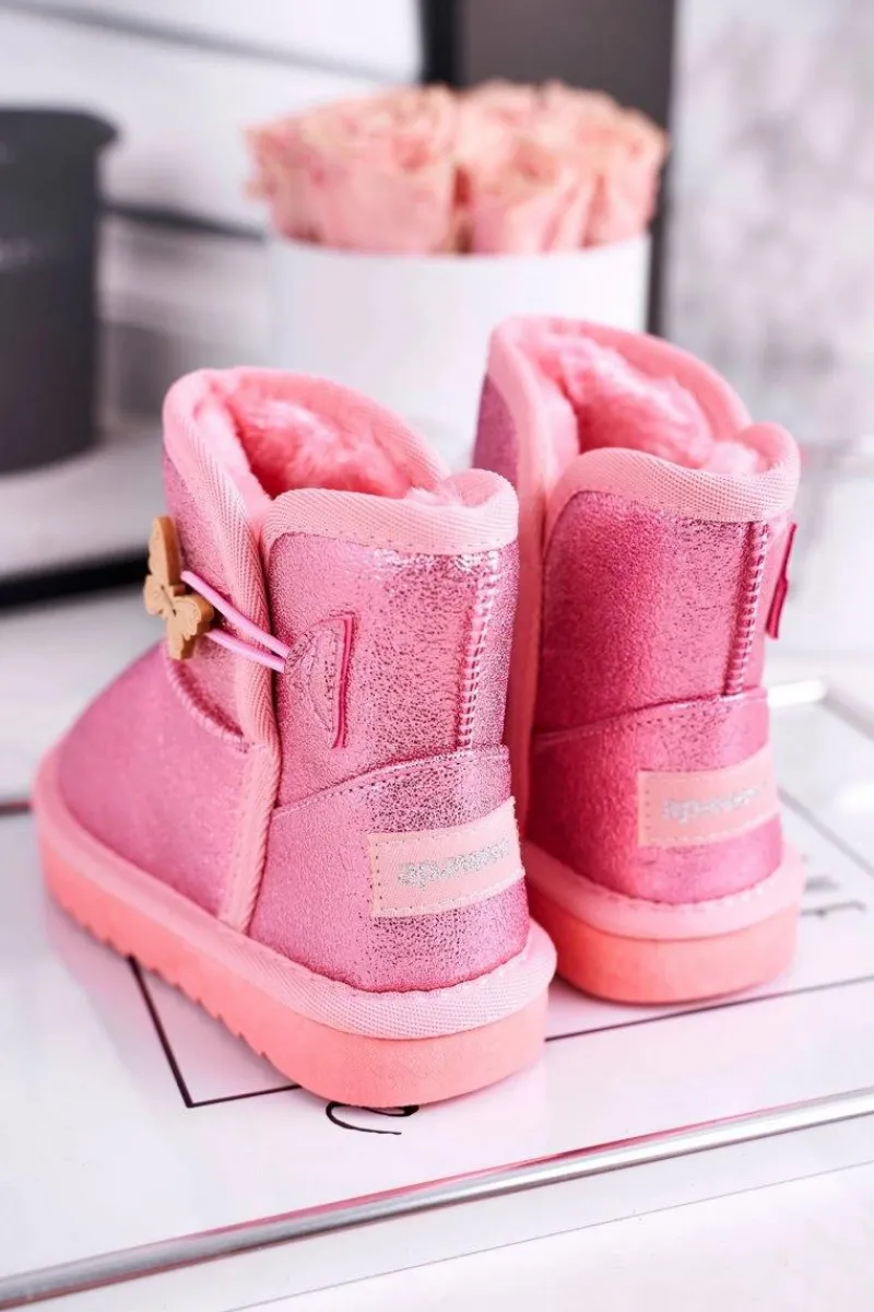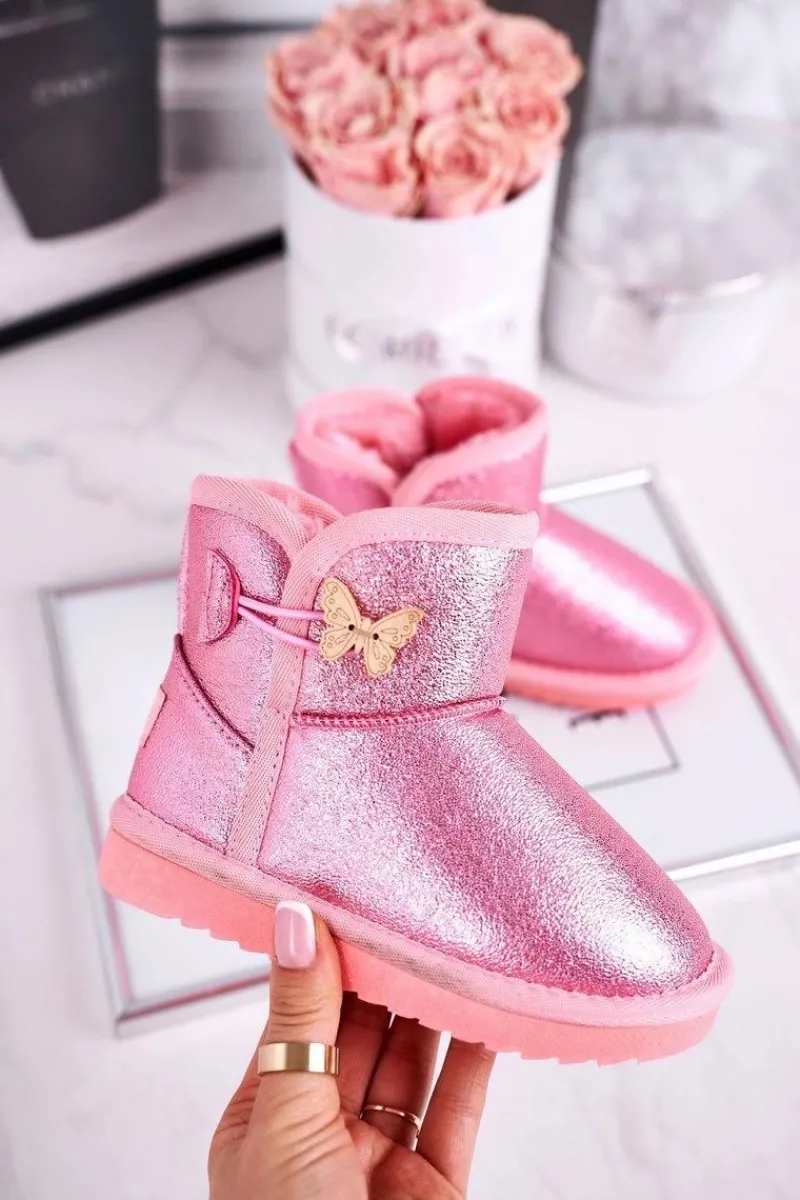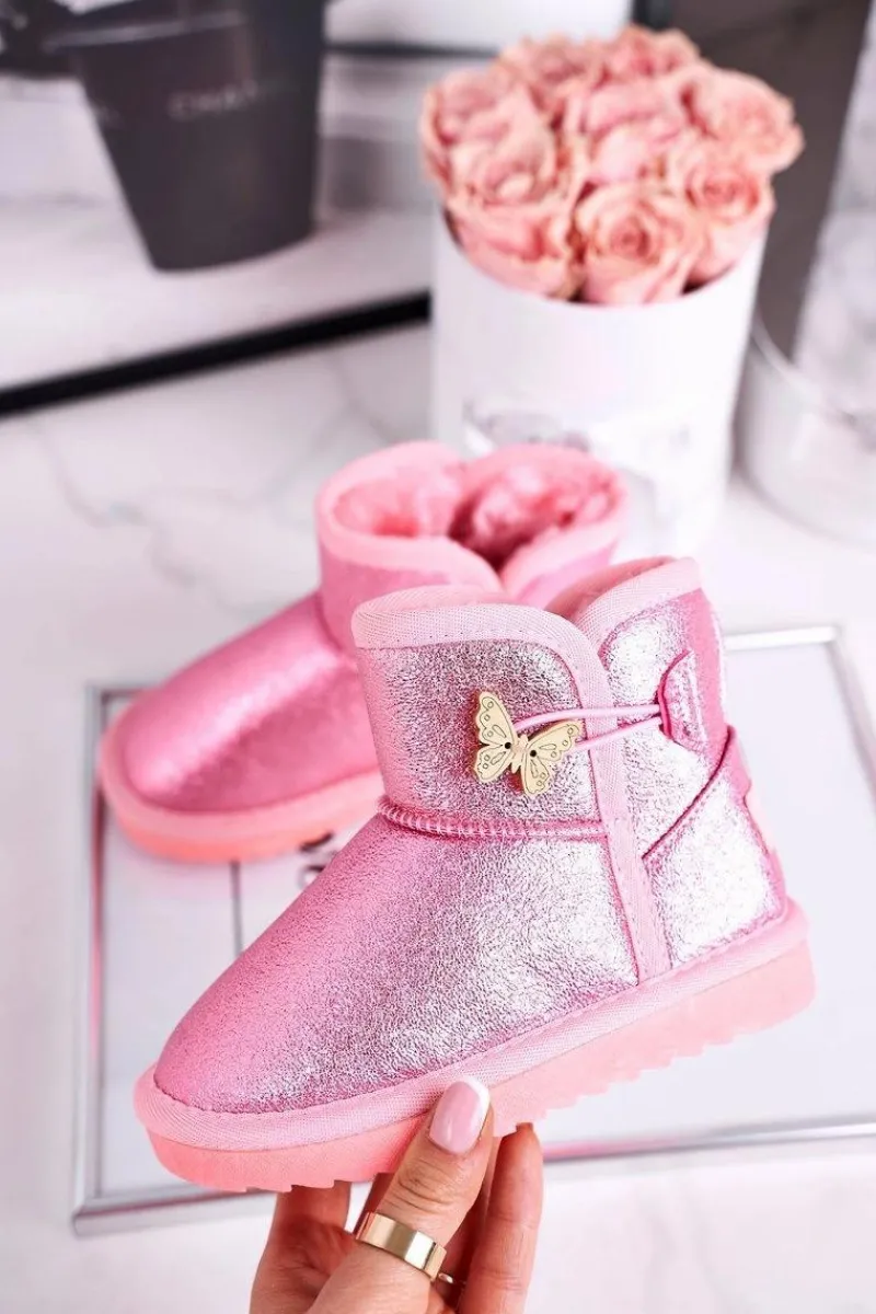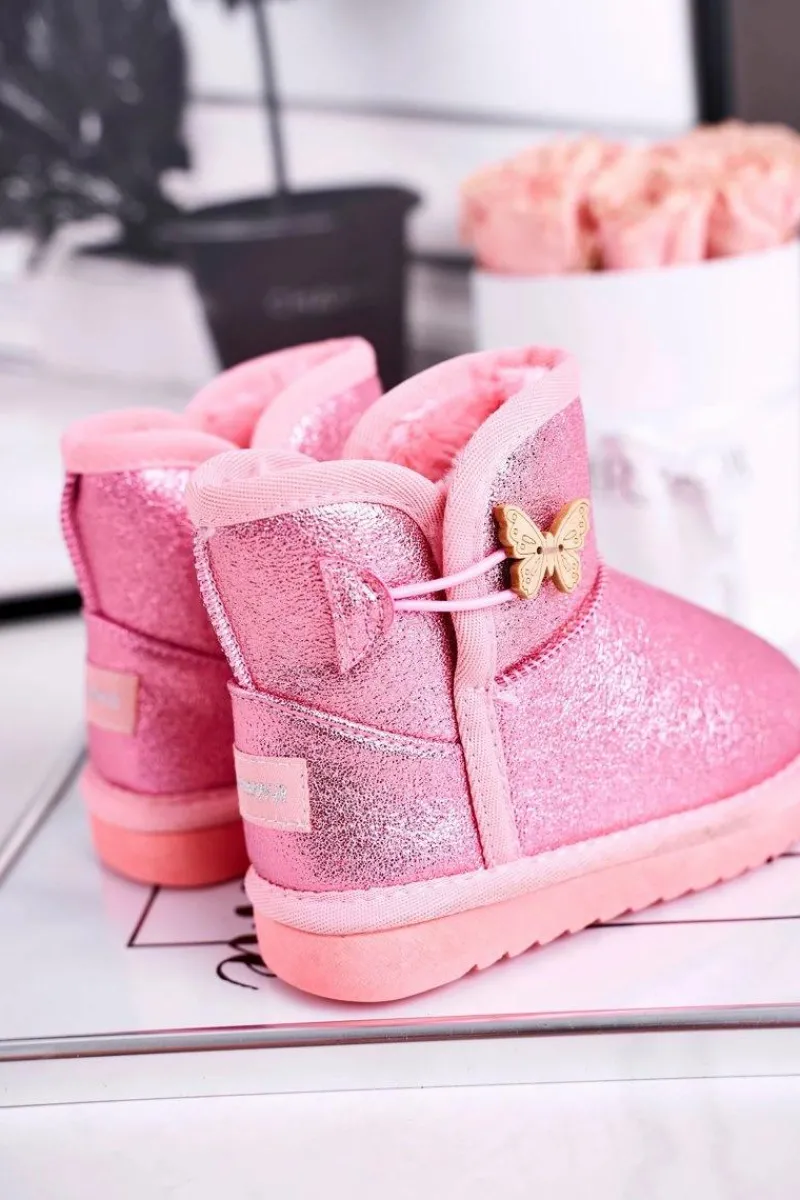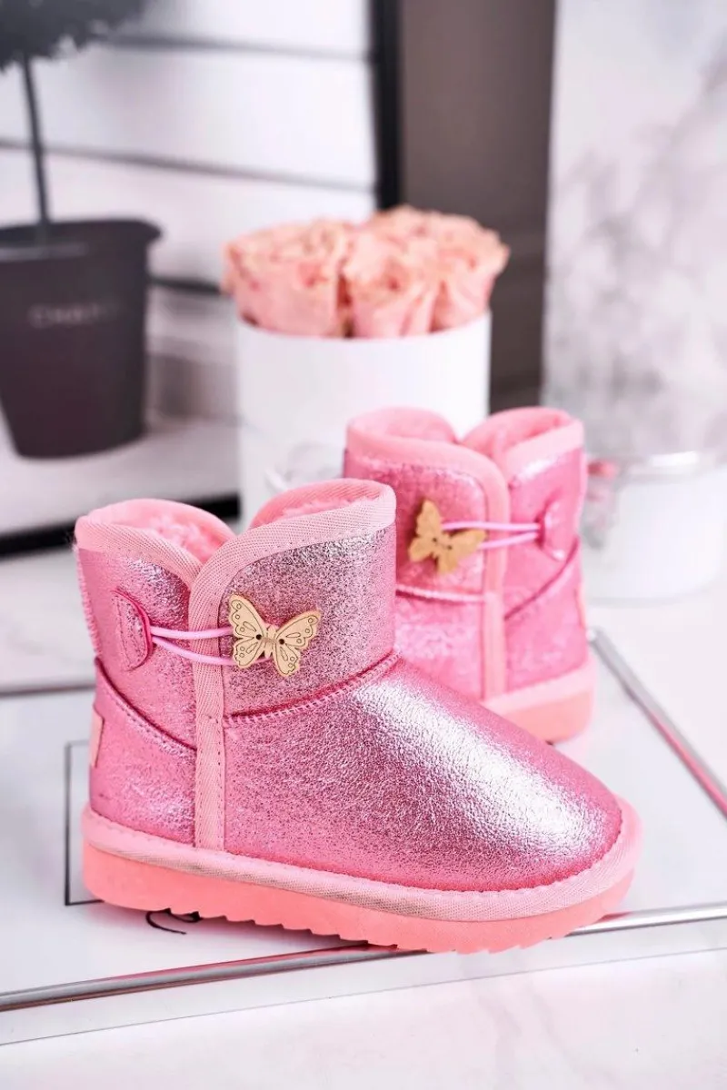 Clearance Ocieplane dziecięce botki śniegowce z motylkiem różowe Cosmic Dzieci Dziewczęce