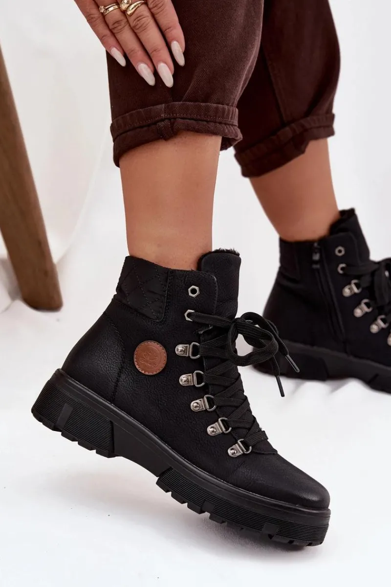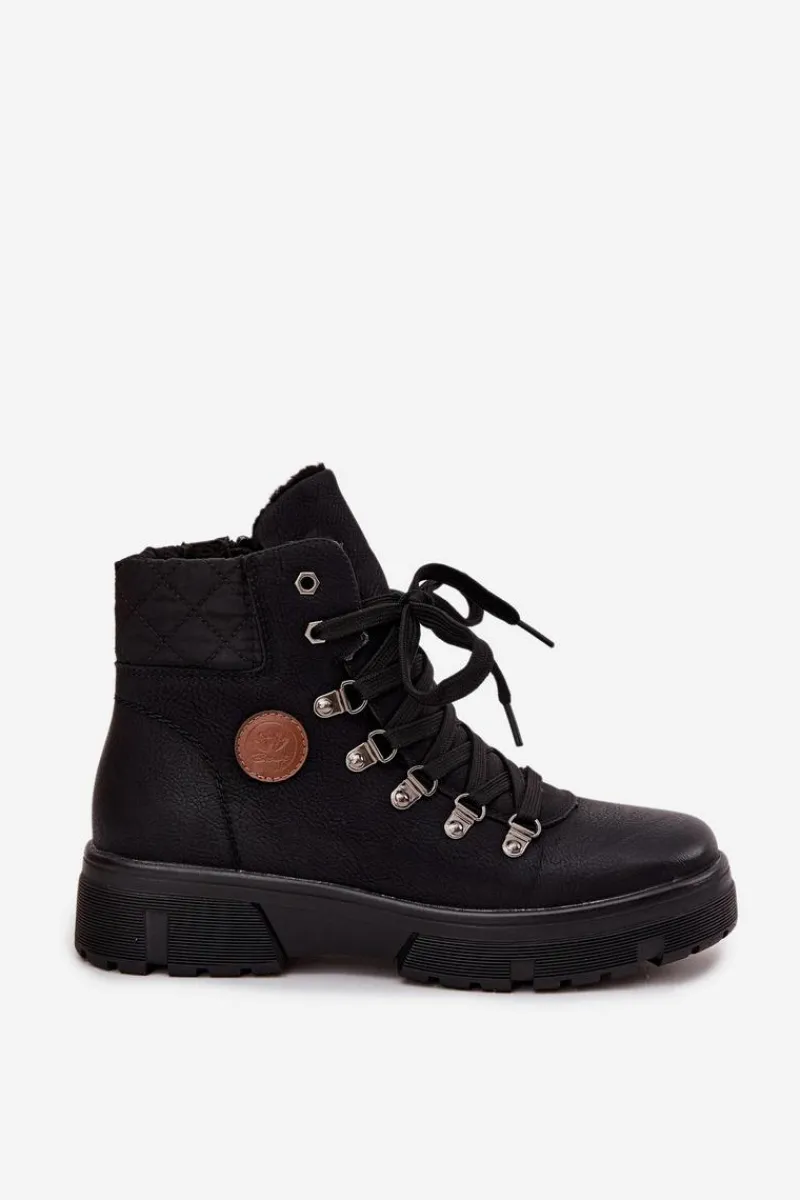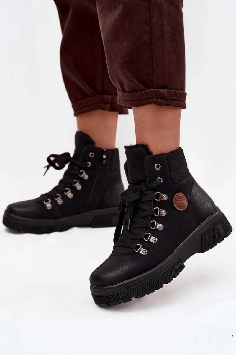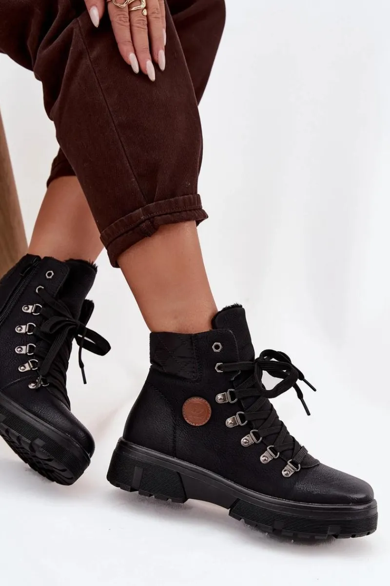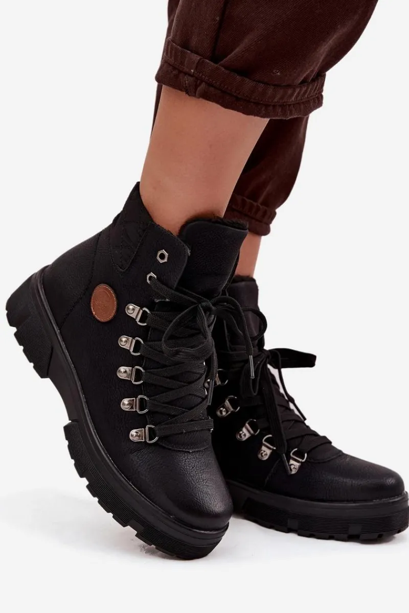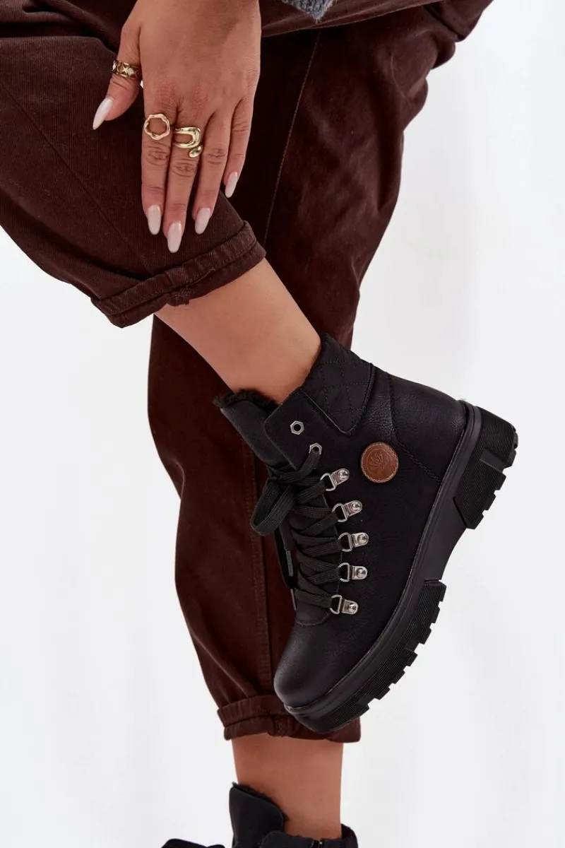 Damskie trapery wykonane z eko skóry to stylowa i praktyczna propozycja na chłodniejsze dni. Osadzone na solidnej platformie, zapewniają stabilność i wygodę podczas chodzenia. Wnętrze ocieplone miękkim futerkiem gwarantuje ciepło i komfort, dzięki czemu buty świetnie sprawdzą się w zimowe dni. Model posiada zarówno sznurowanie, jak i zamek, co ułatwia zakładanie oraz pozwala na idealne dopasowanie do stopy. To uniwersalne trapery, które doskonale uzupełnią codzienne stylizacje. Przy wyborze rozmiaru prosimy sugerować się tabelą rozmiarów.