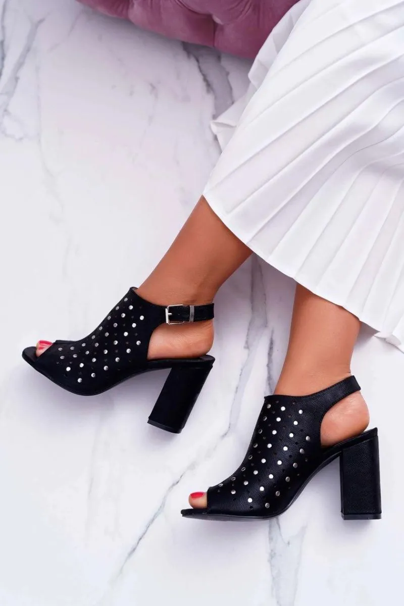 Clearance Sandały Damskie Na Słupku Ażurowe z Dżetami Czarne Hendrix Damskie Sandały Ażurowe|Sandały Na Obcasie