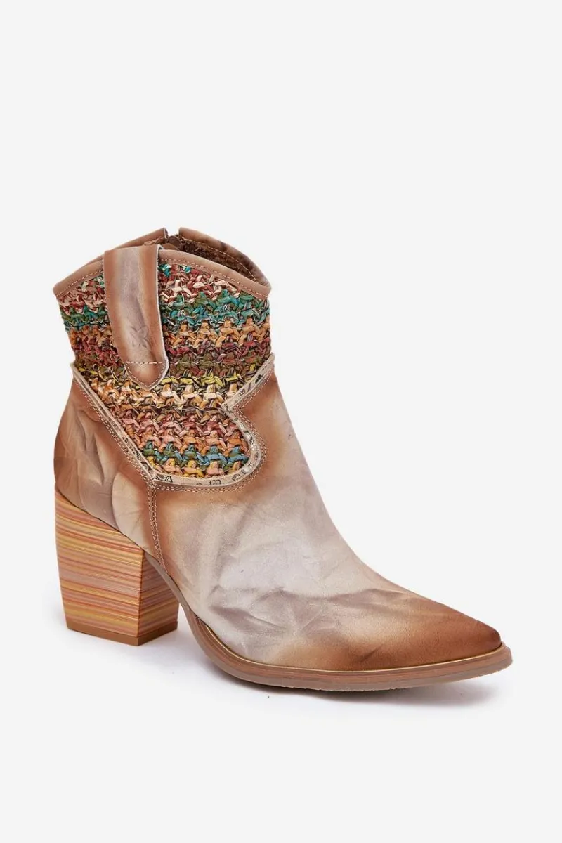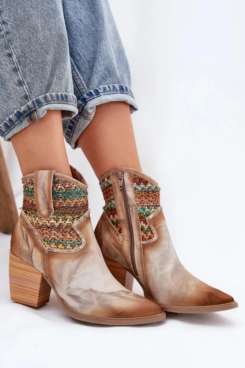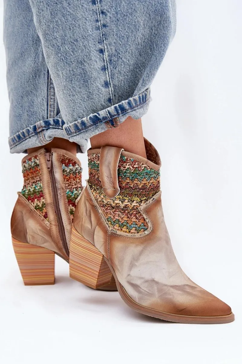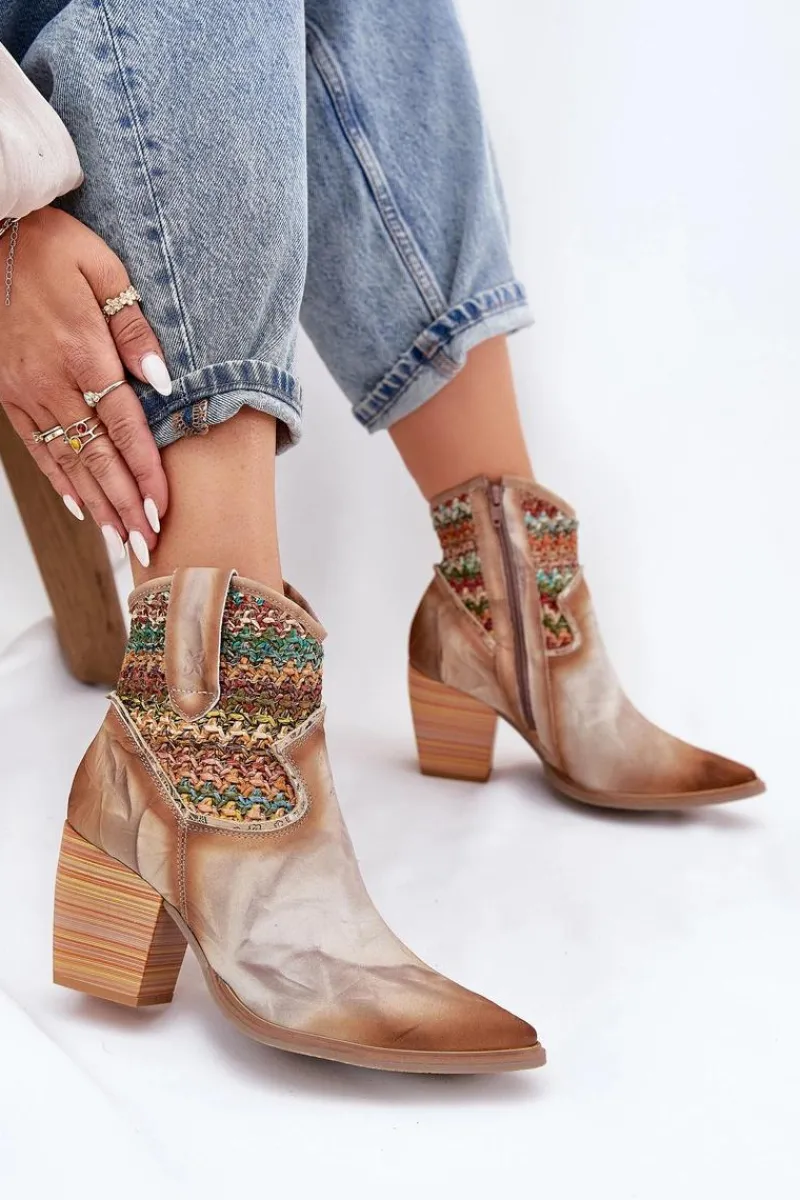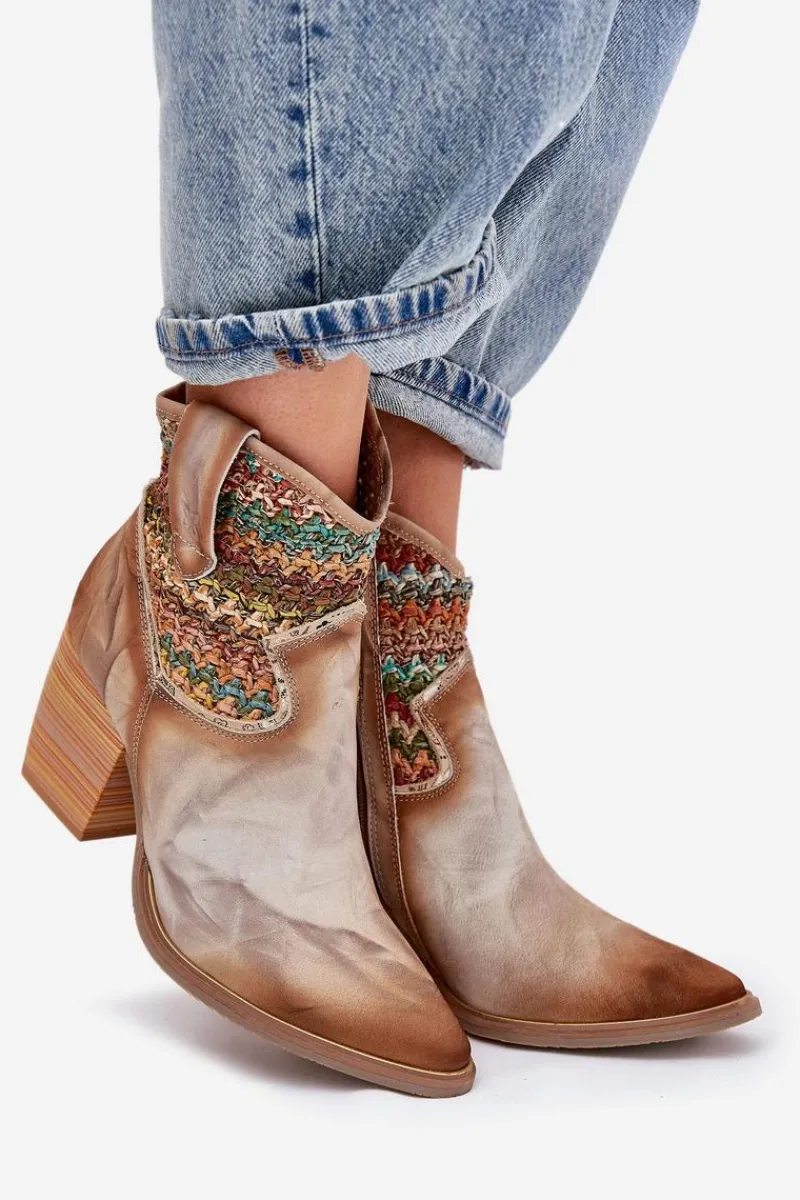 Skórzane botki kowbojki marki Maciejka to modny wybór dla osób ceniących styl i wygodę. Wykonane z wysokiej jakości skóry naturalnej, posiadają szpiczaste noski, które nadają im wyrazistego charakteru. Góra cholewki ozdobiona kolorową plecionką, która przyciąga wzrok i dodaje unikalnego akcentu. Zapinane na zamek, zapewniają łatwość zakładania i idealne dopasowanie. Te botki to doskonała propozycja do różnorodnych stylizacji, które łączą nowoczesność z klasyczną elegancją. Przy wyborze rozmiaru prosimy sugerować się tabelą rozmiarów.