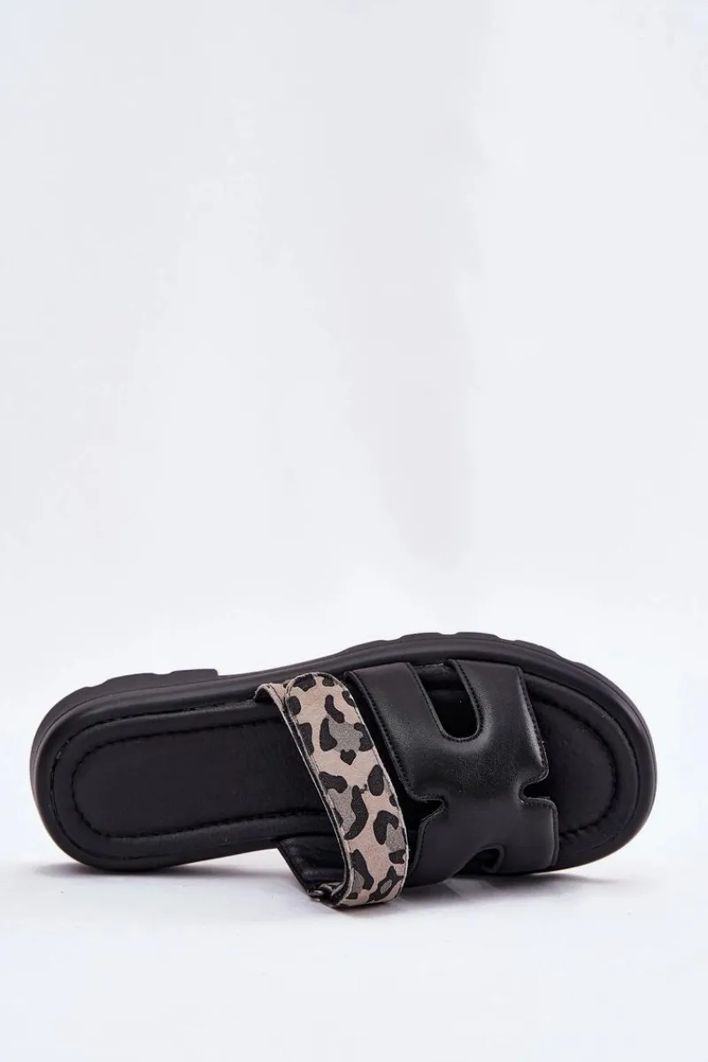 Clearance Skórzane Klapki Damskie Z Rzepem Panterka Vinceza 66769 Czarne Damskie Klapki Damskie Klasyczne