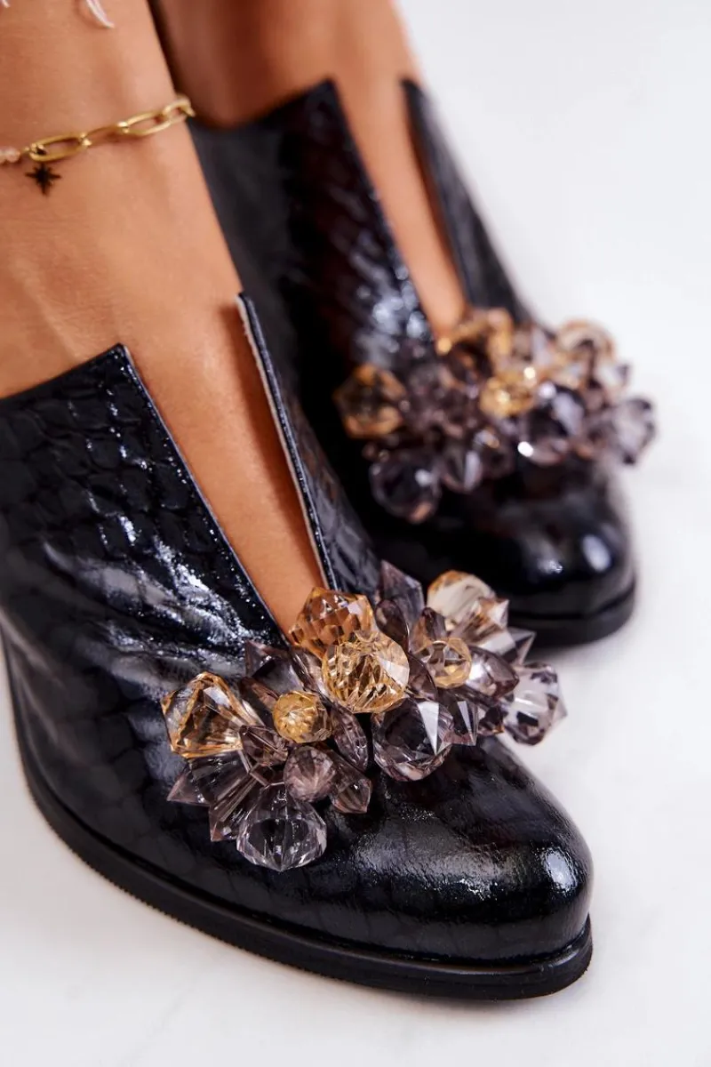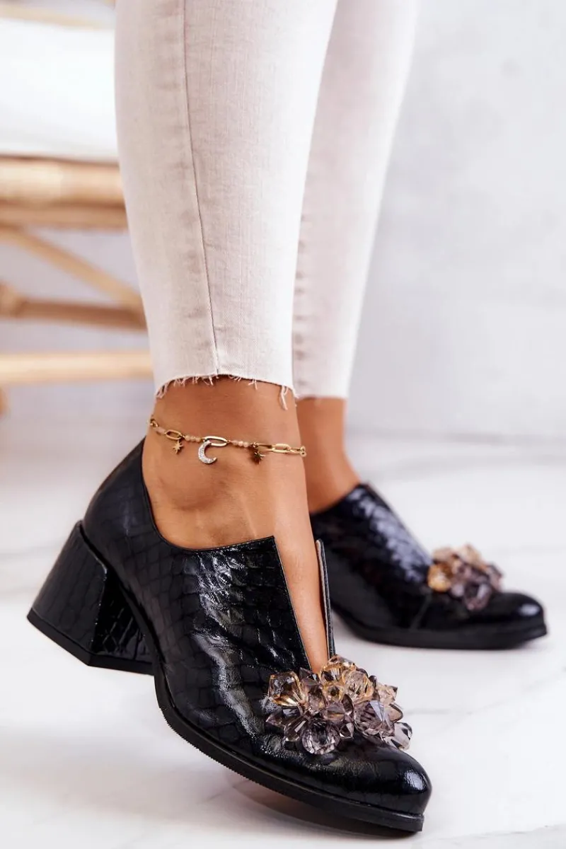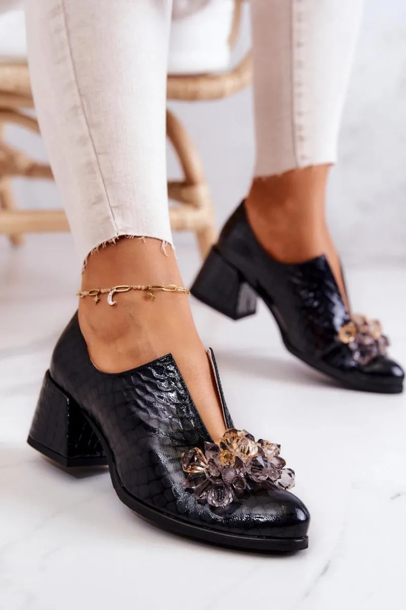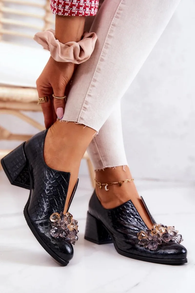 Eleganckie półbuty na niskim obcasie w postaci szerokiego słupka. Zostały wykonane z naturalnej skóry. Posiadają miękką wkładkę. Ozdoba przyszyta na przodzie oraz rozcięcie sprawia, że są naprawdę wyjątkowe. Buty posiadają nosek w kształcie migdała. Koniecznie sprawdź także pozostałe modele półbutów dostępnych w naszej ofercie! Przy wyborze rozmiaru prosimy sugerować się tabelą rozmiarów.
