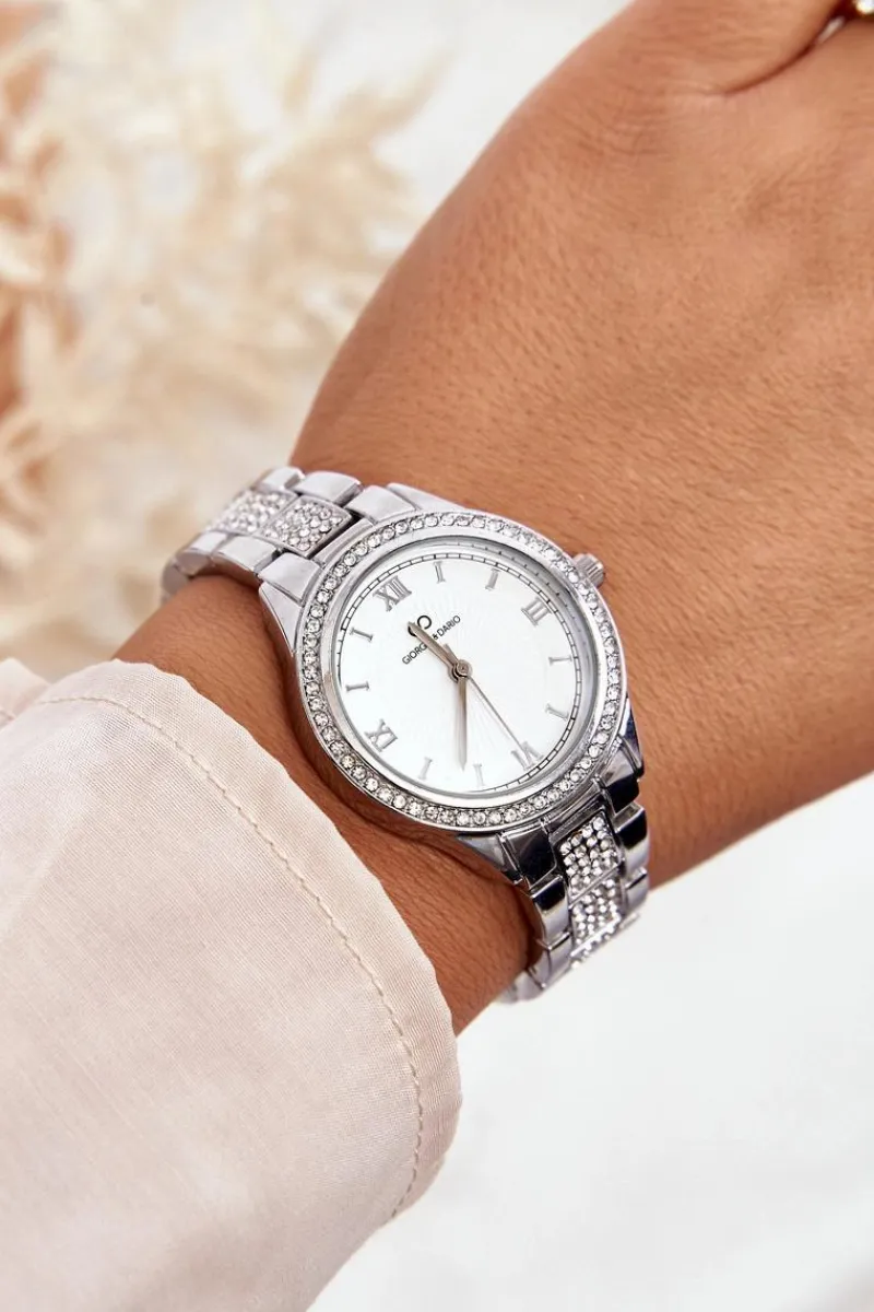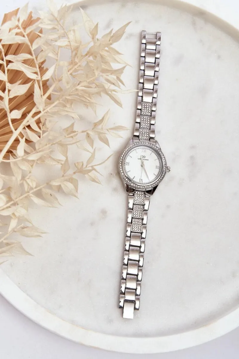 Clearance Stalowy Masywny Zegarek Z Cyrkoniami Giorgio & Dario Srebrny Zegarki