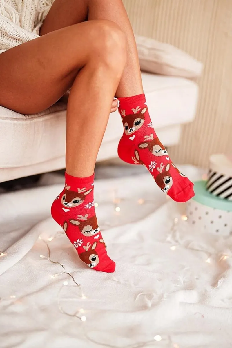Clearance Świąteczne Damskie Skarpetki Renifery Czerwone Skarpetki|Skarpetki