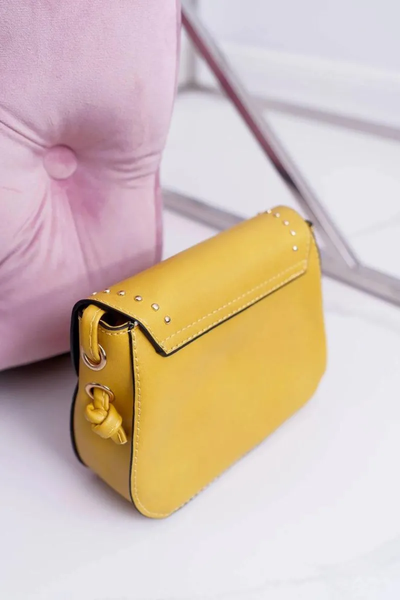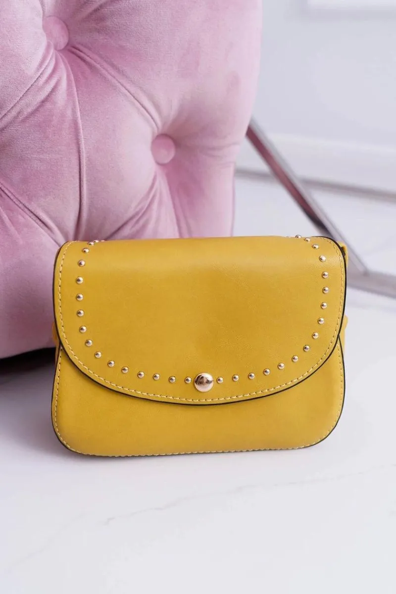 Clearance Torebka Damska Mała Kuferek Złote Nity Zółta Torebki Kuferki