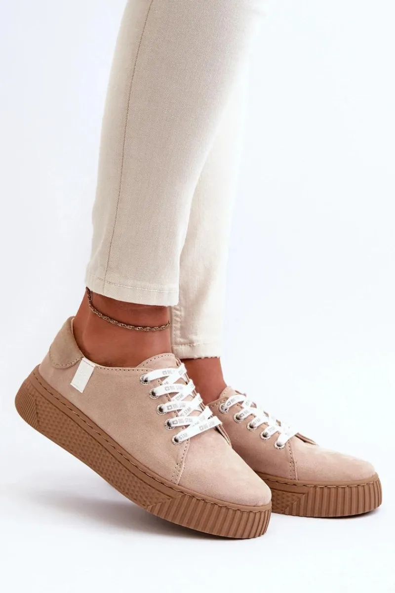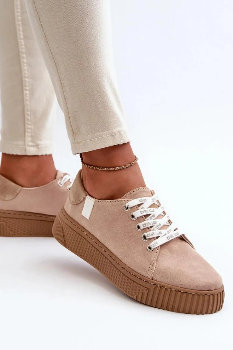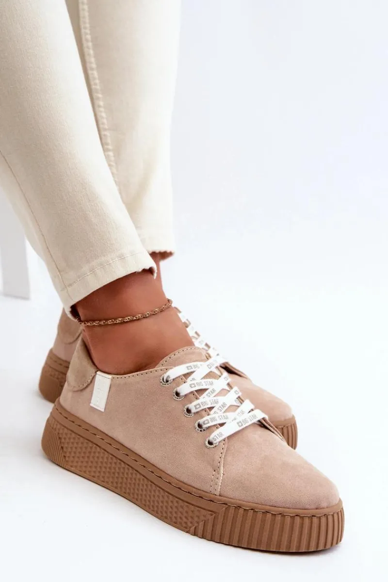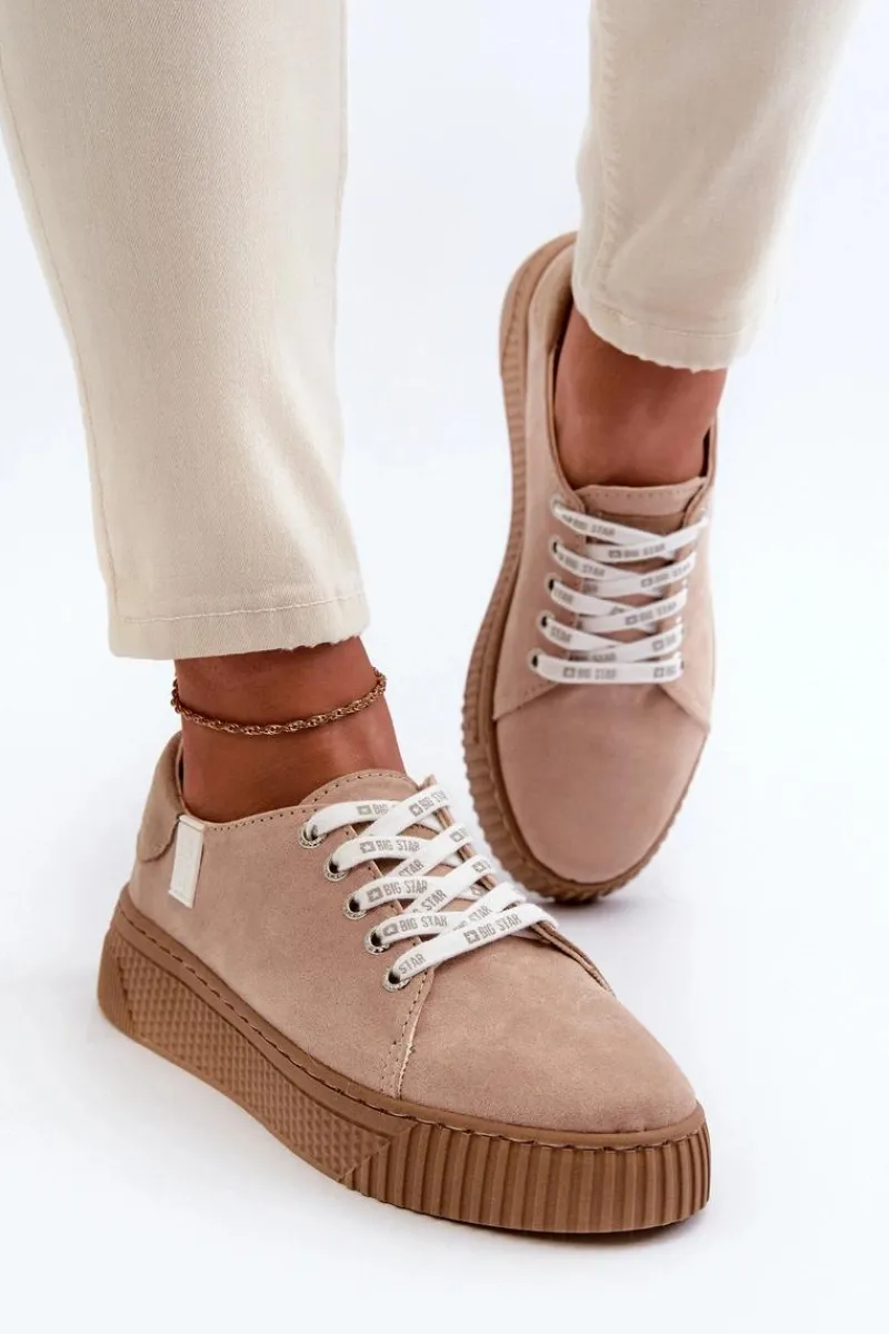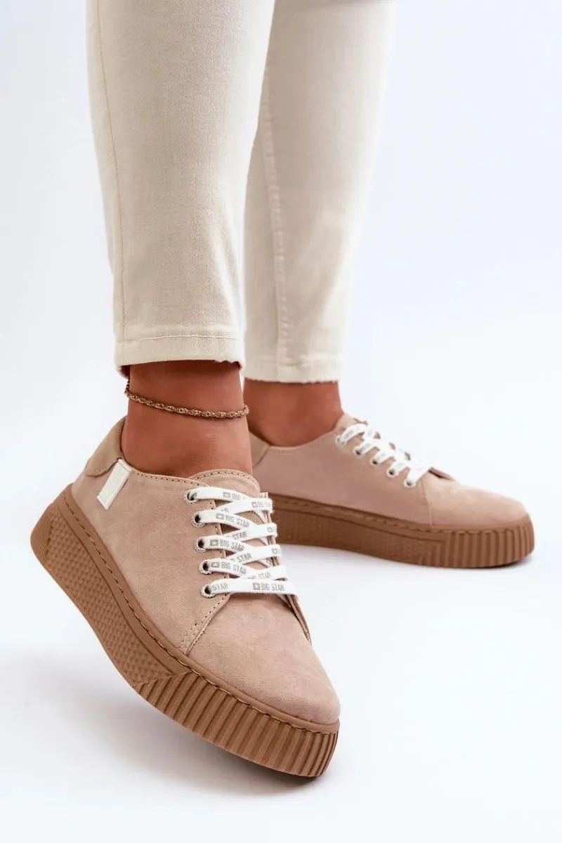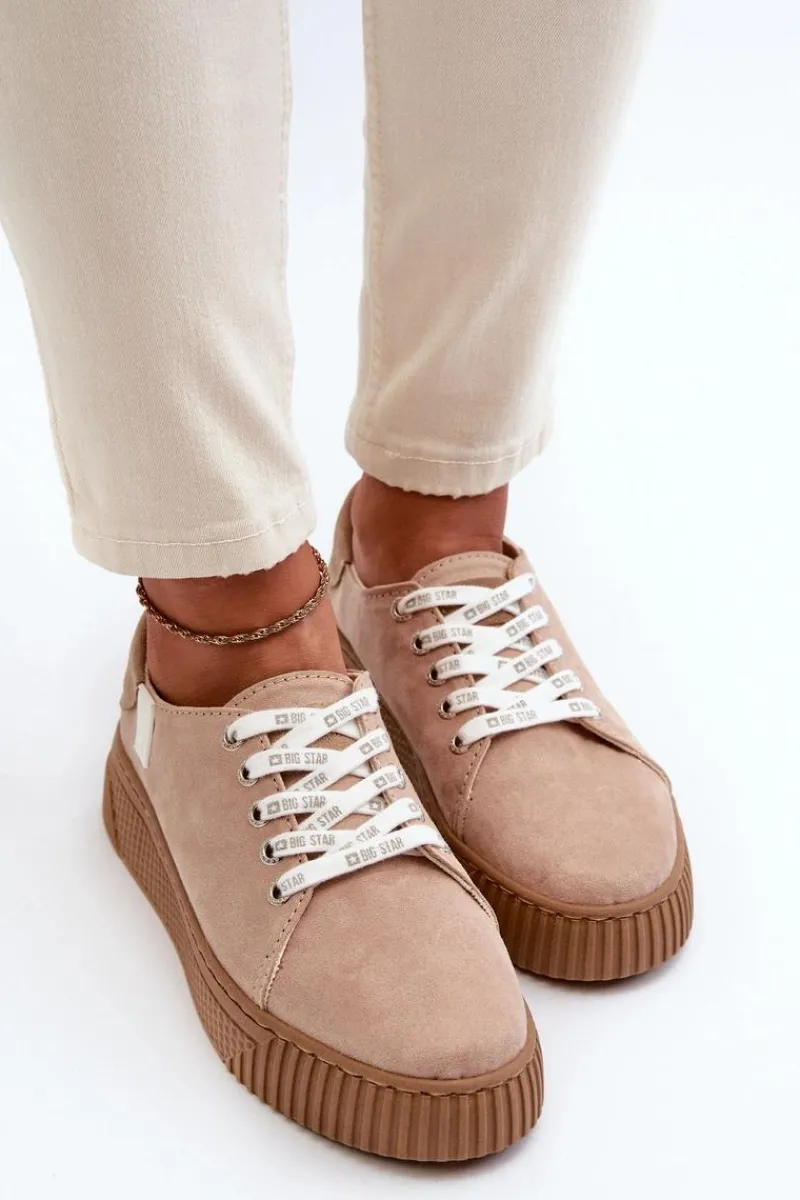Damskie trampki od marki Big Star wykonane z eko skóry. Osadzone na grubej platformie z gumowego tworzywa. Noski zaokrąglone. Model ten posiada wyjątkową wkładkę MEMORY FOAM SYSTEM, która zapamiętuje kształt stopy, zapewnia doskonałe dopasowanie, absorbuje wstrząsy oraz jest odporna na odkształcenia. Dodatkowo struktura pianki pozwala na odparowywanie wilgoci i regulację temperatury. Ten niezwykle stylowy fason koniecznie musi się znaleźć w Twojej wiosenno-letniej garderobie! Przy wyborze rozmiaru prosimy sugerować się tabelą rozmiarów.