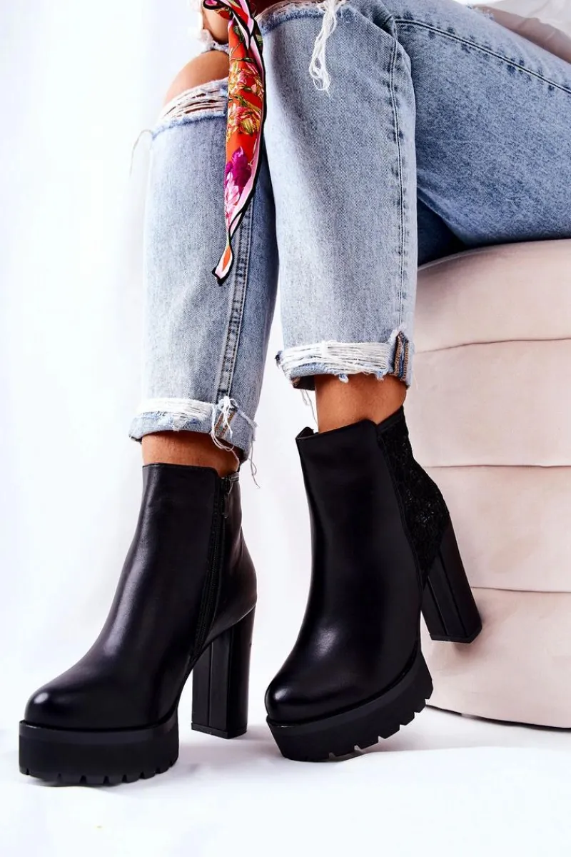 Botki to nie tylko buty na chłodne dni. Świetnie sprawdzą się również przy jesiennych stylizacjach. Wykonane z eko skóry. Z boku cholewki znajduje się ozdobny haft. Stabilny słupek uniesie i wyeksponuje Twoją sylwetkę. Zapinane na suwak. Botki są ocieplane w środku kocem obuwniczym. Przy wyborze rozmiaru prosimy sugerować się tabelą rozmiarów.