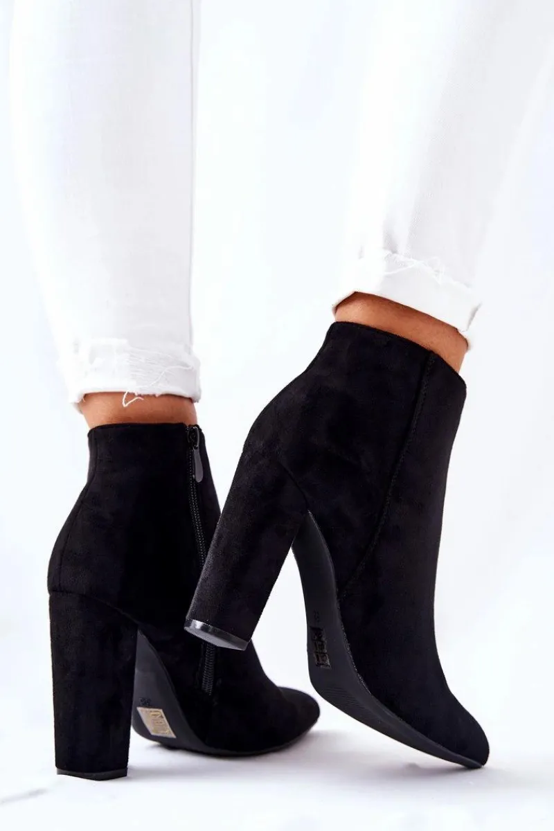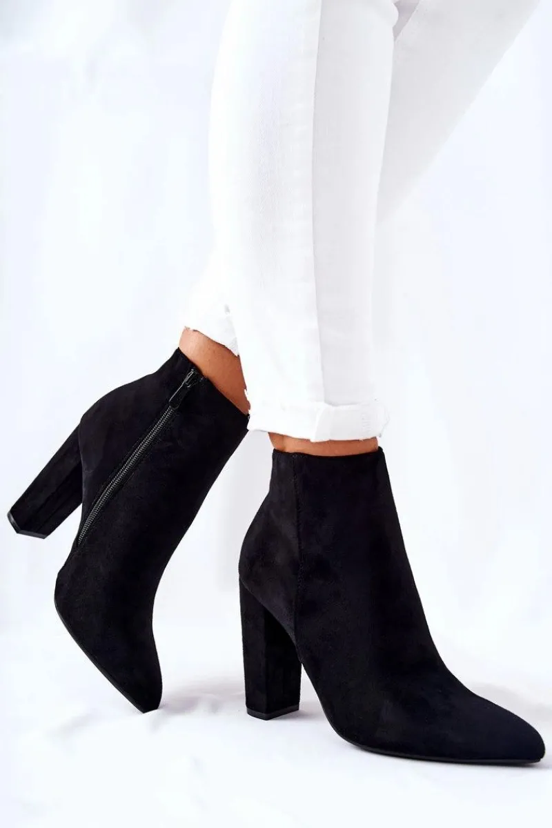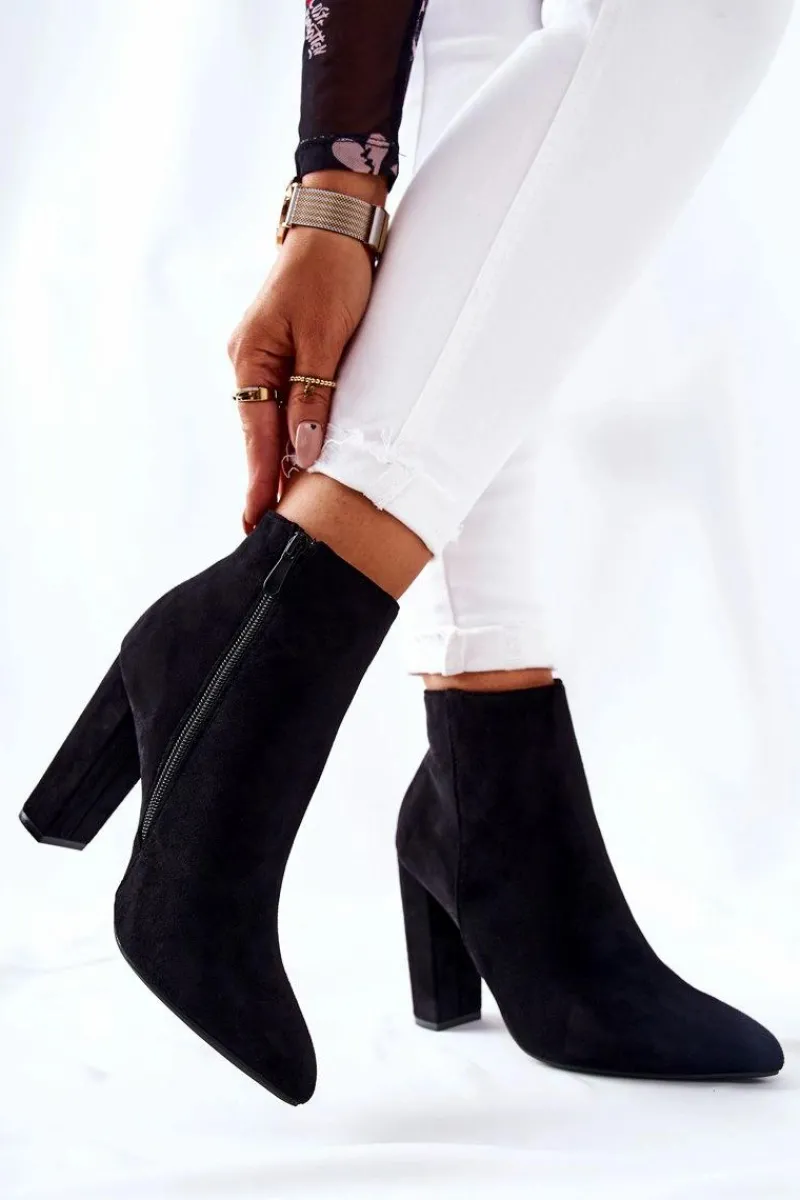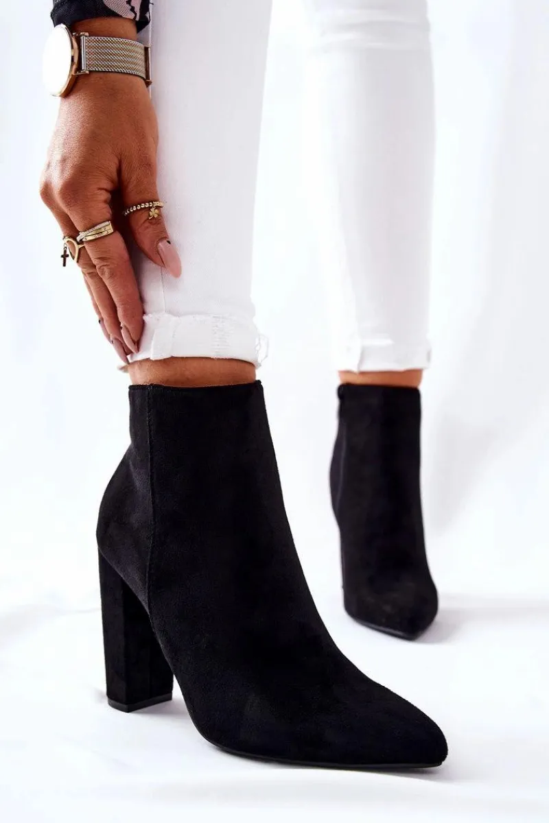 Botki na wysokim słupku wykonane zostały z eko-zamszu. Wnętrze ocieplone miłym w dotyku kocem obuwniczym z krótkim włosiem. Zapinane na zamek po wewnętrznej stronie cholewki. Piękne i klasyczne botki będą pasować zarówno do spodni jak i długich spódnic. Nie czekaj i kup już teraz! Przy wyborze rozmiaru prosimy sugerować się tabelą rozmiarów.