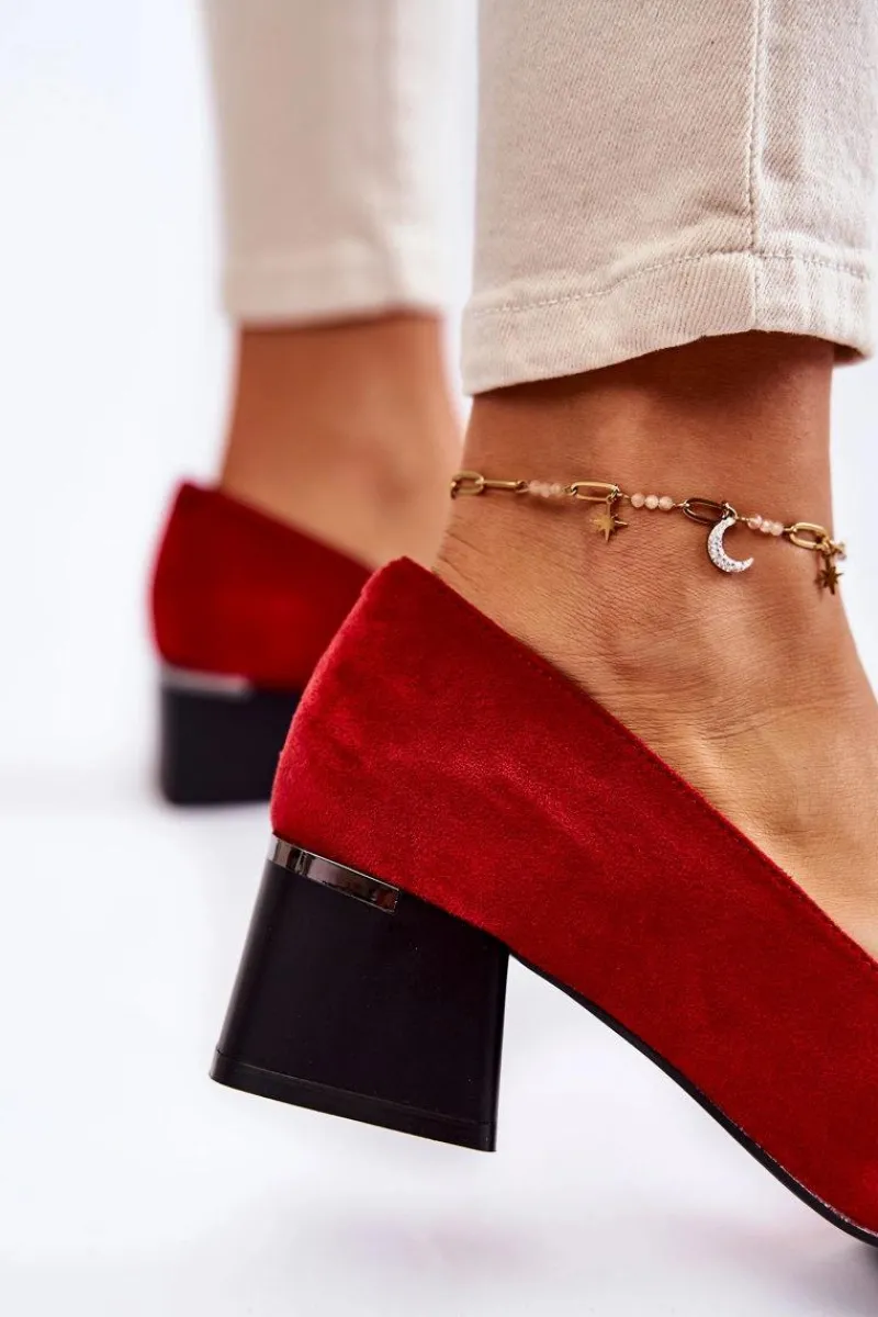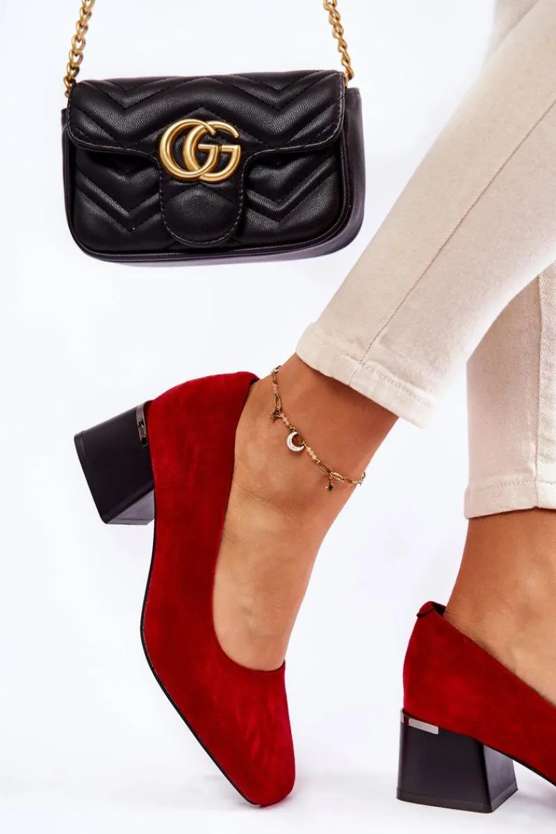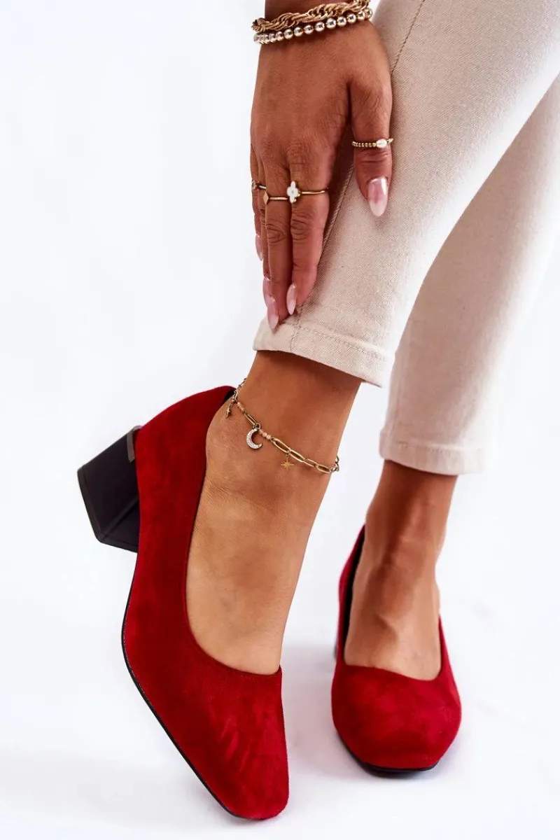 Klasyczne czółenka zostały wykonane z wysokiej jakości eko skórzanych materiałów. Posiadają usztywniany zapiętek oraz kwadratowy nosek. Świetny model do wielu stylizacji! Czółenka te posiadają miękką wkładkę wykonaną z naturalnej skóry, która zapewni wygodę podczas użytkowania. Zostały osadzone na obcasie w postaci klocka, co gwarantuje stabilizację. Przy wyborze rozmiaru prosimy sugerować się tabelą rozmiarów.