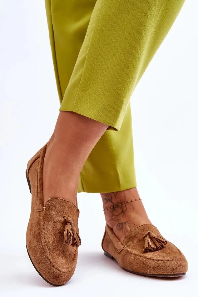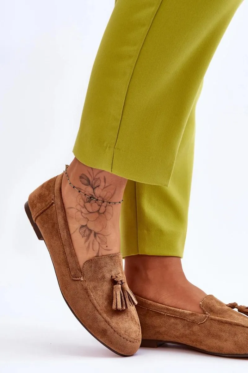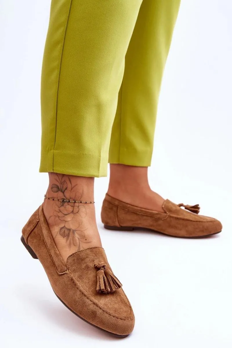 Clearance Zamszowe Klasyczne Mokasyny Z Frędzlami Brązowe Averil Damskie Mokasyny Damskie Zamszowe