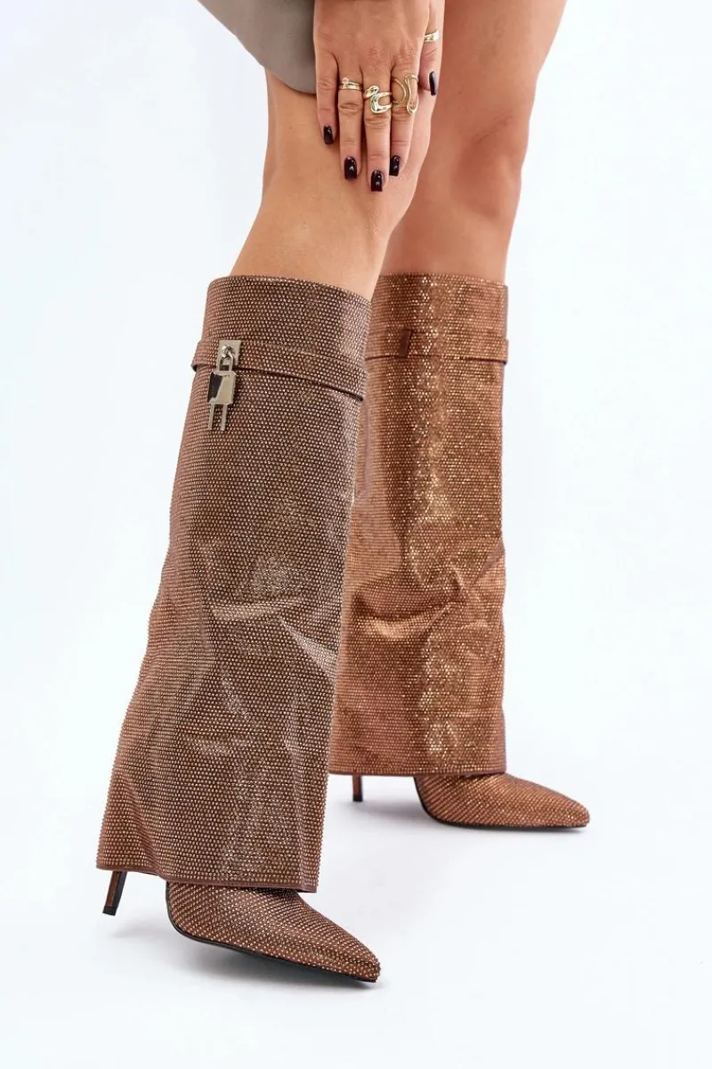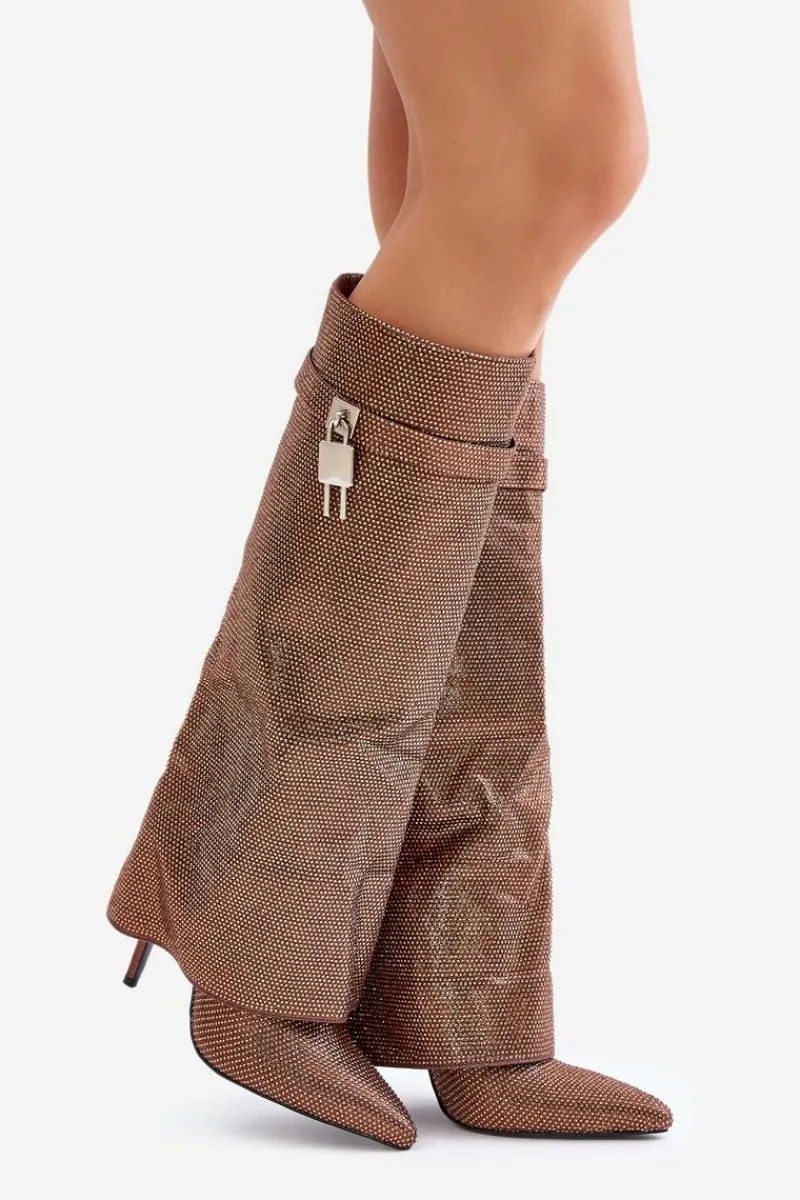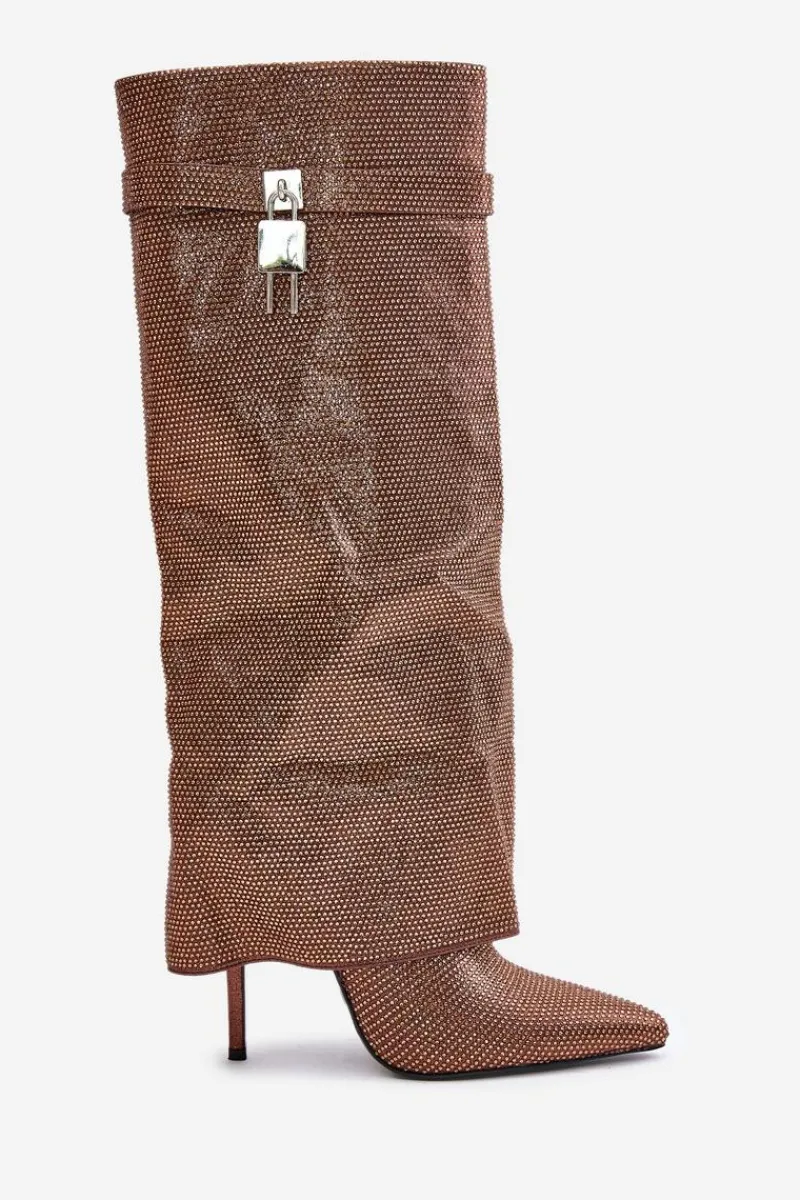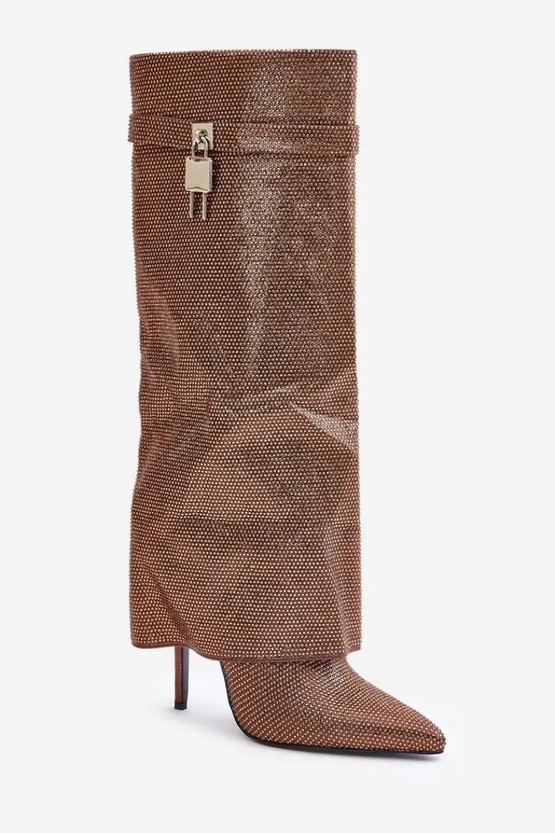 Clearance Zdobione Wsuwane Kozaki Na Szpilce Z Wywiniętą Cholewką Brązowe Enathlin Damskie Kozaki Ocieplane|Kozaki Na Szpilce