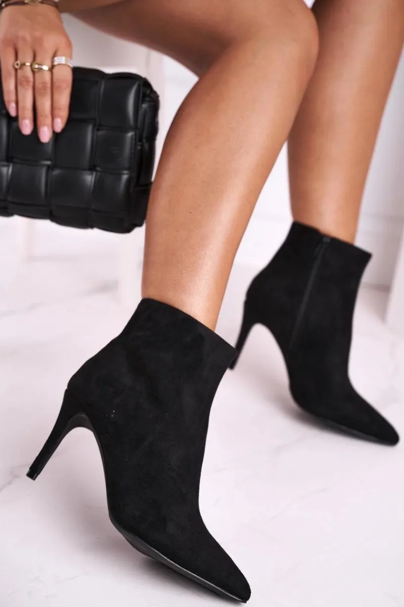Czarne Botki|Botki Na Obcasie>Boto Damskie Botki Na Szpilce Zamszowe Czarne Beneco
