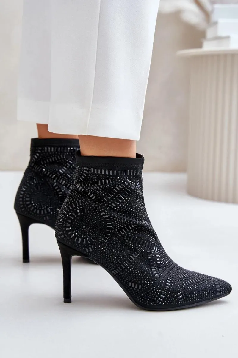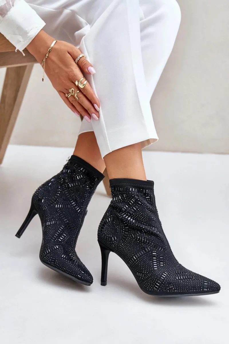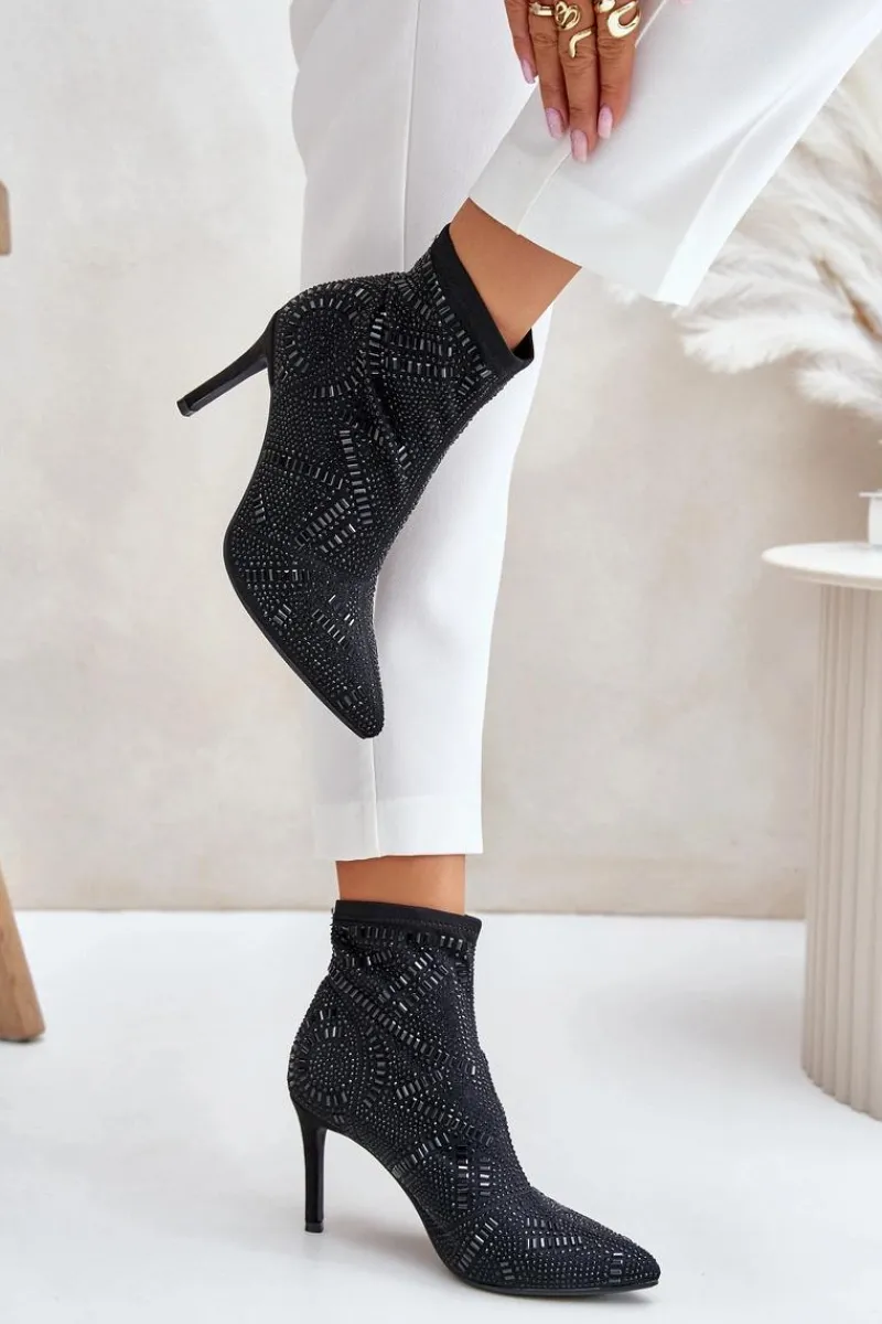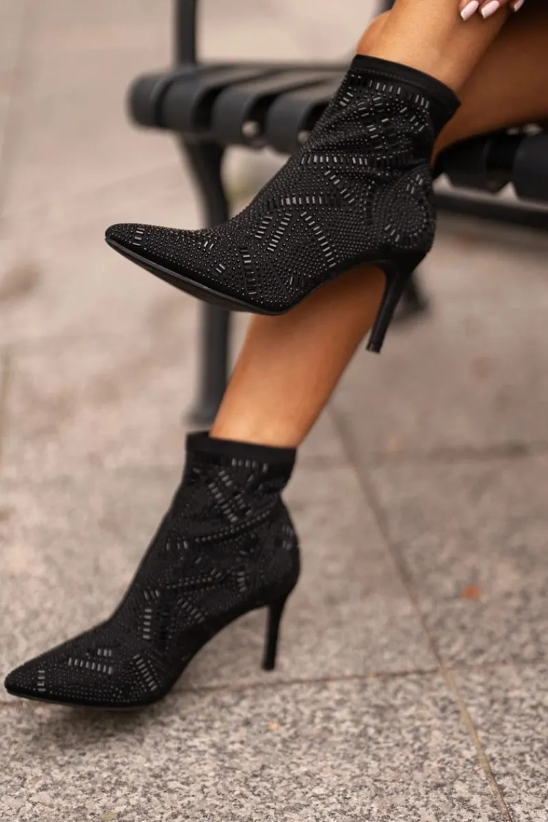 Śliczne botki damskie od marki S.Barski. Głównym atutem tego modelu jest liczne zdobienie na cholewce. Obcas w postaci szpilki. Noski w szpic optycznie wysmuklą nogi. Botki te z pewnością nadają blasku każdej stylizacji. Idealnie sprawdzą się na wieczorne wyjścia! Przy wyborze rozmiaru prosimy sugerować się tabelą rozmiarów.