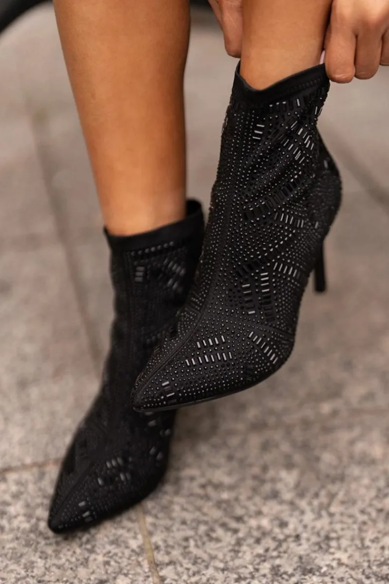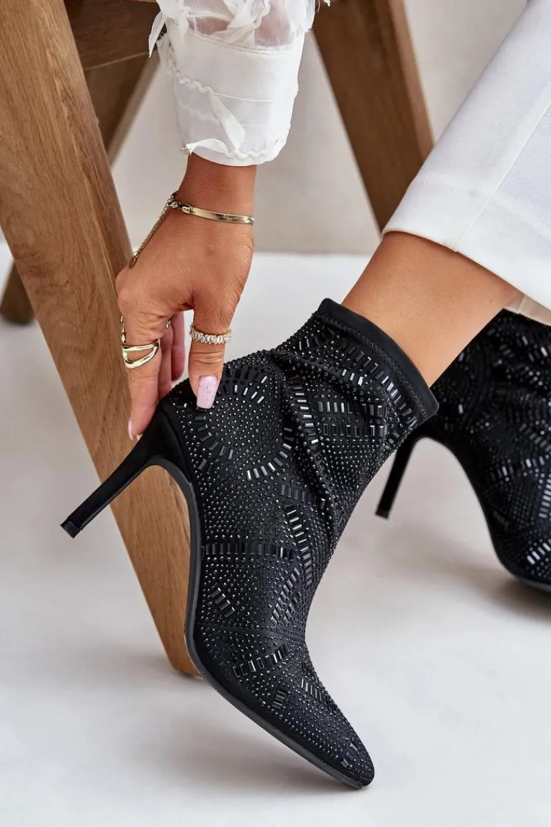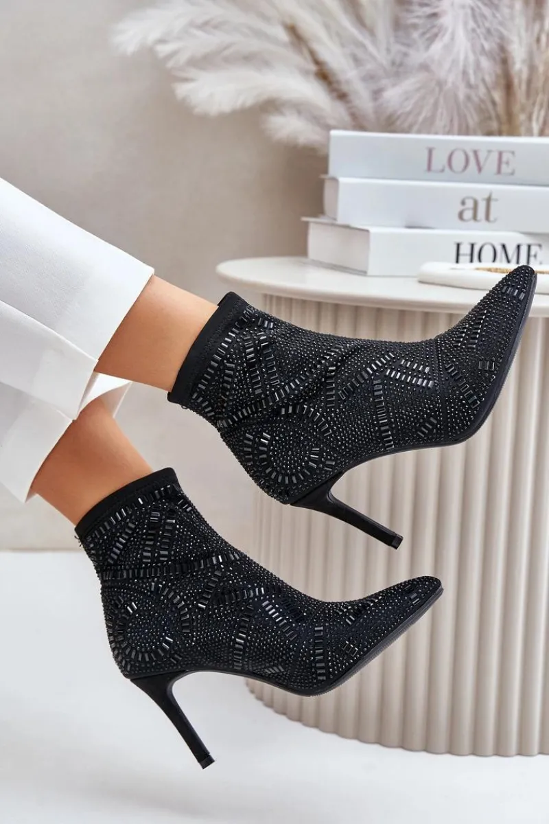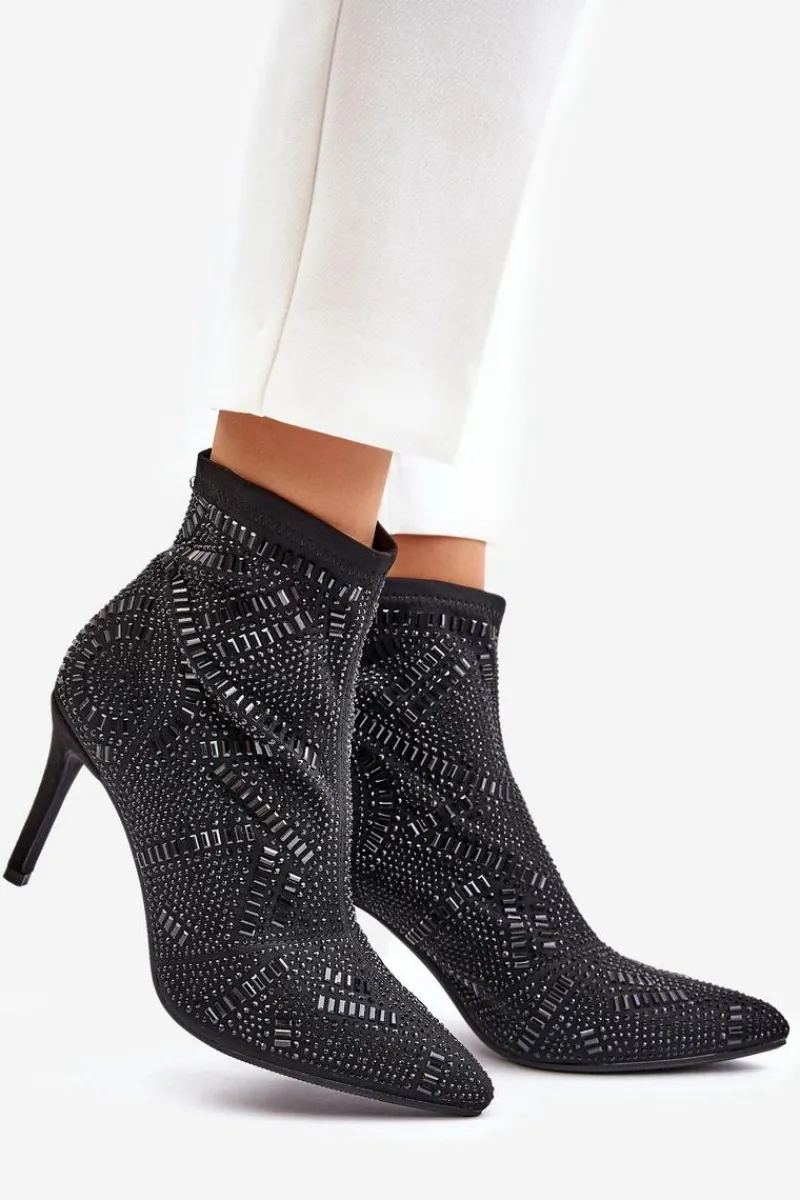 Śliczne botki damskie od marki S.Barski. Głównym atutem tego modelu jest liczne zdobienie na cholewce. Obcas w postaci szpilki. Noski w szpic optycznie wysmuklą nogi. Botki te z pewnością nadają blasku każdej stylizacji. Idealnie sprawdzą się na wieczorne wyjścia! Przy wyborze rozmiaru prosimy sugerować się tabelą rozmiarów.