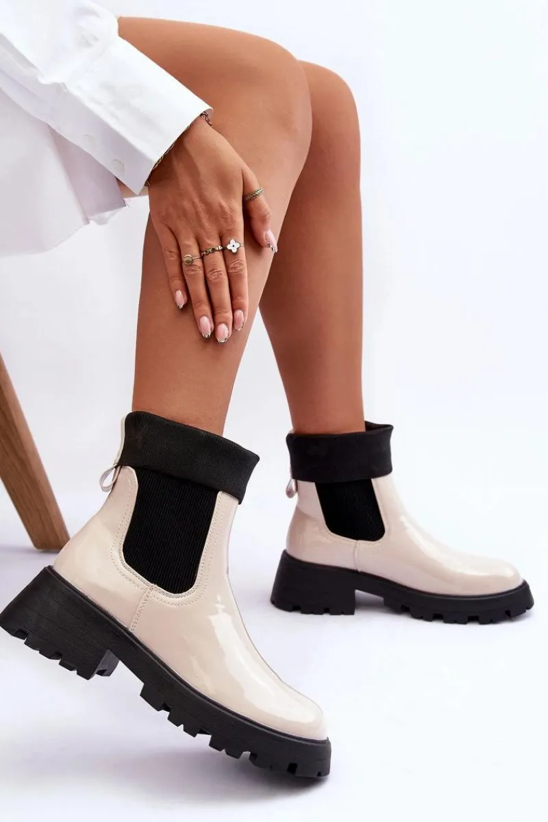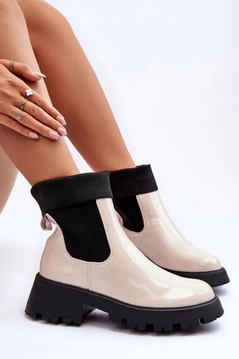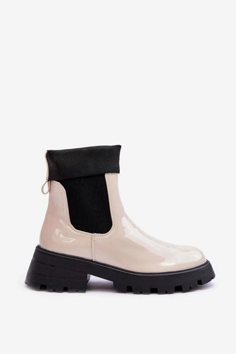 Czarne Botki|Botki Płaskie>Boto Botki Sztyblety Lakierowane Damskie Beżowe Pavo