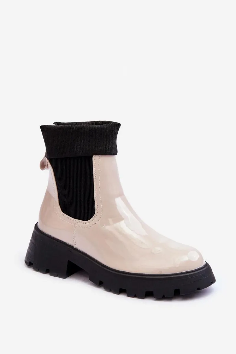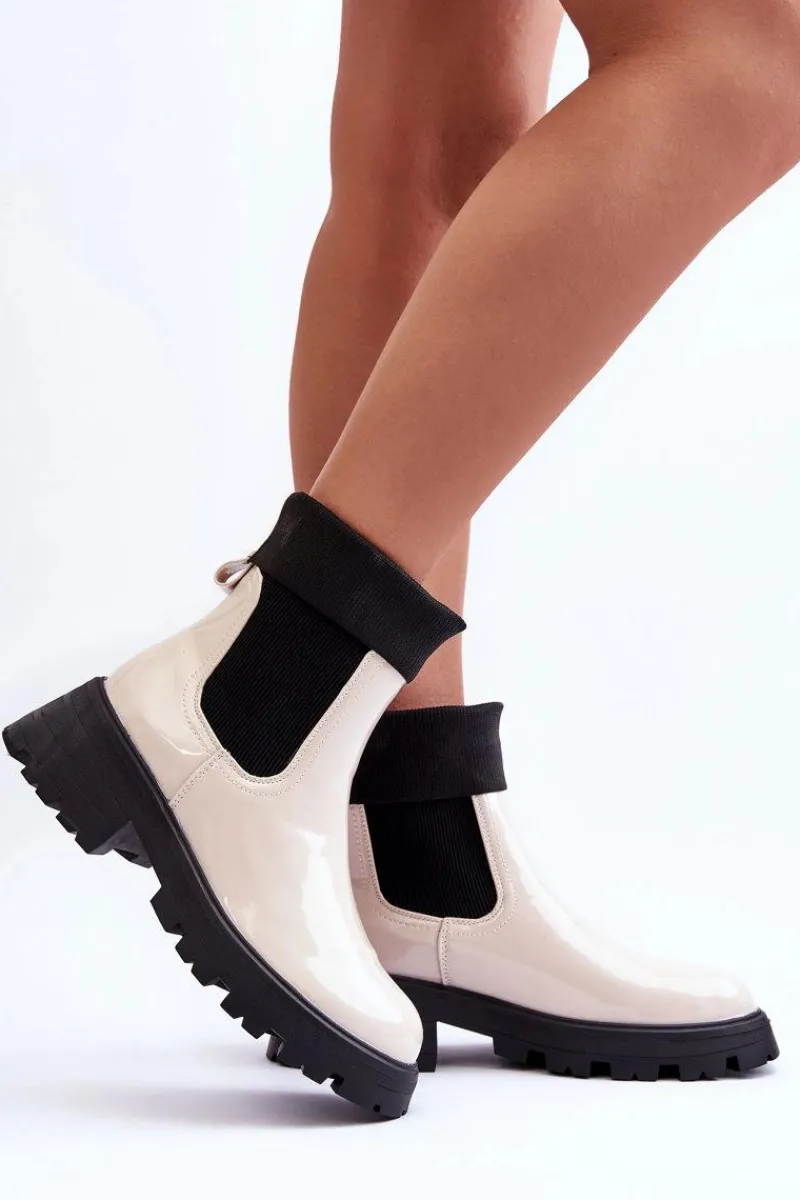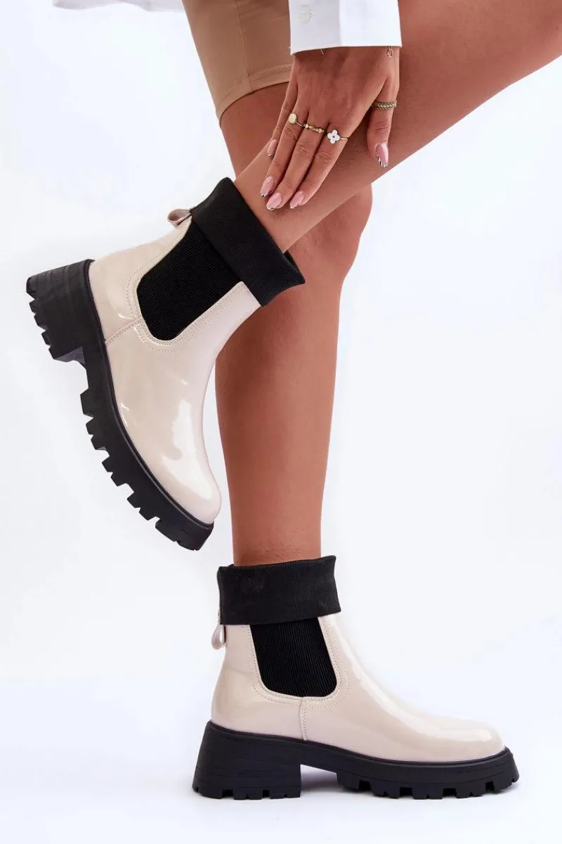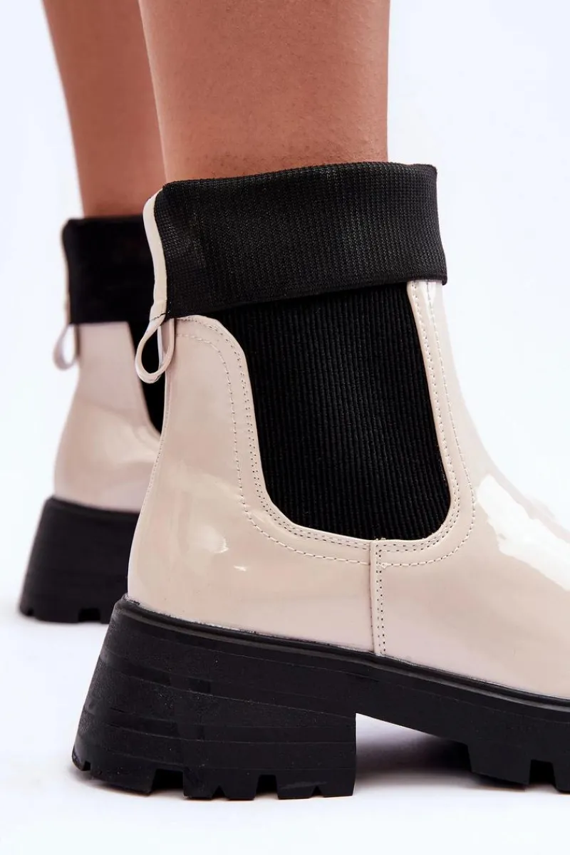 Czarne Botki|Botki Płaskie>Boto Botki Sztyblety Lakierowane Damskie Beżowe Pavo