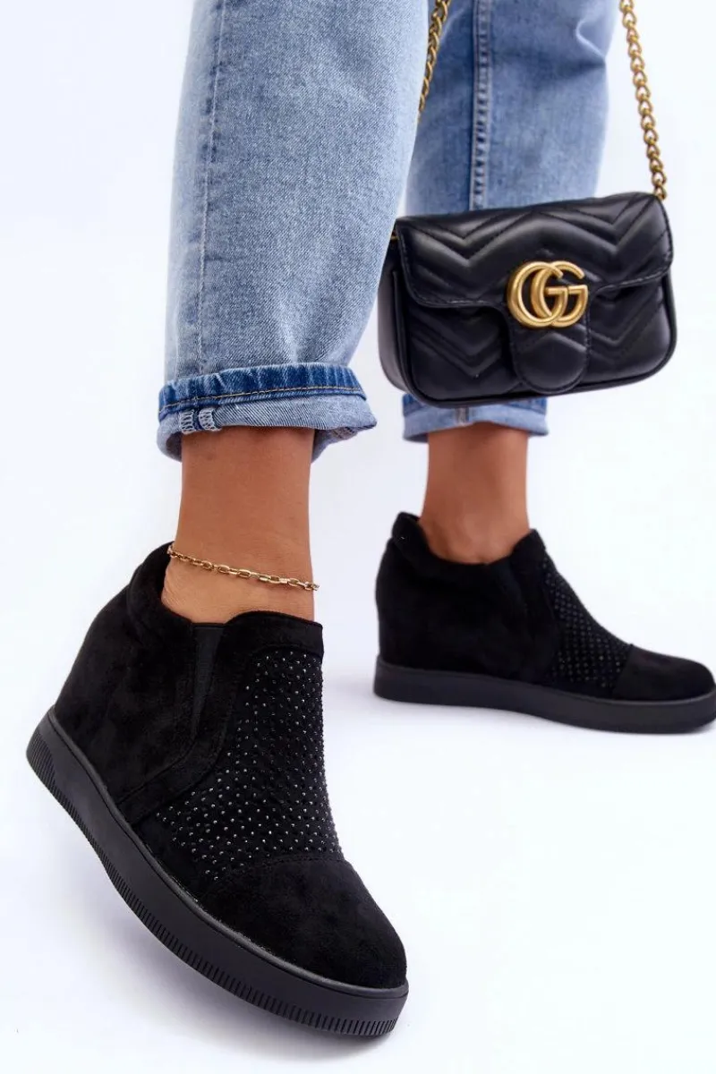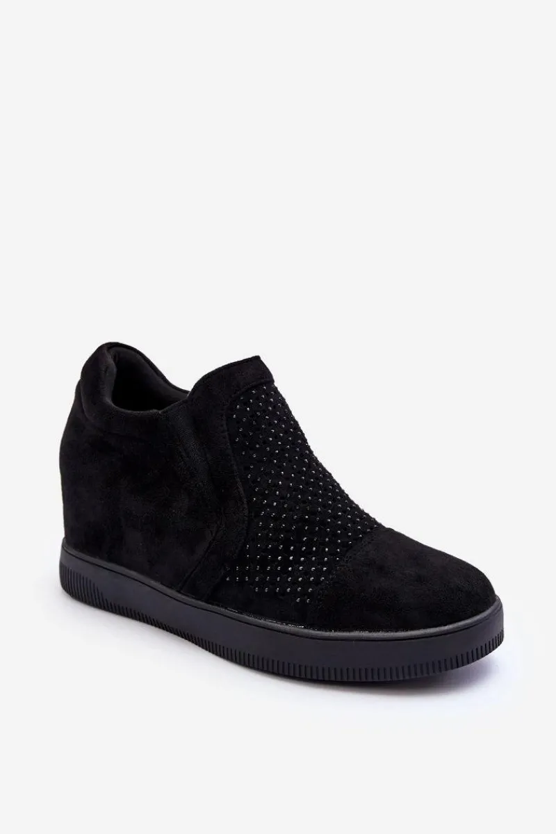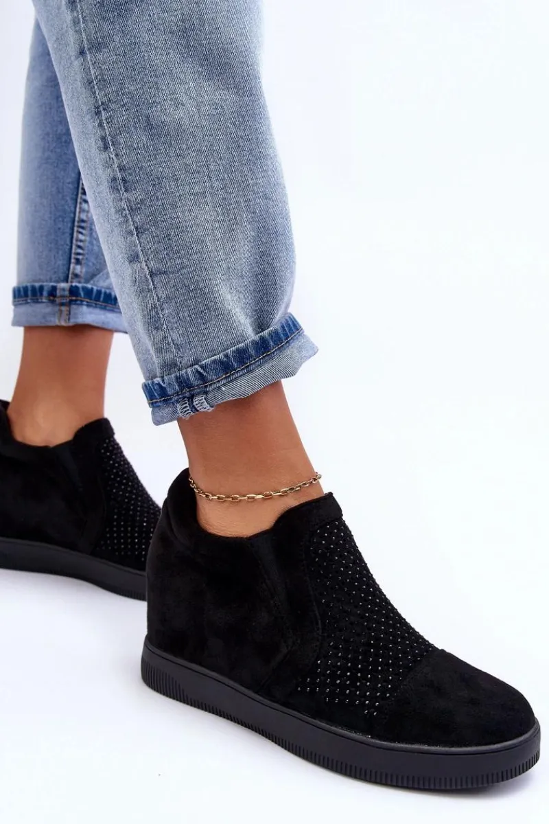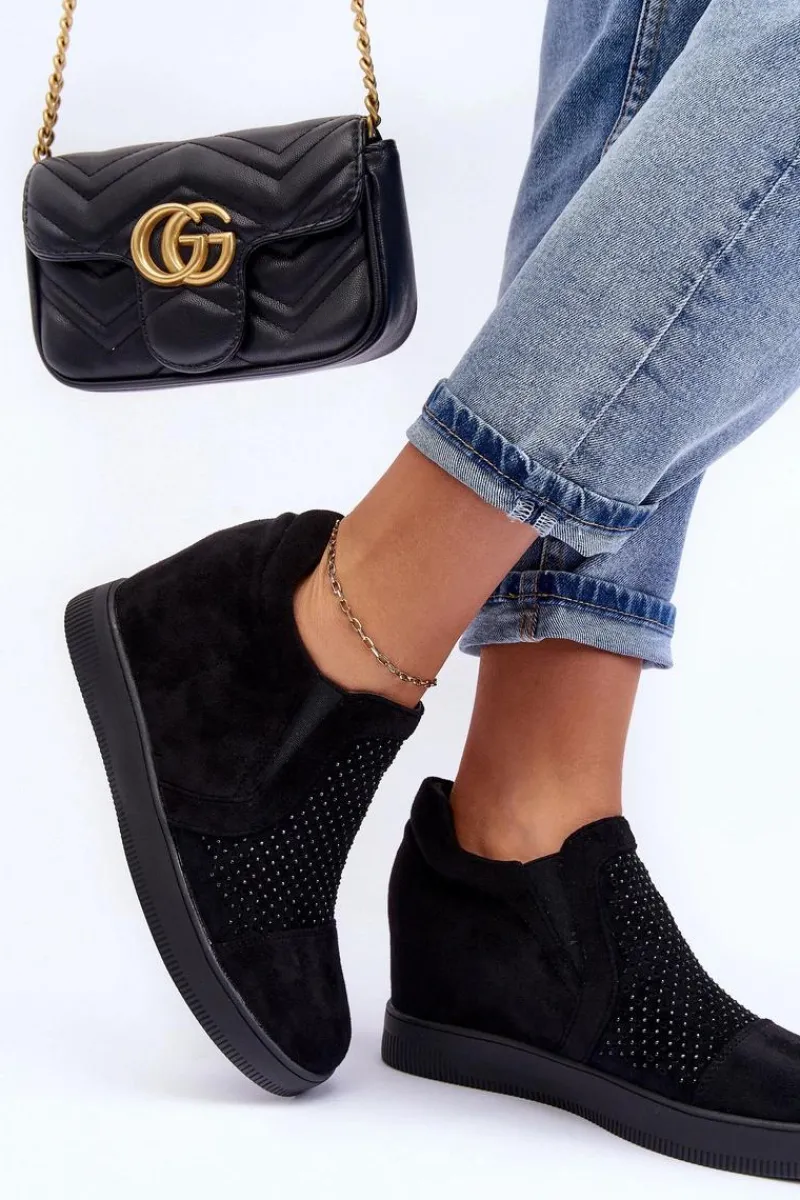 Niskie botki damskie osadzone na płaskiej podeszwie. Wykonane z eko zamszu. Przód ozdobiony małymi dżetami. Noski zaokrąglone, zapiętek usztywniony. Model wsuwany. Miękka eko skórzana wkładka zapewni komfortowe użytkowanie obuwia.