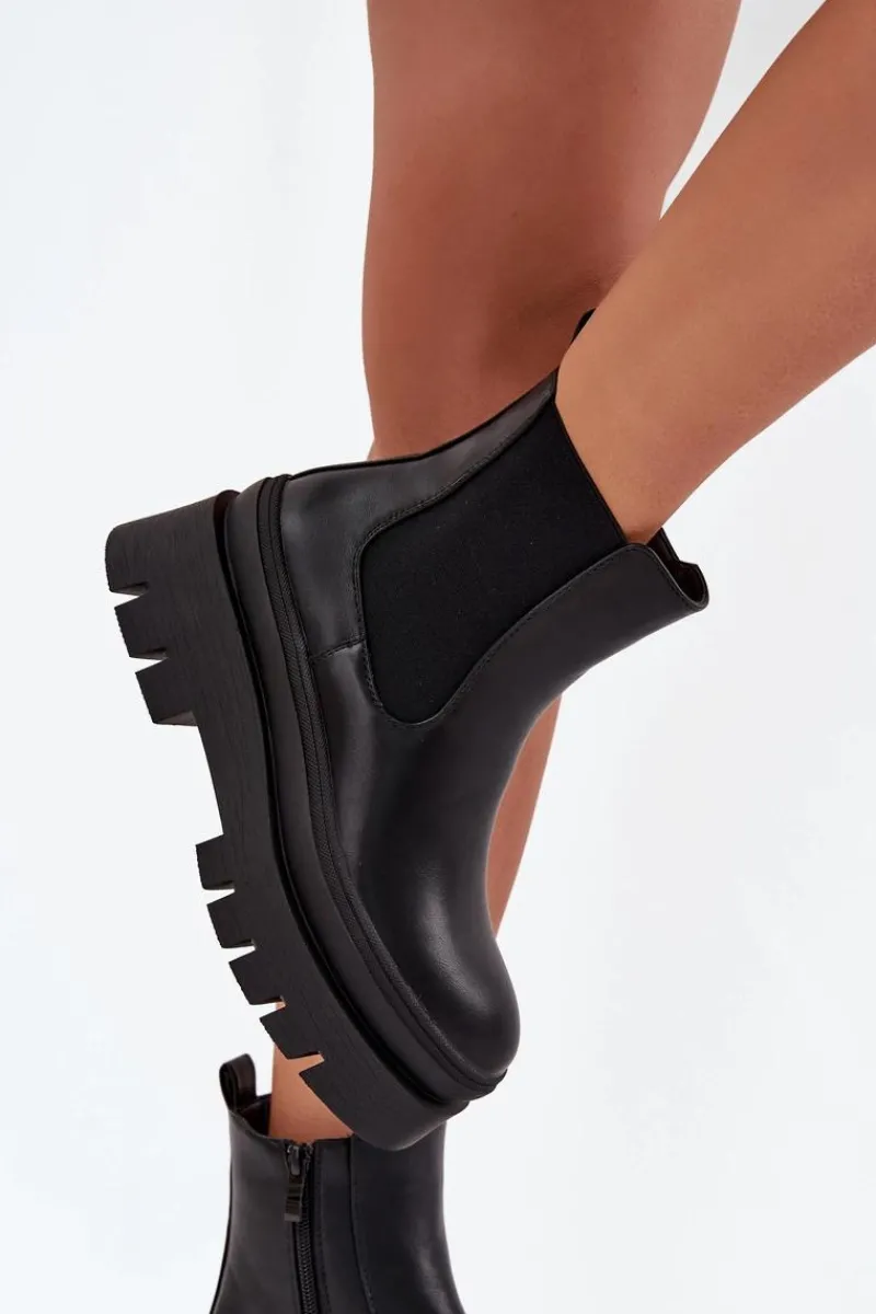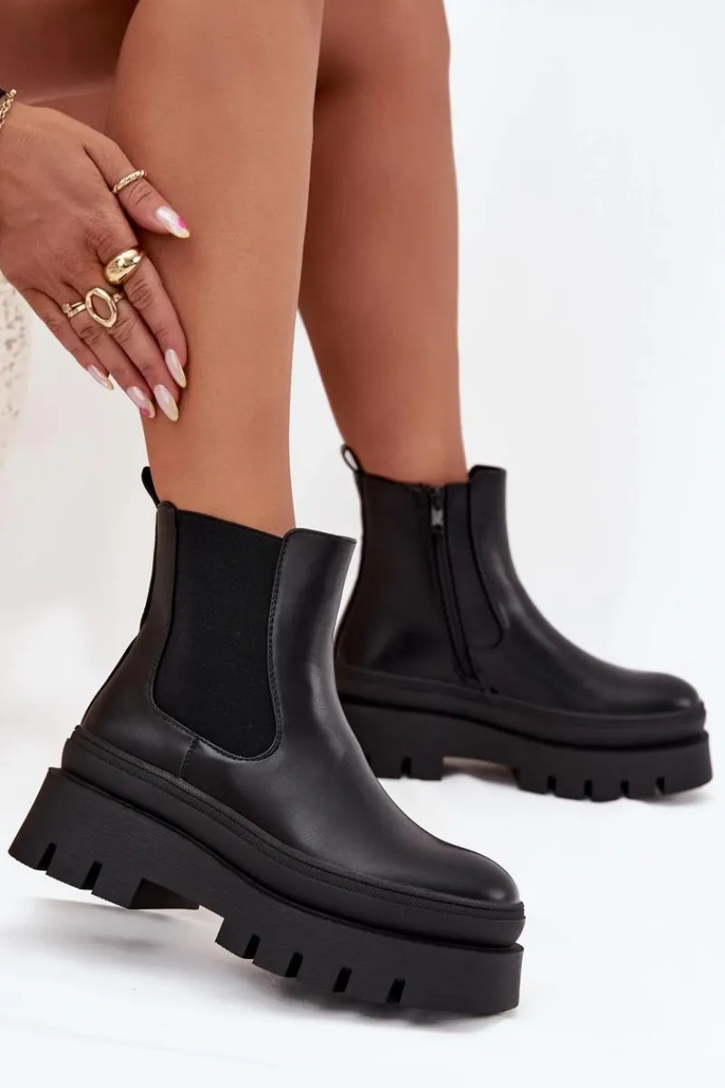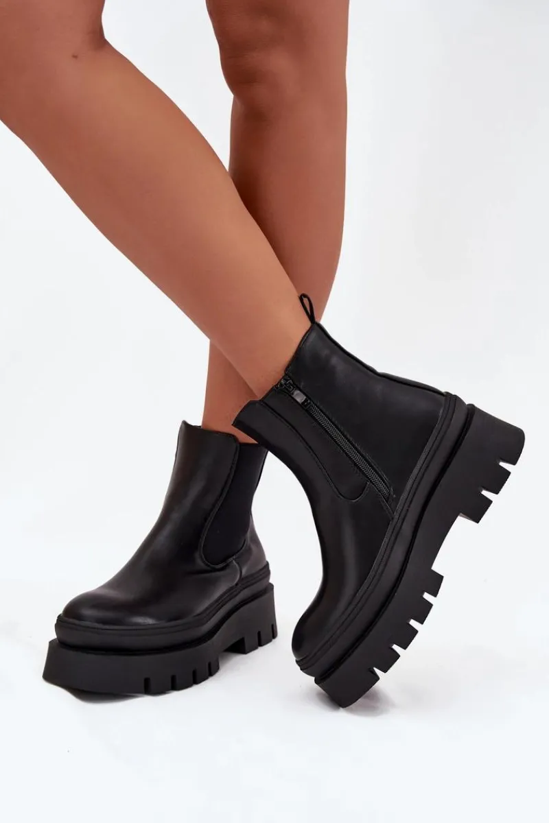 Botki damskie z eko skóry to świetna opcja na chłodniejsze dni! Osadzone na masywnej platformie, zapewniają wygodę i stabilność, a zapinane na zamek ułatwiają zakładanie. Ocieplenie kocem obuwniczym gwarantuje ciepło nawet w mroźne dni. Te botki świetnie łączą modny wygląd z funkcjonalnością, idealne na codzienne wyjścia. Przy wyborze rozmiaru prosimy sugerować się tabelą rozmiarów.