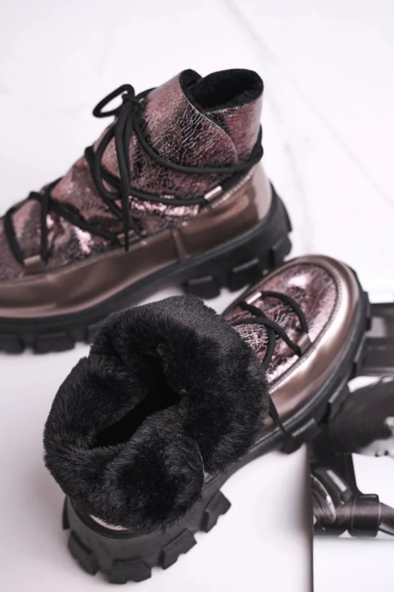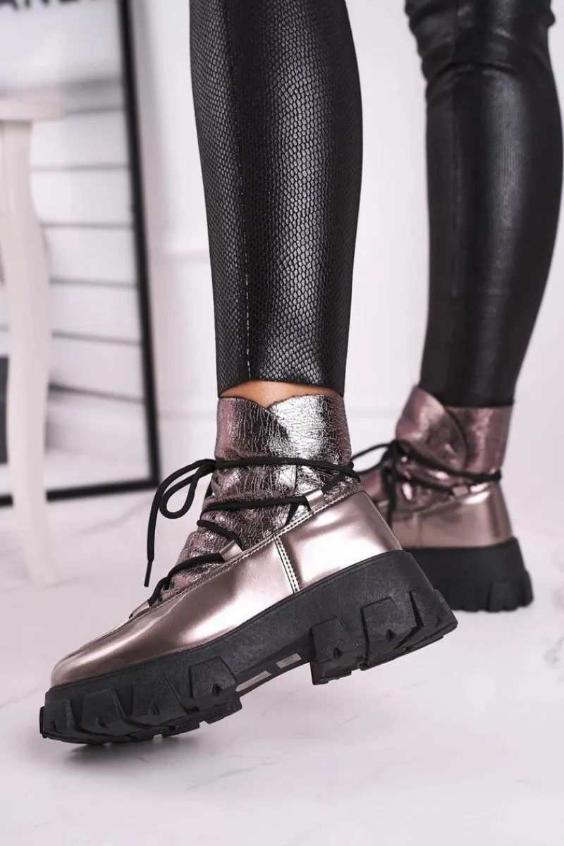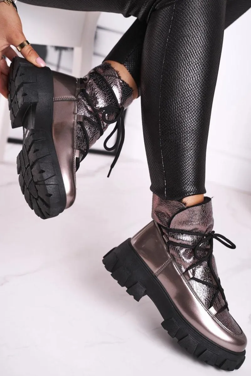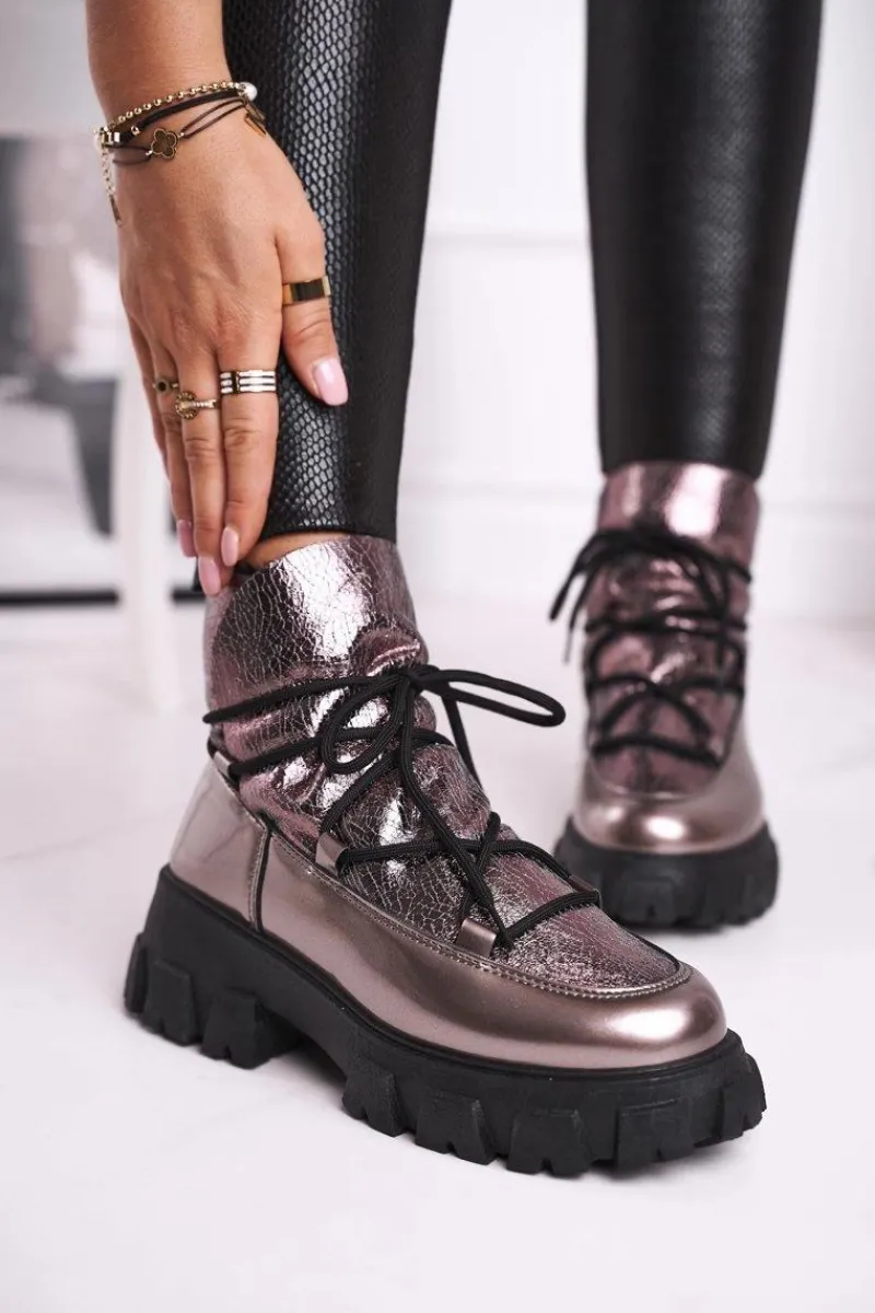 Czarne Botki|Botki Zimowe Damskie>Boto Botki Damskie Wsuwane Rochelle Srebrne