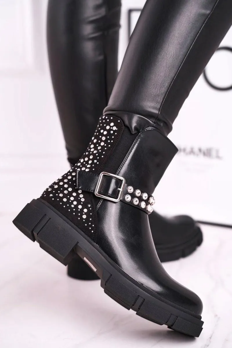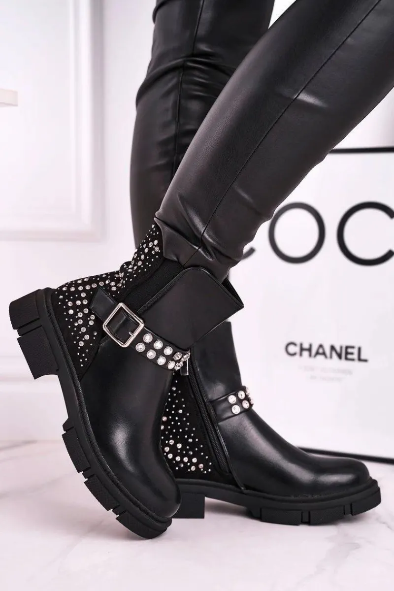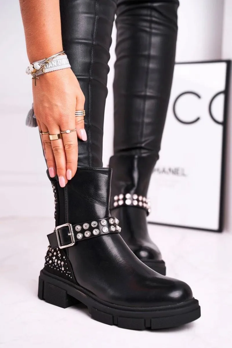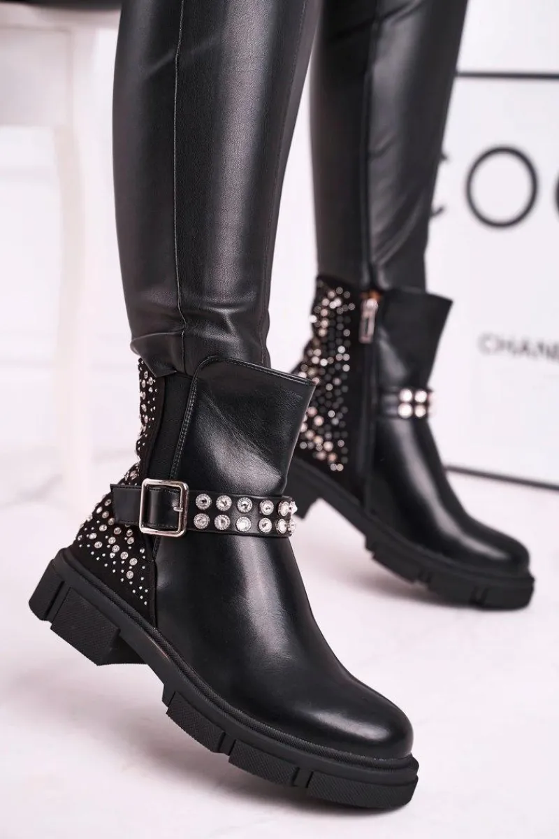 Czarne Botki|Botki Zimowe Damskie>Boto Botki Damskie Z Cyrkoniami Czarne Giuliana