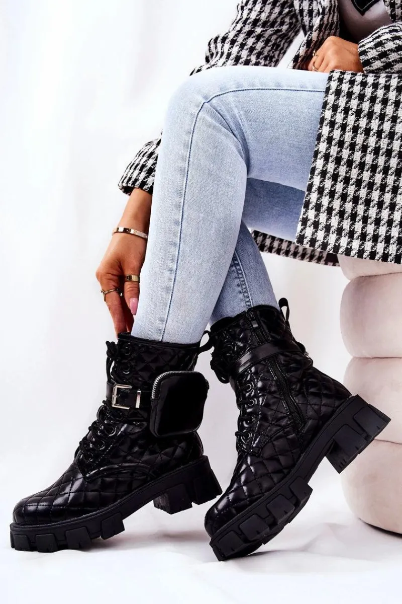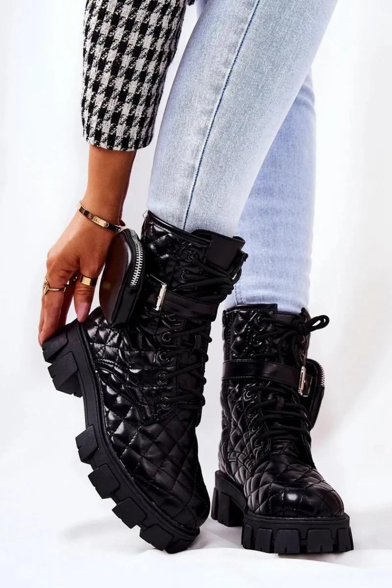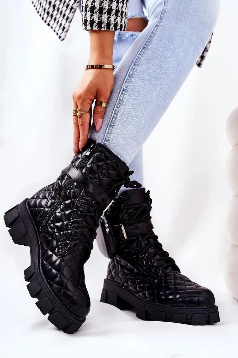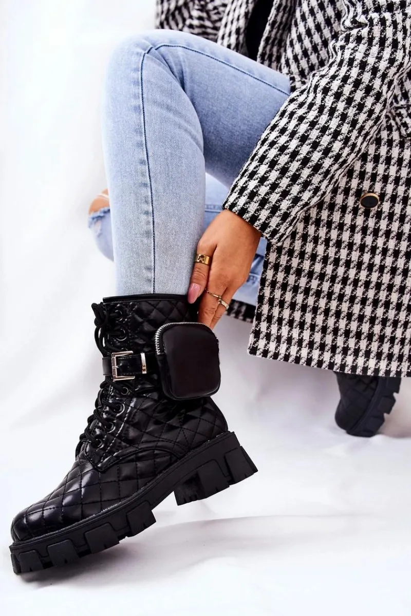 Botki świetnie sprawdzą się podczas tworzenia stylizacji w chłodniejsze dni. Pikowany materiał ze skóry ekologicznej to totalny must have w Twojej garderobie. Idealne do zwiewnych sukienek oraz spodni. Posiadają wiązanie oraz suwak. Dodatkowo do buta jest dołączona nerka zapinana na suwak na regulowanym pasku. Buty są ocieplane kocem obuwniczym. Przy wyborze rozmiaru prosimy sugerować się tabelą rozmiarów.