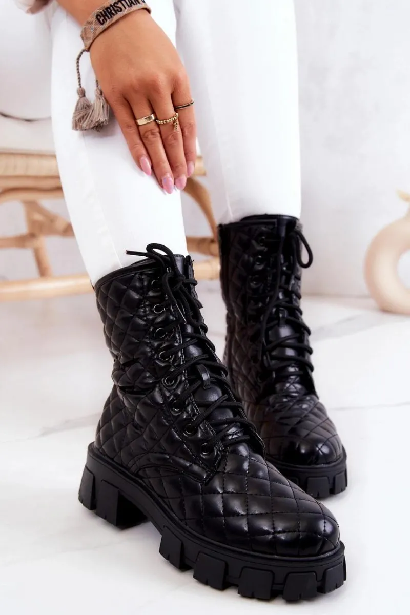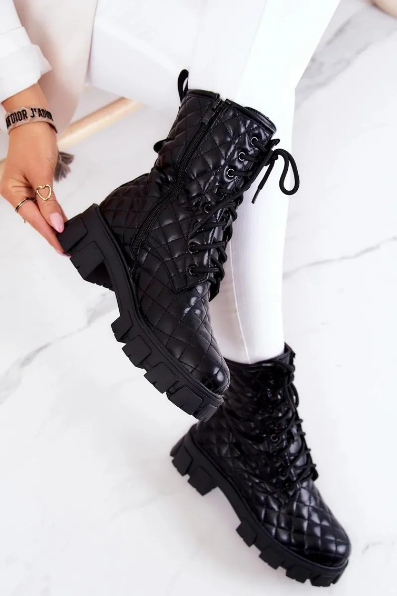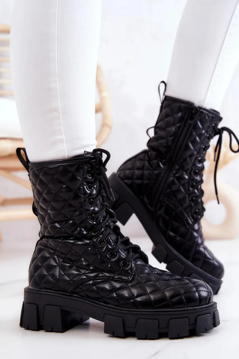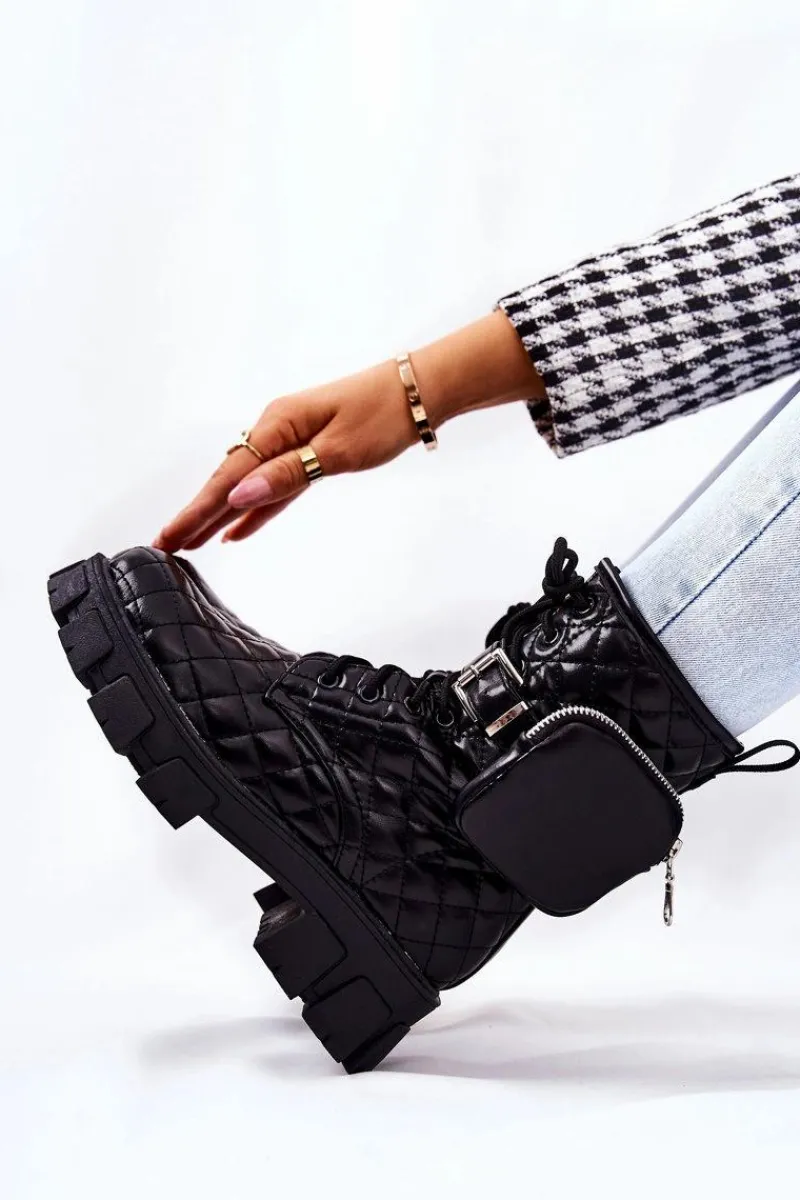 Botki świetnie sprawdzą się podczas tworzenia stylizacji w chłodniejsze dni. Pikowany materiał ze skóry ekologicznej to totalny must have w Twojej garderobie. Idealne do zwiewnych sukienek oraz spodni. Posiadają wiązanie oraz suwak. Dodatkowo do buta jest dołączona nerka zapinana na suwak na regulowanym pasku. Buty są ocieplane kocem obuwniczym. Przy wyborze rozmiaru prosimy sugerować się tabelą rozmiarów.