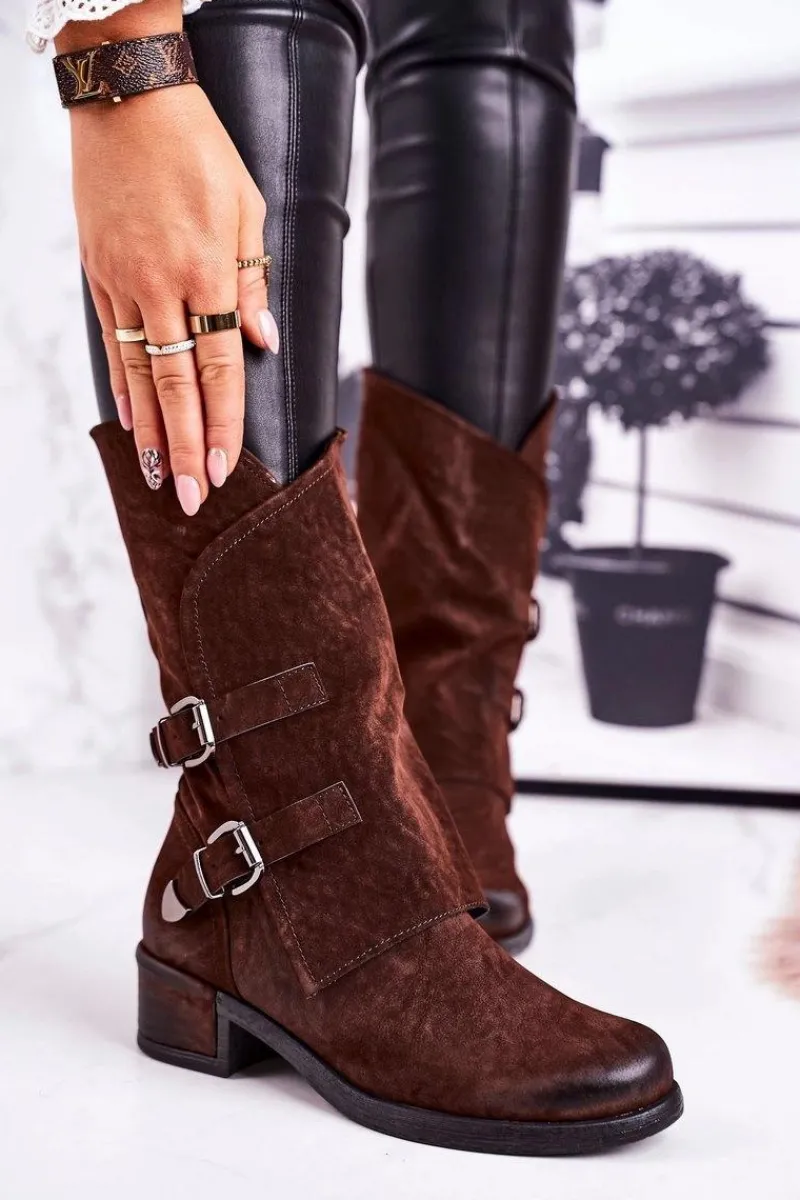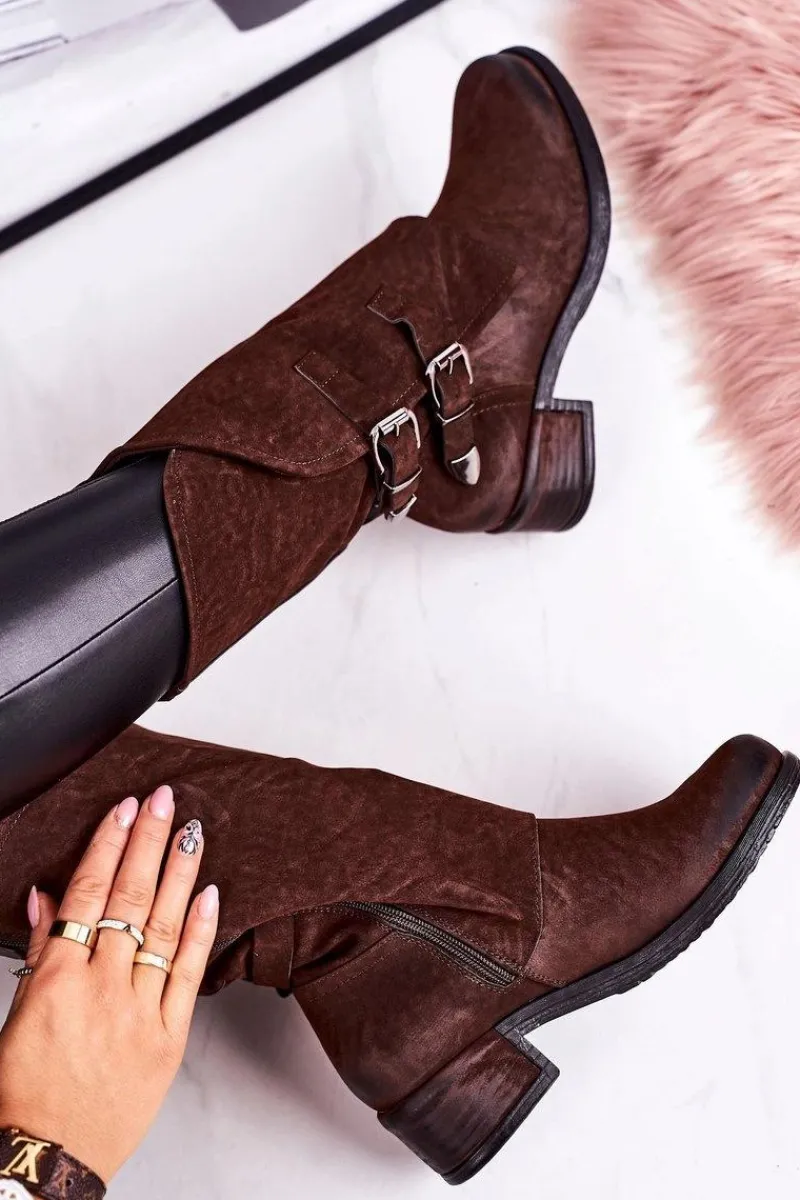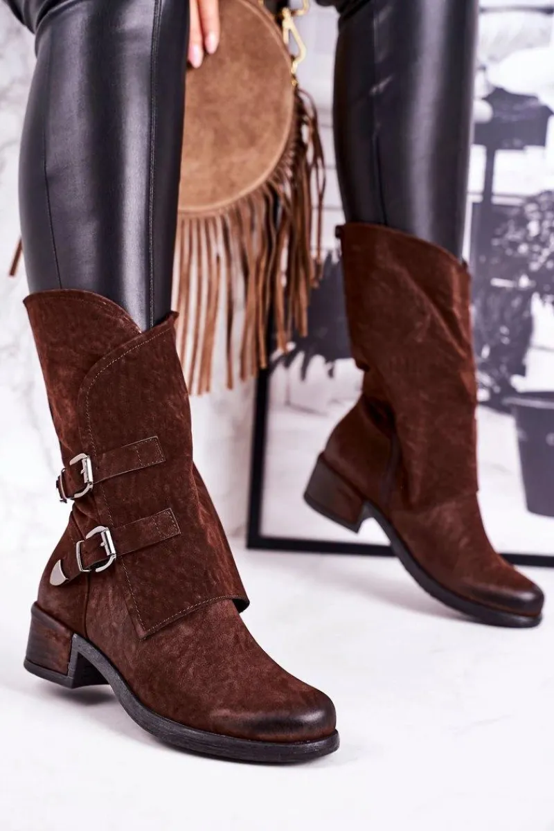 Czarne Botki|Botki Zimowe Damskie>Boto Damskie Ocieplane Botki Z Klamrami Brązowe Cassidy