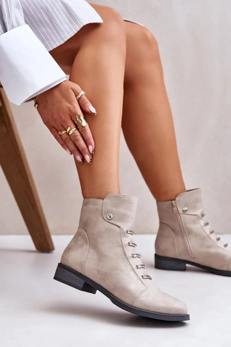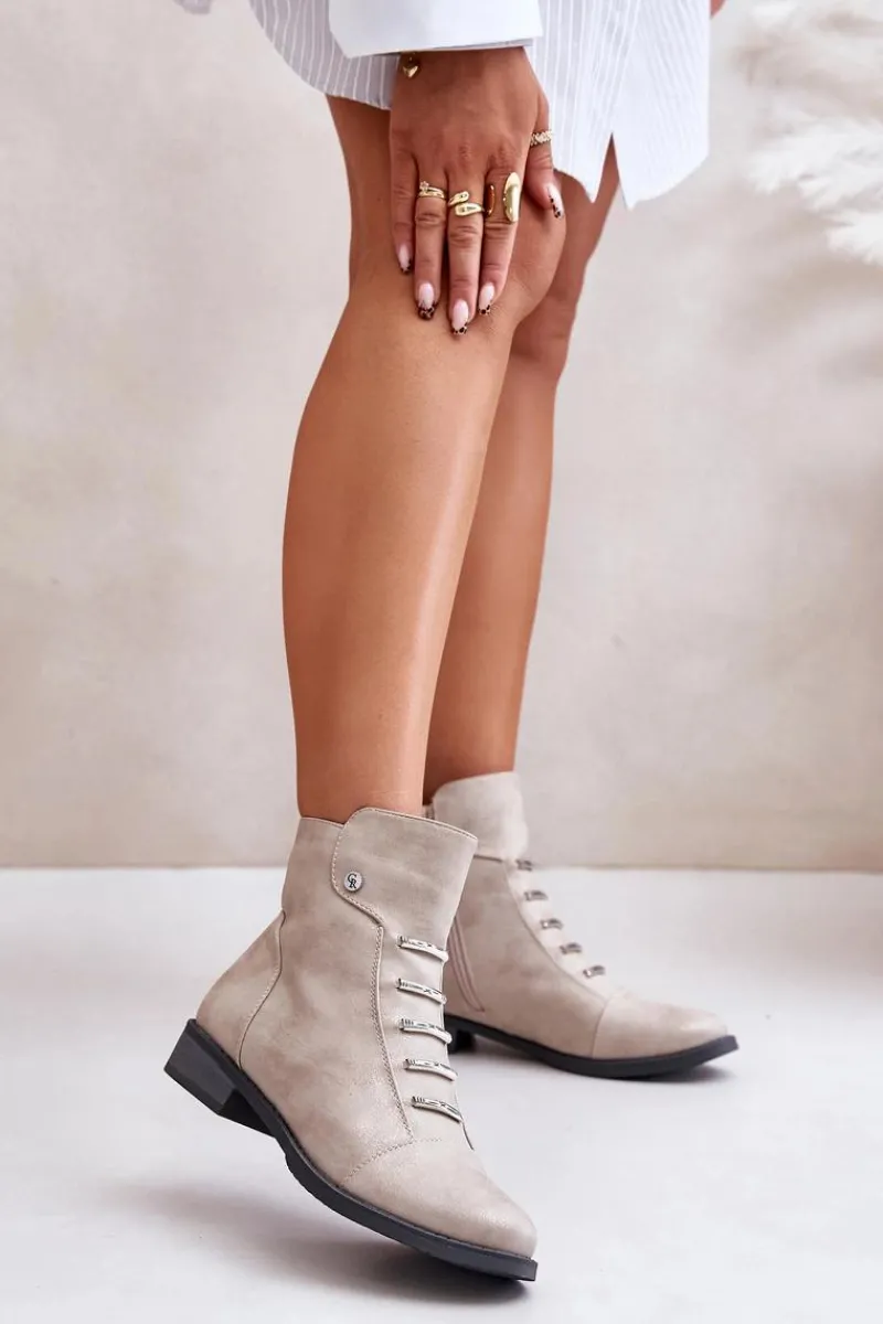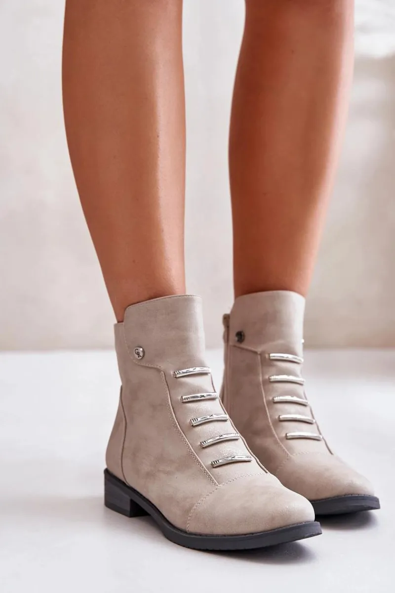 Botki marki Jezzi wykonane z eko skóry, które łączą styl z wygodą. Osadzone na płaskim obcasie, z zaokrąglonymi noskami, zapewniają komfort noszenia na co dzień. Model zapinany na zamek, co ułatwia zakładanie i zdejmowanie. Wnętrze ocieplane kocem obuwniczym, idealne na chłodniejsze dni. Te botki to świetny wybór na jesienne i zimowe stylizacje.Przy wyborze rozmiaru prosimy sugerować się tabelą rozmiarów.