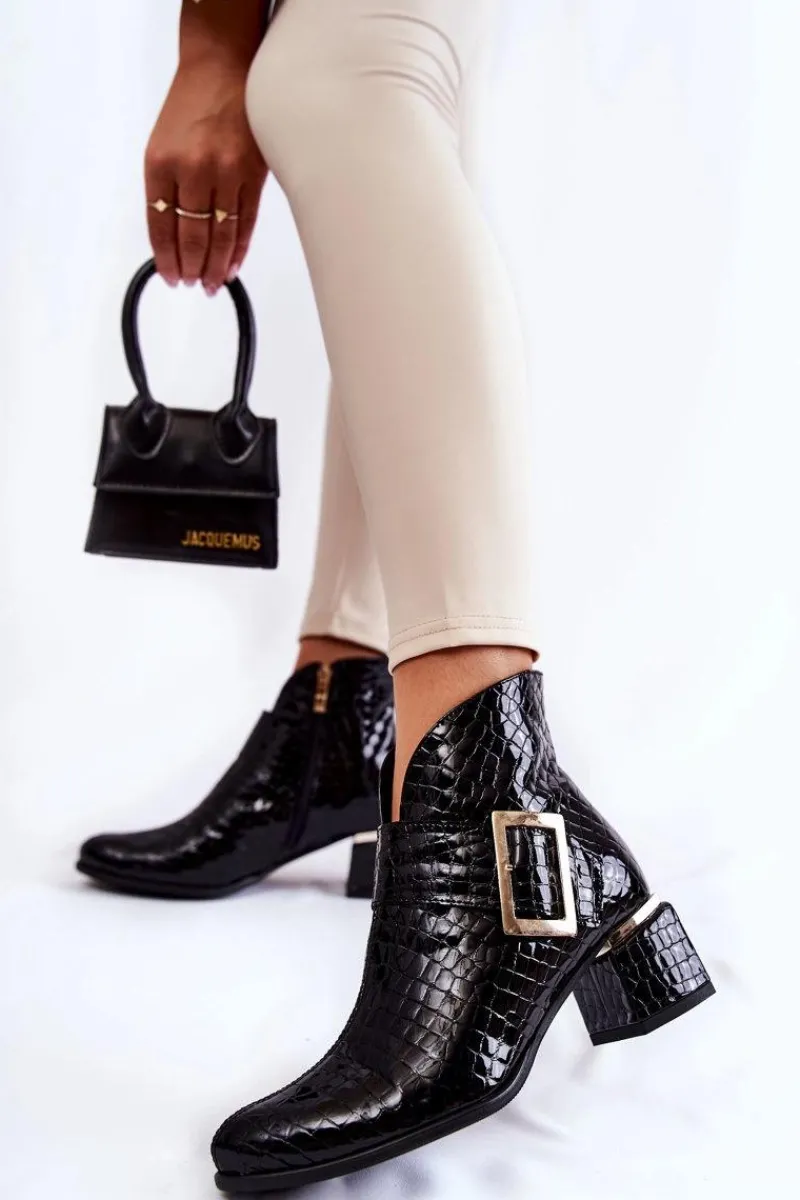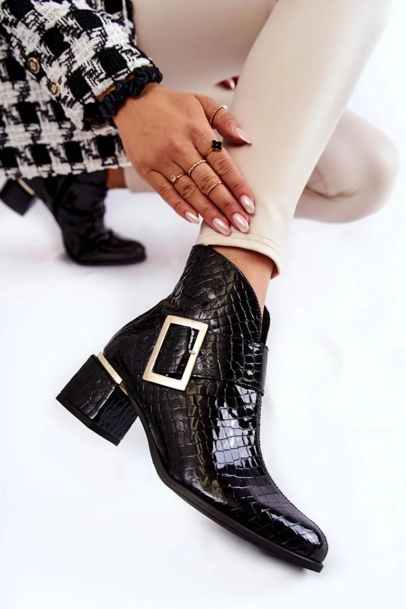 Botki damskie zostały wykonane z wysokiej jakości naturalnej skóry. Model został osadzony na niskim obcasie w postaci klocka. Botki są zapinane na zamek błyskawiczny. Posiadają ozdobną klamrę. Wewnątrz zostały ocieplone kocem obuwniczym. Ten model to idealny wybór na jesienne, chłodne dni. Powinnaś go mieć! Przy wyborze rozmiaru prosimy sugerować się tabelą rozmiarów.