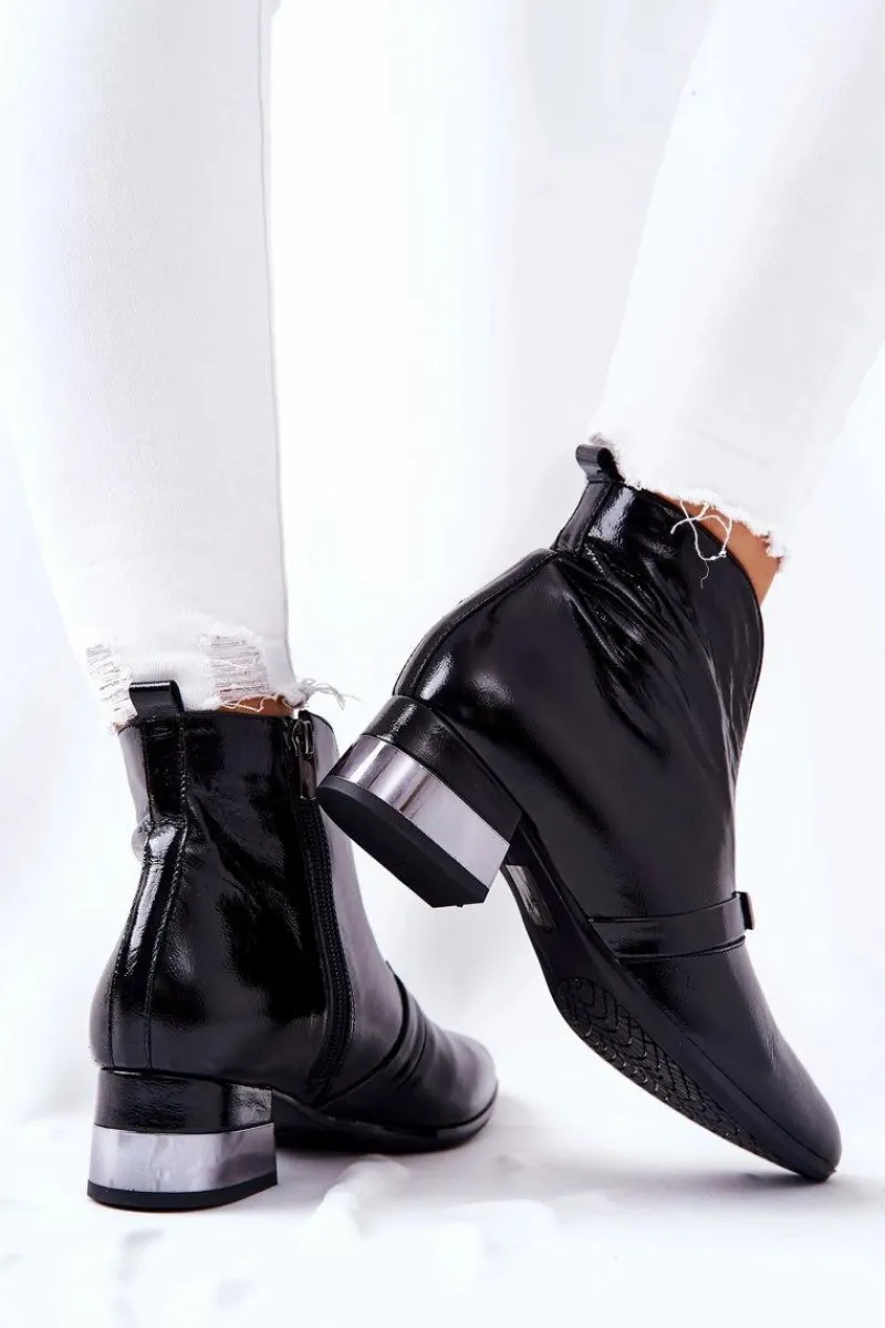 Piękne botki wyglądają rewelacyjnie w połączeniu z sukienkami czy spódniczkami. Zostały wykonane z naturalnej skóry. Posiadają suwak oraz szeroki obcas. Nie może ich zabraknąć w Twojej szafie! Przy wyborze rozmiaru prosimy sugerować się tabelą rozmiarów.