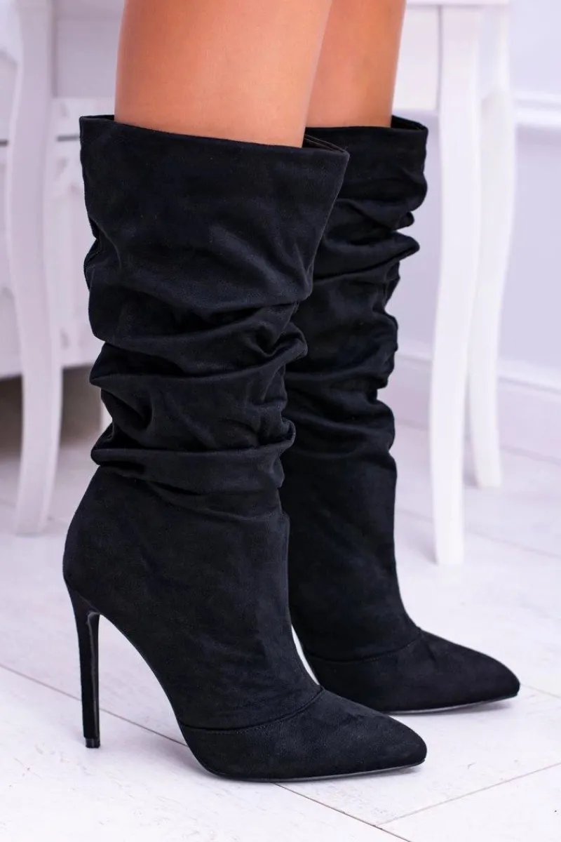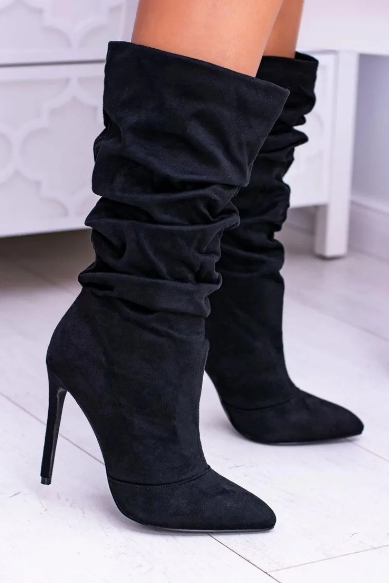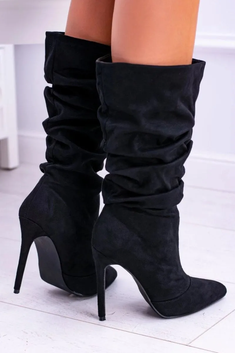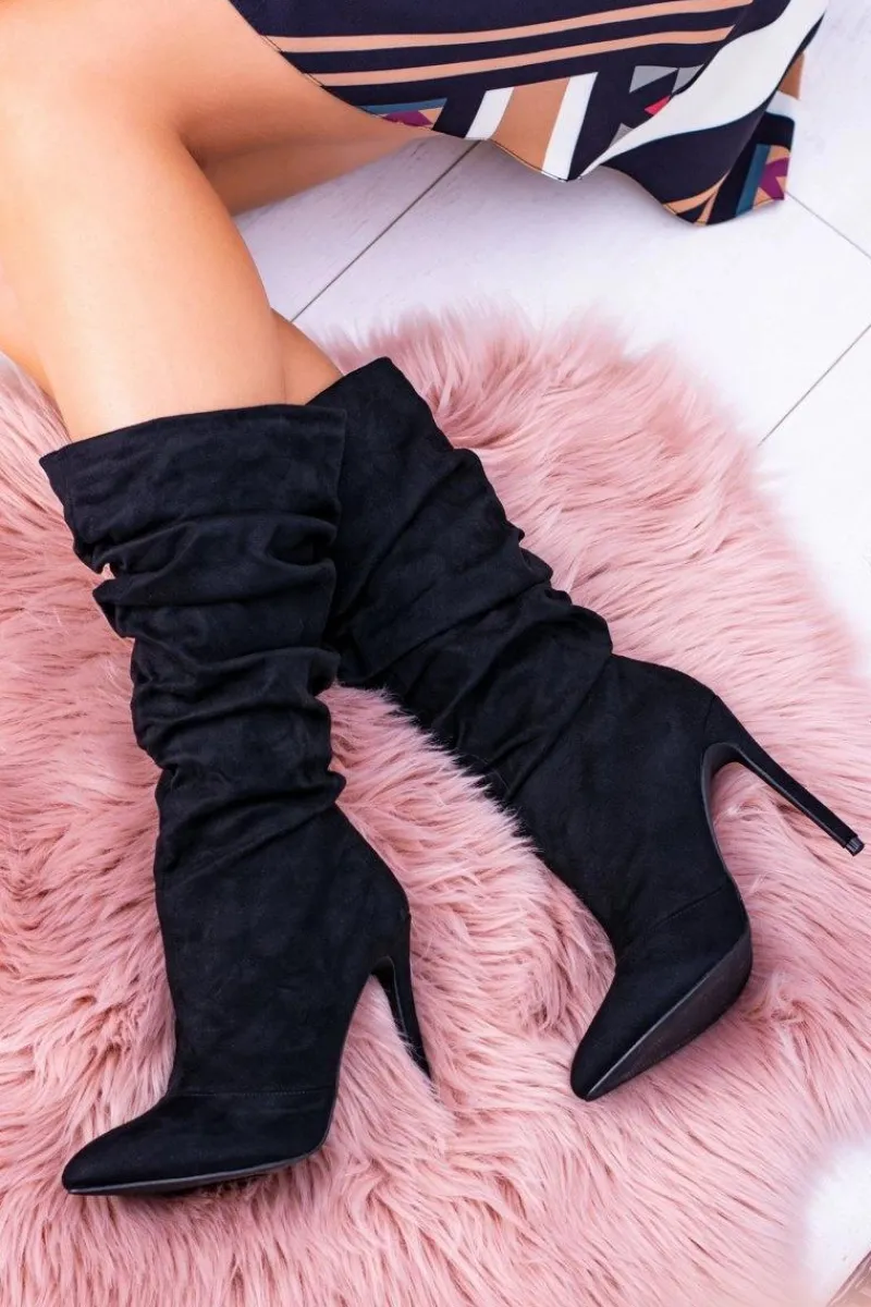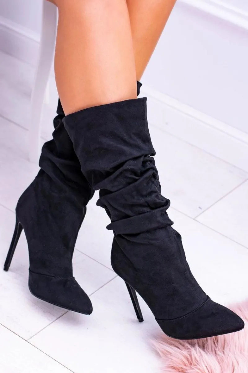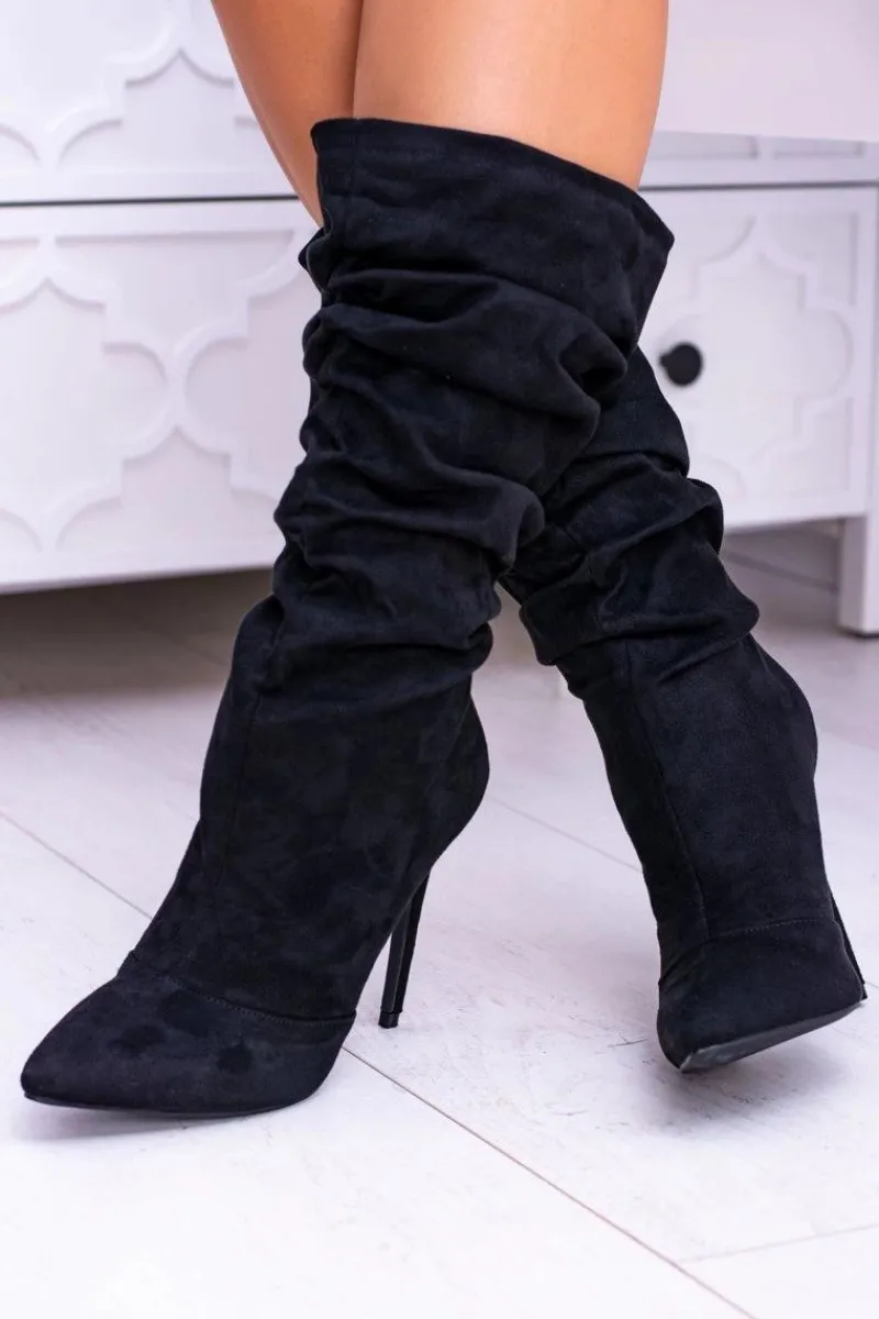 Czarne Botki>Boto Lu Boo Czarne Wysokie Zamszowe Botki na Szpilce Bellisario