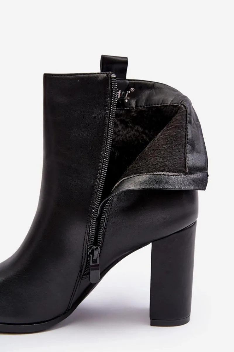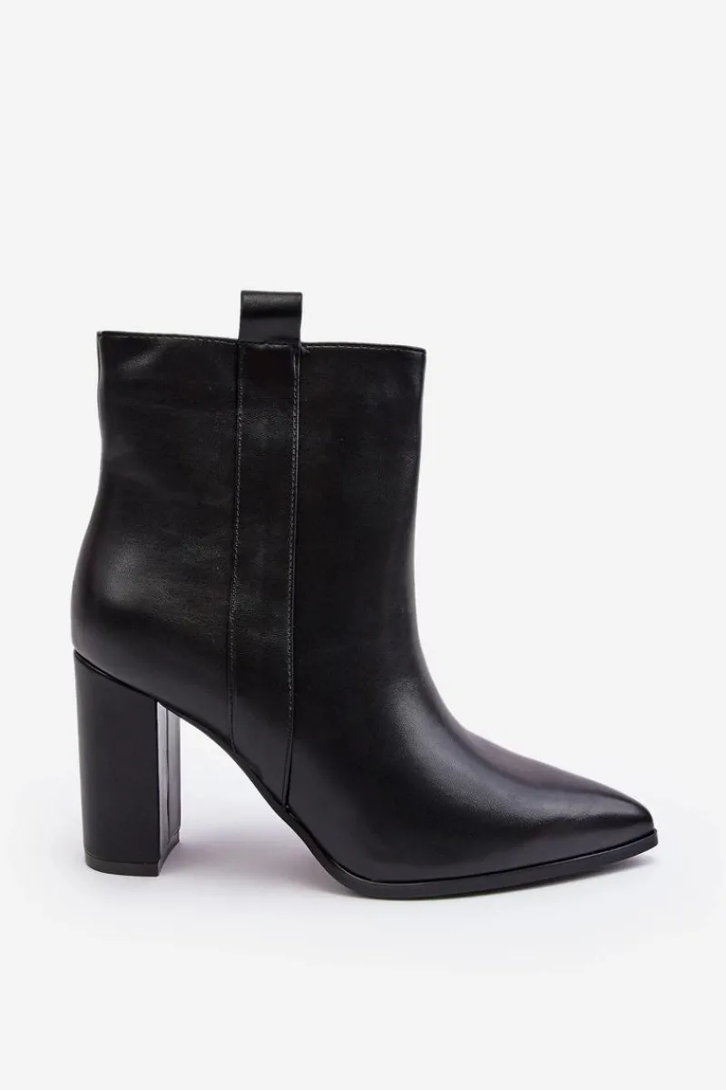 Botki damskie wykonane z eko skóry. Ocieplone kocem obuwniczym. Obcas w postaci stabilnego słupka. Noski w szpic optycznie wysmuklą nogi. Cholewka zapinana suwakiem z boku. Idealne do wielu stylizacji np.: do sukienek, spódnic czy spodni. Te botki koniecznie powinny znaleźć się w Twojej szafie! Przy wyborze rozmiaru prosimy sugerować się tabelą rozmiarów.