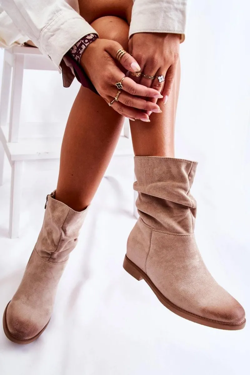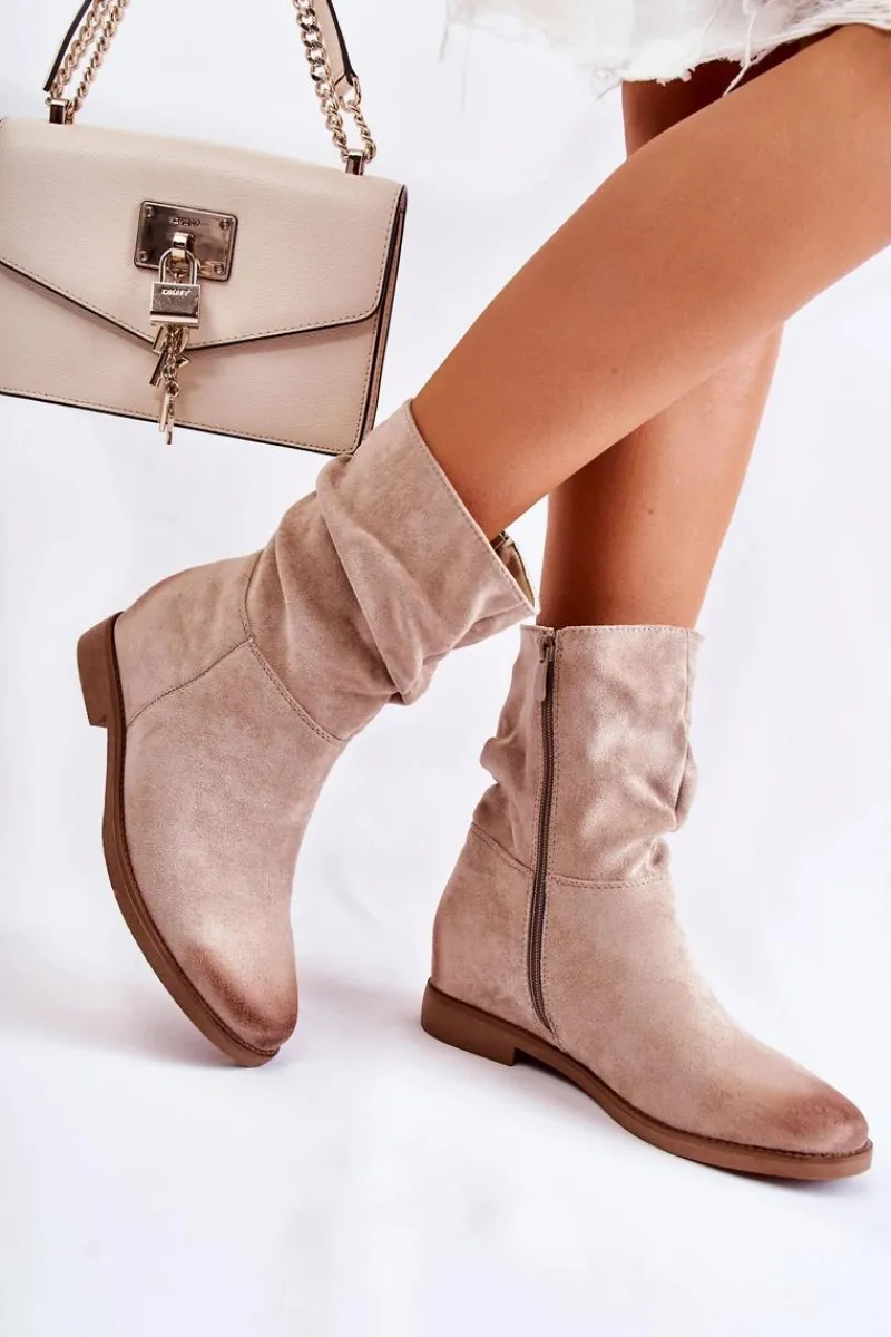 Botki damskie posiadają wysoką, lekko marszczoną cholewkę za kostkę. Zamykane na suwak. Wykonane z przyjemnego w dotyku eko zamszu. Wkładka została wykonana z tkaniny. Zapiętek usztywniany. Na nosku oraz z tyłu cholewki znajdują się modne przetarcia. Idealne na sezon wiosenno-jesienny. Model ten będzie świetnie prezentował się z jeansami czy zwiewną spódnicą. Przy wyborze rozmiaru prosimy sugerować się tabelą rozmiarów.
