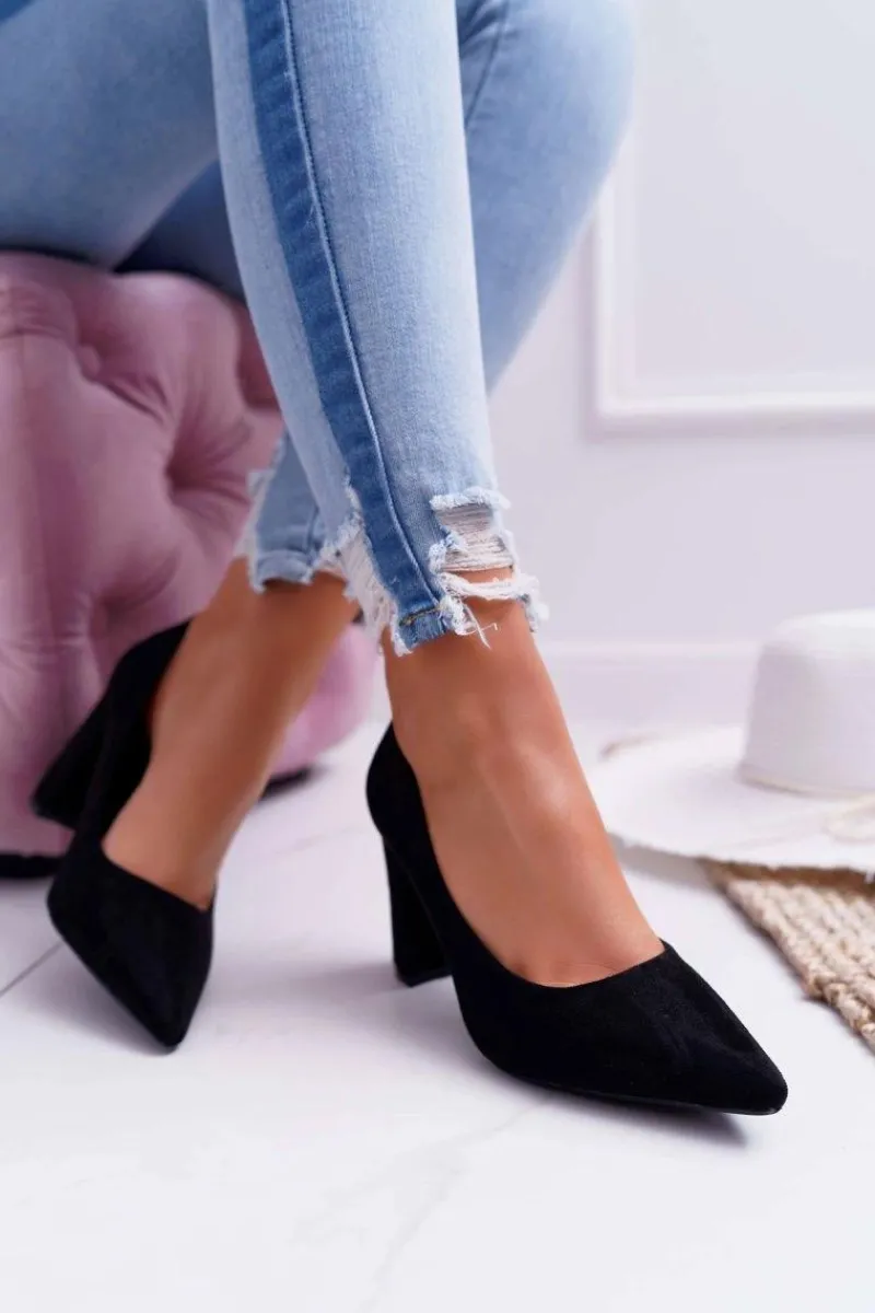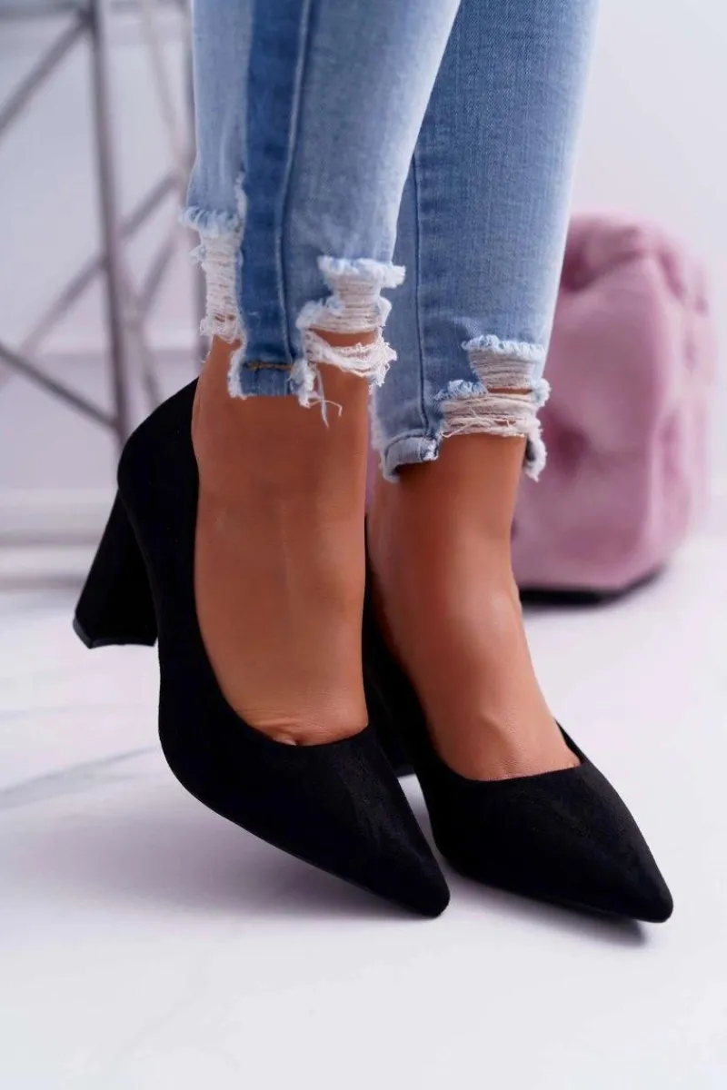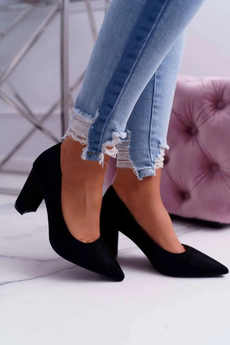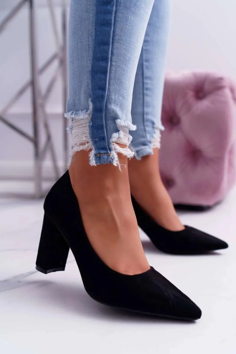Czółenka Damskie Na Słupku Zamszowe Czarne Eriela Damskie Czółenka Zamszowe|Czółenka Na Słupku
