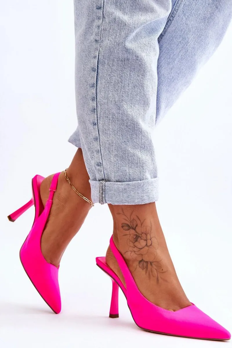 Szpilki powinny znaleźć się w szafie każdej kobiety. Model ten świetnie sprawdzi się zarówno do sukienek, jak i szerokich, eleganckich spodni. Szpilki z noskiem w szpic optycznie wysmuklą nogi. Model ten jest wsuwany z gumką pozwalającą na odpowiednie dopasowanie obuwia. Miękka wkładka wykonana została z eko skóry, natomiast cholewka z materiału tekstylnego. Przy wyborze rozmiaru prosimy sugerować się tabelą rozmiarów.