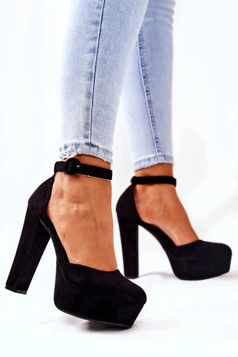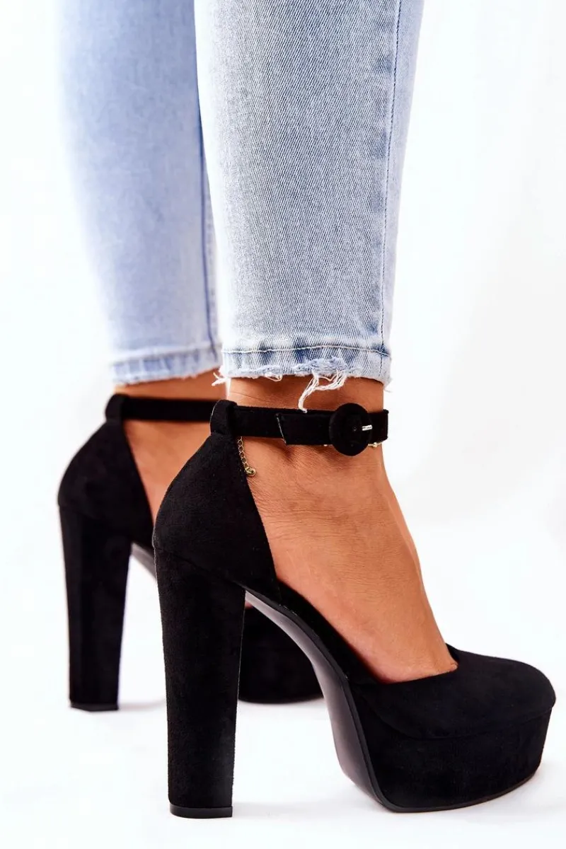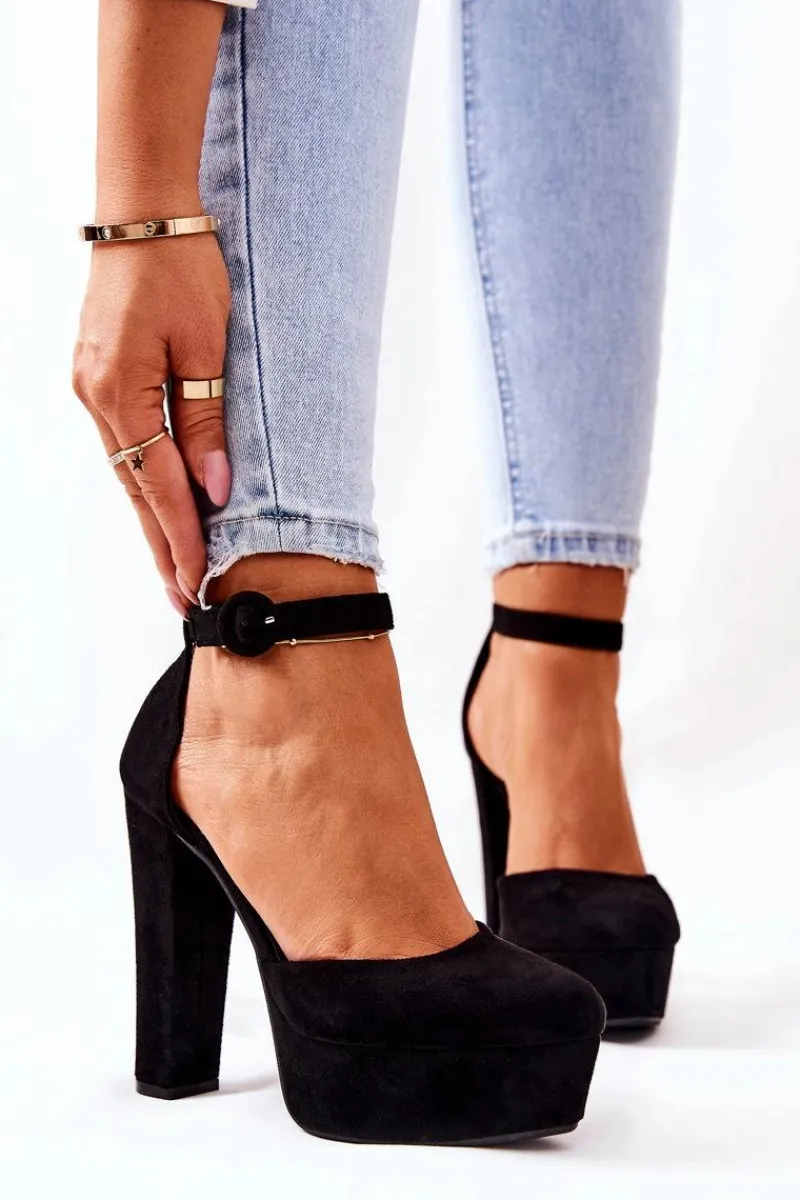 Czółenka zostały wykonane z eko skóry zamszowej. Wysoki obcas oraz platforma uniesie delikatnie sylwetkę. Miękka wkładka wykonana z eko skóry zapewnia komfort i wygodę podczas użytkowania. Czółenka zapinane na sprzączkę z regulowanym paskiem. Koniecznie sprawdź także pozostałe nasze czółenka! Przy wyborze rozmiaru prosimy kierować się tabelą rozmiarów