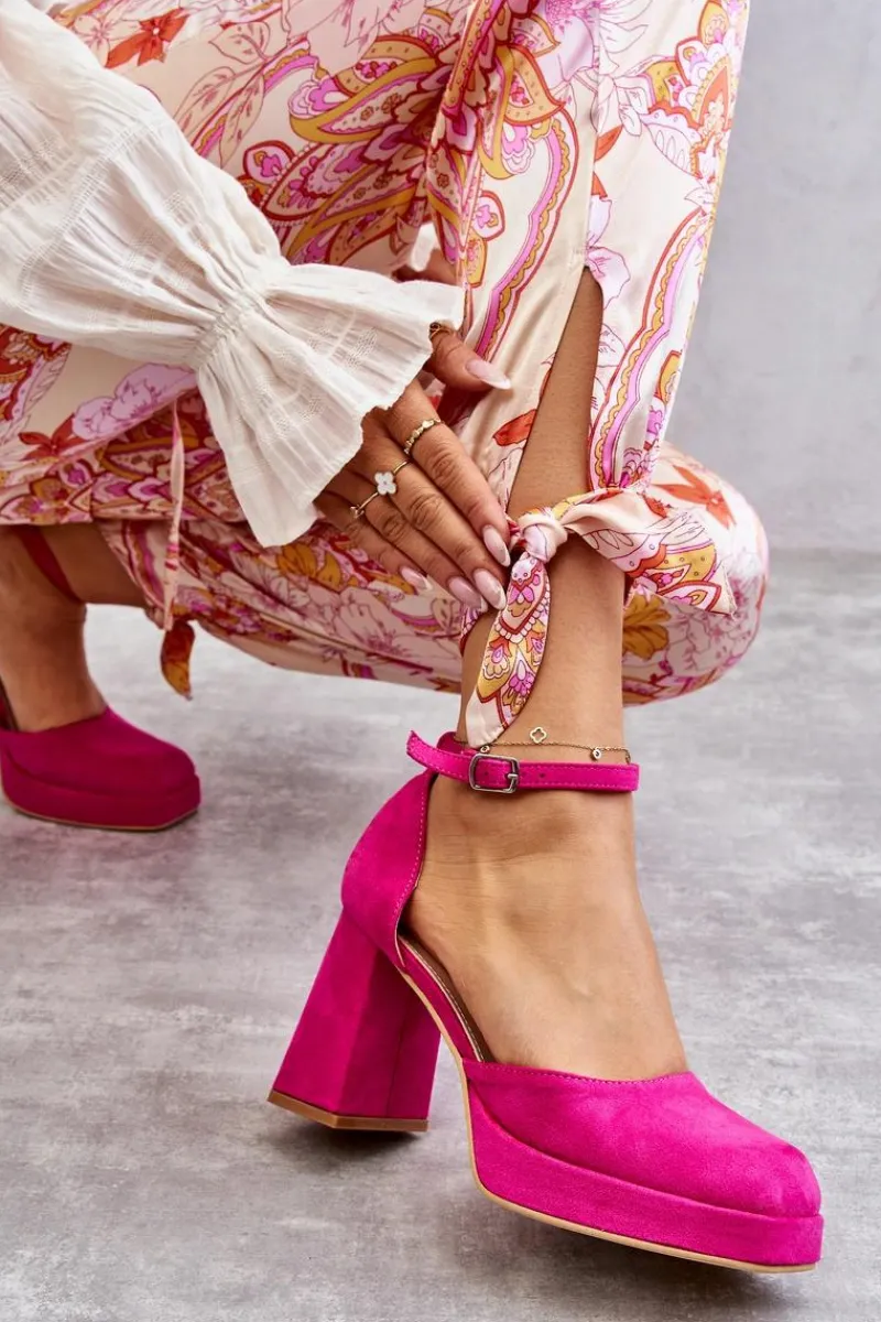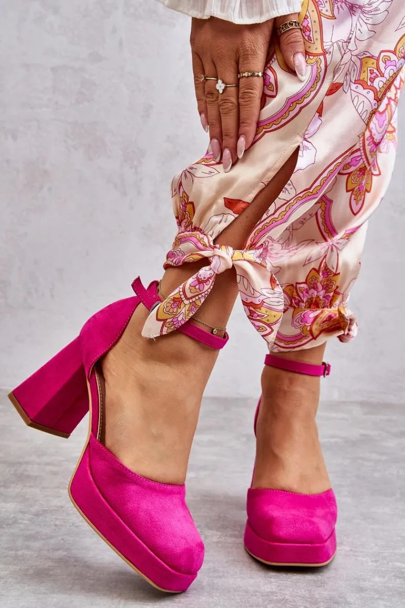 Wyjątkowe czółenka wykonane z wysokiej jakości eko skóry. Posiadają regulowany pasek zapinany na sprzączkę. Osadzone na masywnym, wyższym obcasie w postaci klocka. Zapiętek jest usztywniany, a nosek kwadratowy. Miękka wkładka z eko skóry zapewni wygodę podczas użytkowania. Dodatkowo buty posiadają delikatną platformę. Przy wyborze rozmiaru prosimy sugerować się tabelą rozmiarów.