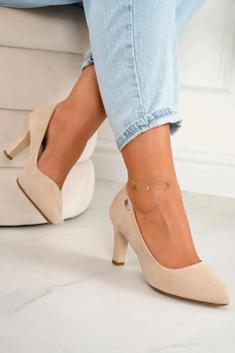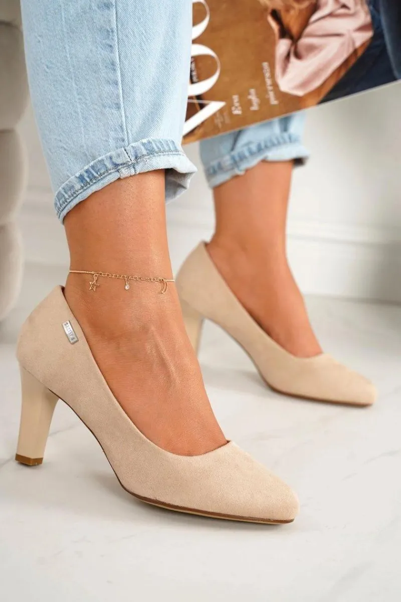 Czółenka Na Słupku>Boto Klasyczne Czółenka Na Słupku Zamszowe Beżowe Eleanor