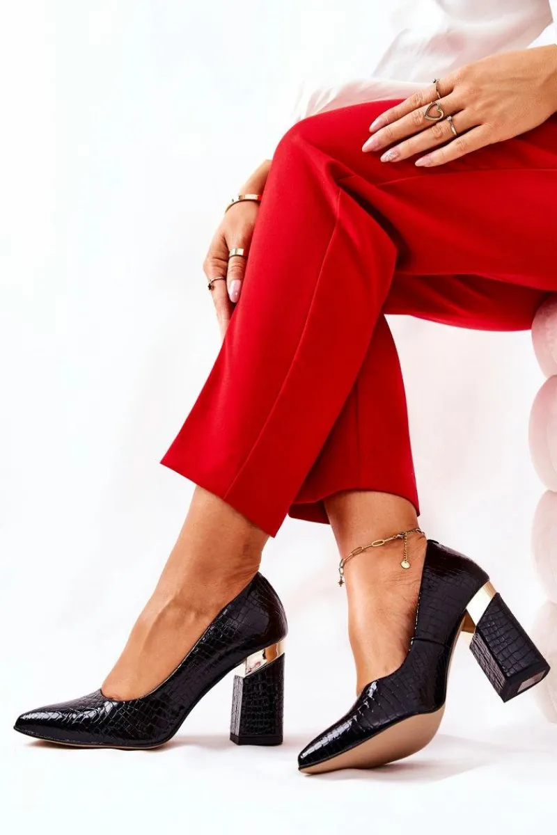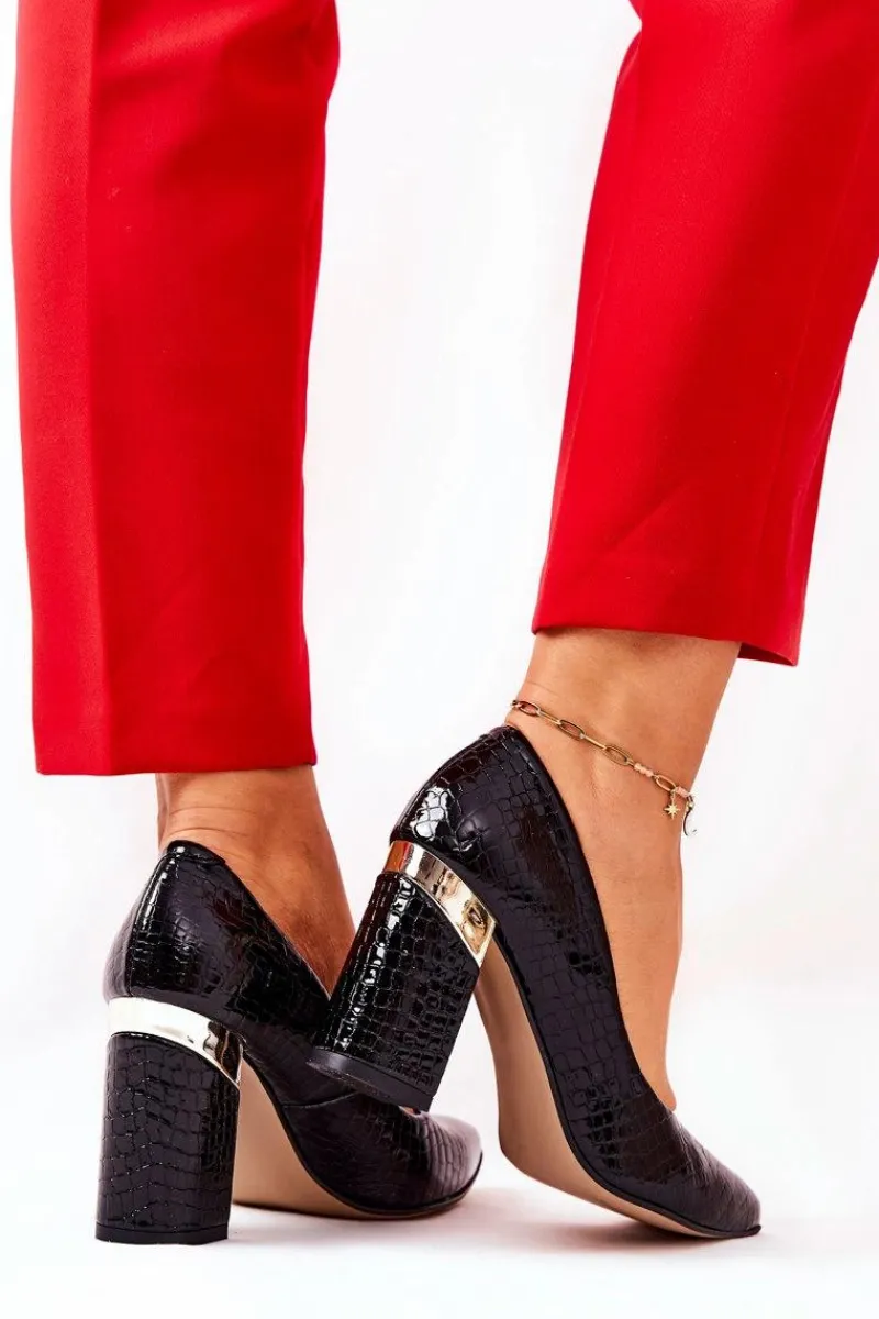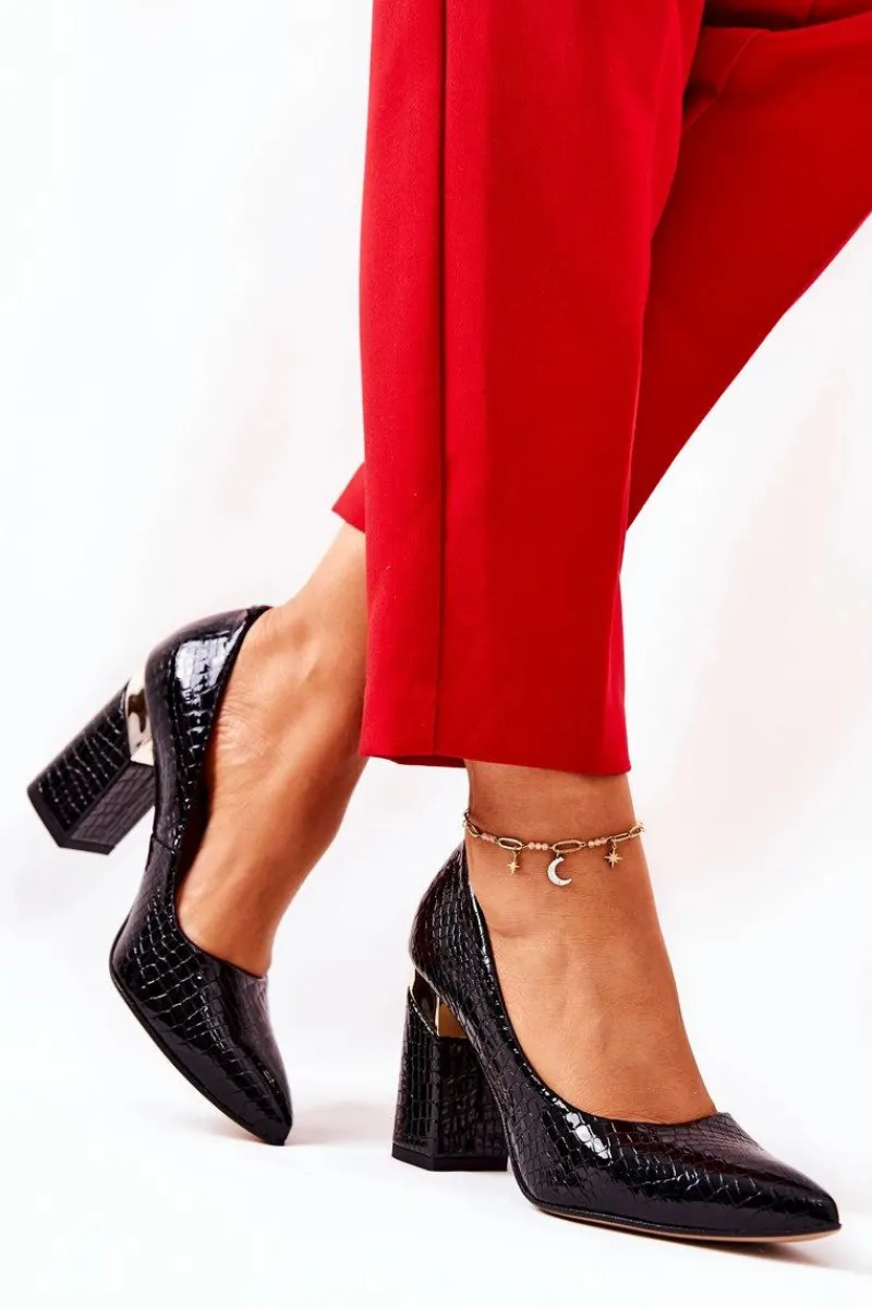 Czółenka Na Słupku>Boto Skórzane Czółenka Lewski Wężowe 3117 Czarne Czarny