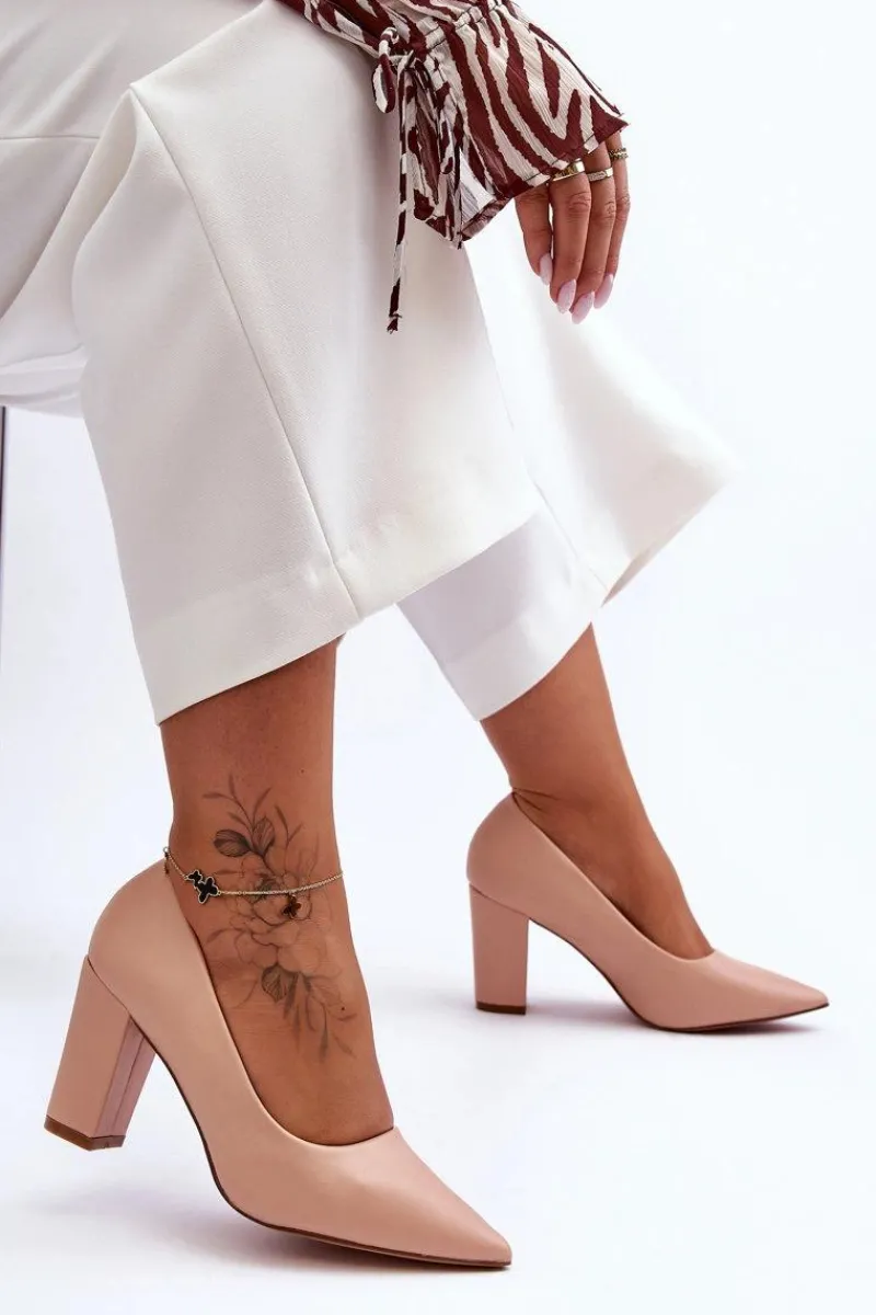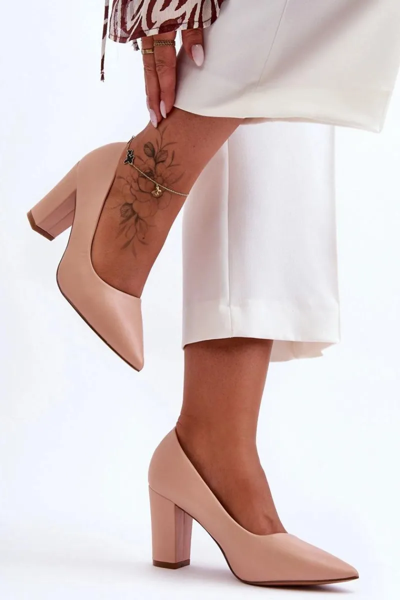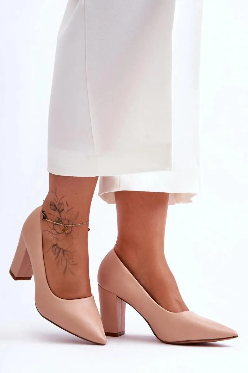 Klasyczne czółenka zostały osadzone na obcasie w postaci stabilnego słupka. Zostały wykonane z eko skóry. Miękka wkładka z delikatną perforacją zapewni komfortowe użytkowanie. Charakterystyczny nosek w szpic optycznie wysmukli nogi. Ten model jest idealny na wiele okazji! Przy wyborze rozmiaru prosimy sugerować się tabelą rozmiarów.