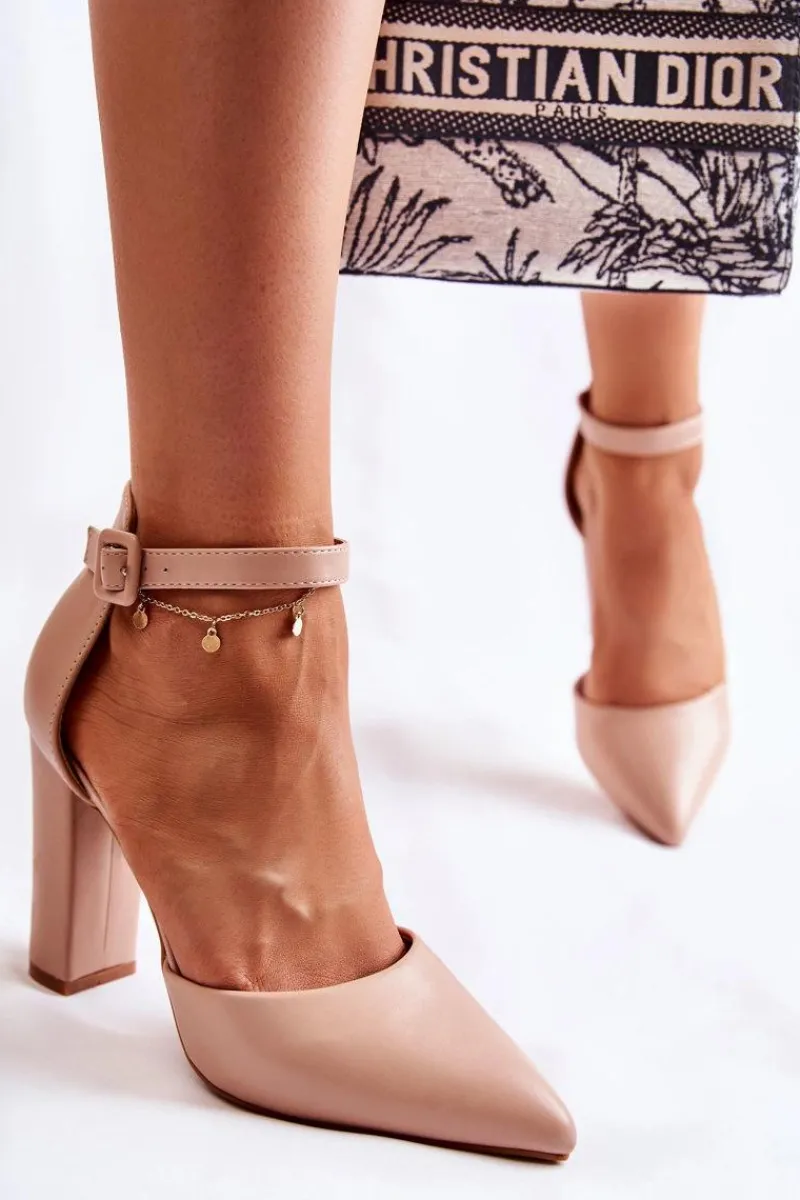Klasyczne czółenka osadzone na wysokim obcasie w postaci słupka. Zapinane na regulowany pasek ze sprzączką znajdującą się na wysokości kostki z dodatkową gumką. Model z noskiem w szpic. Buty te zostały wykonane z eko skóry. Model z usztywnianym zapiętkiem. Idealne do wieczorowych sukienek czy eleganckich kombinezonów. Świetnie sprawdzą się podczas wielu uroczystości. Przy wyborze rozmiaru prosimy sugerować się tabelą rozmiarów.